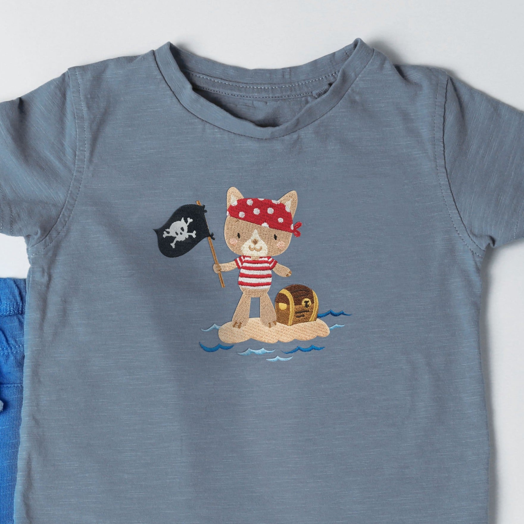In this collection, you'll find ten meticulously stitched designs, each brimming with character and charm. We understand the importance of versatility, so each design is available in two sizes - 4"x4" and 5"x7". This ensures that these lovable pirates can find their rightful place on your favorite buccaneer's shirt, jacket, or any other piece of clothing you fancy.