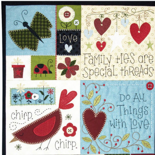 Adding an extra layer of whimsy and charm, select designs in this collection showcase faux button details created through the artful combination of appliqué and embroidery. However, don't let the whimsy stop there! Take your creativity to new heights by sewing real buttons over these design details, elevating the visual appeal of these quilt blocks and infusing them with a personalized touch.