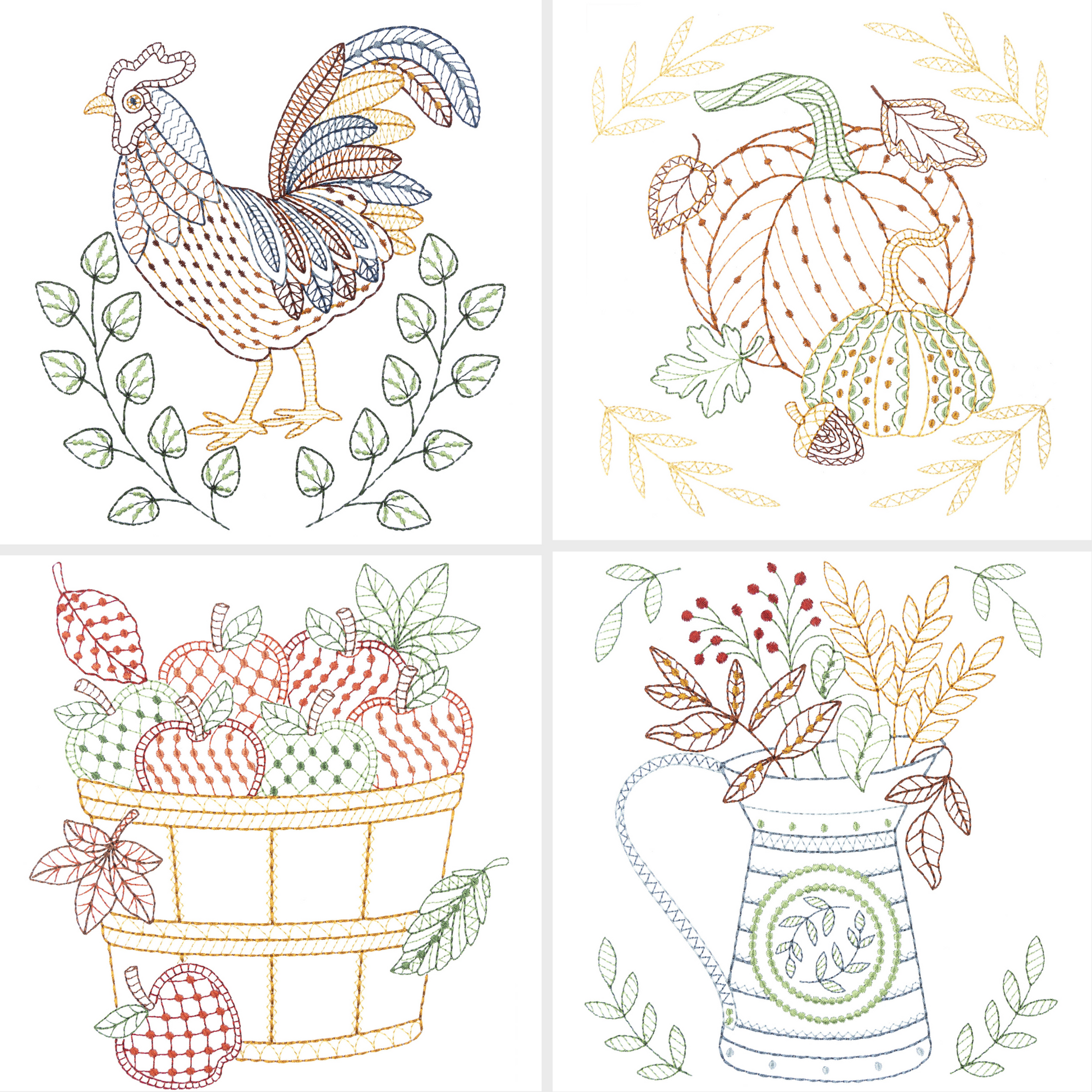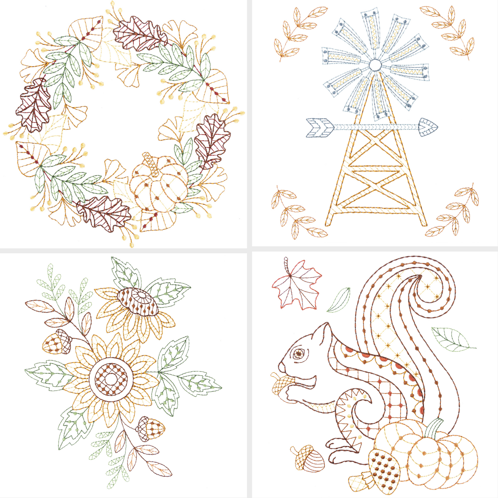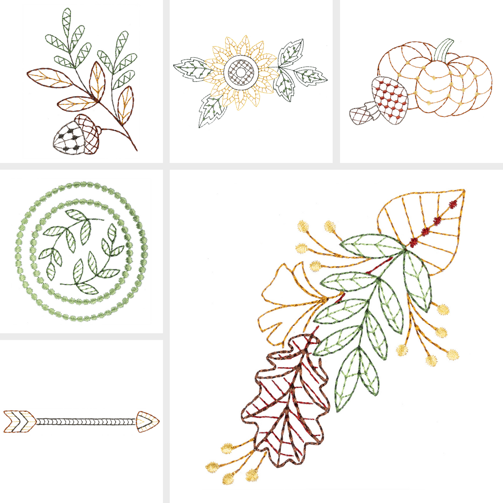 Each charming design adds fall flare to your home decór. Stitch your favorite design on a pillow cover, or on a denim jacket to prepare your wardrobe for the crisp fall air.