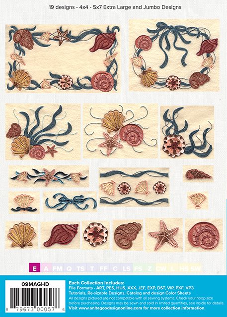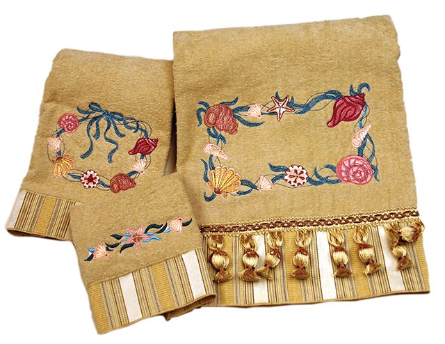 The shells collection will provide you with seashells with ribbons & bows, along with some gorgeous borders & corner pieces. These look fantastic on towels, place mats & are probably one of the most popular design collections to decorate a bathroom with when you're planning on doing an ocean theme.