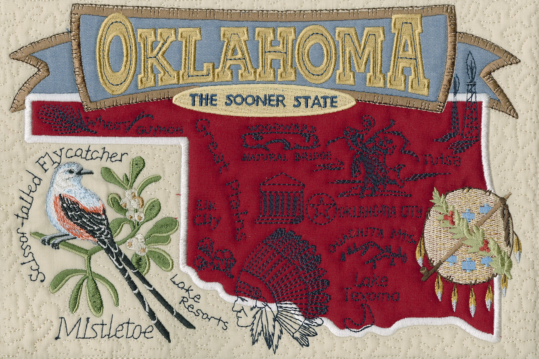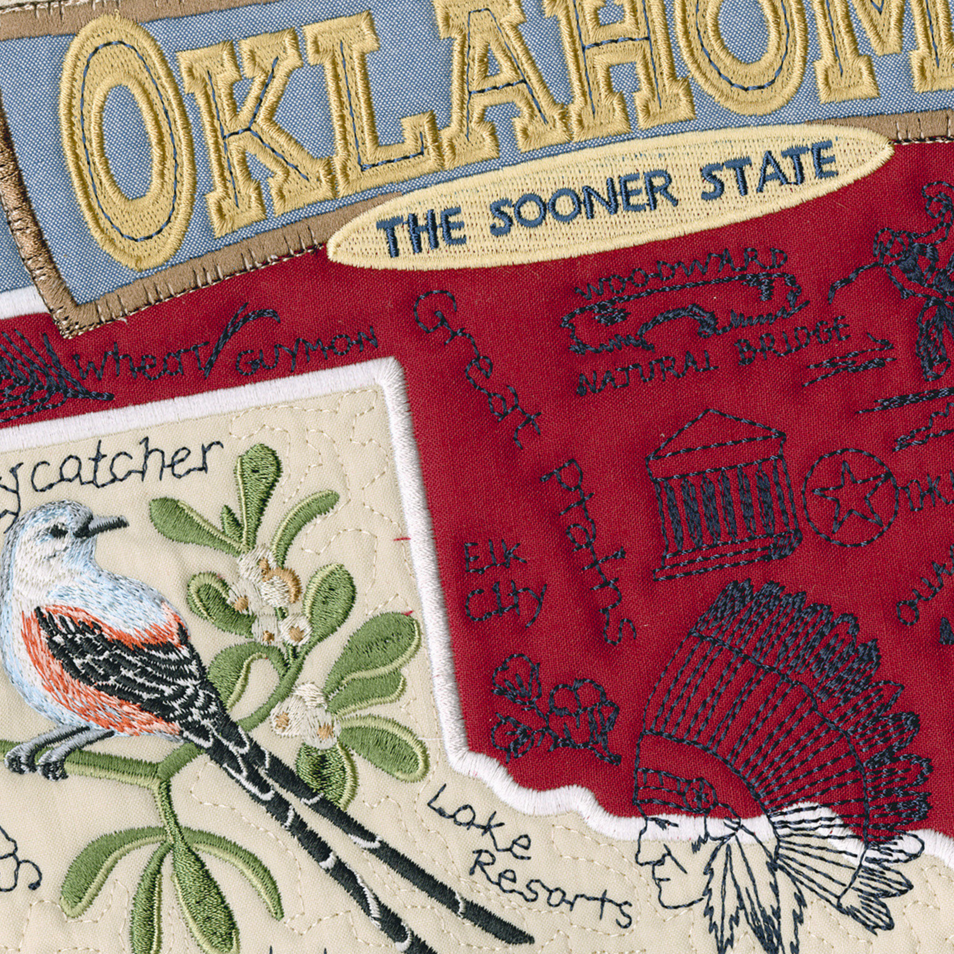 These designs were all hand drawn and contain beautiful appliqués and quilt designs combined with state cities and landmarks along with the state bird and flower. There are 10 designs in each collection that are divided between quilting and embroidery. The states can be combined together for big projects or can be used individually.