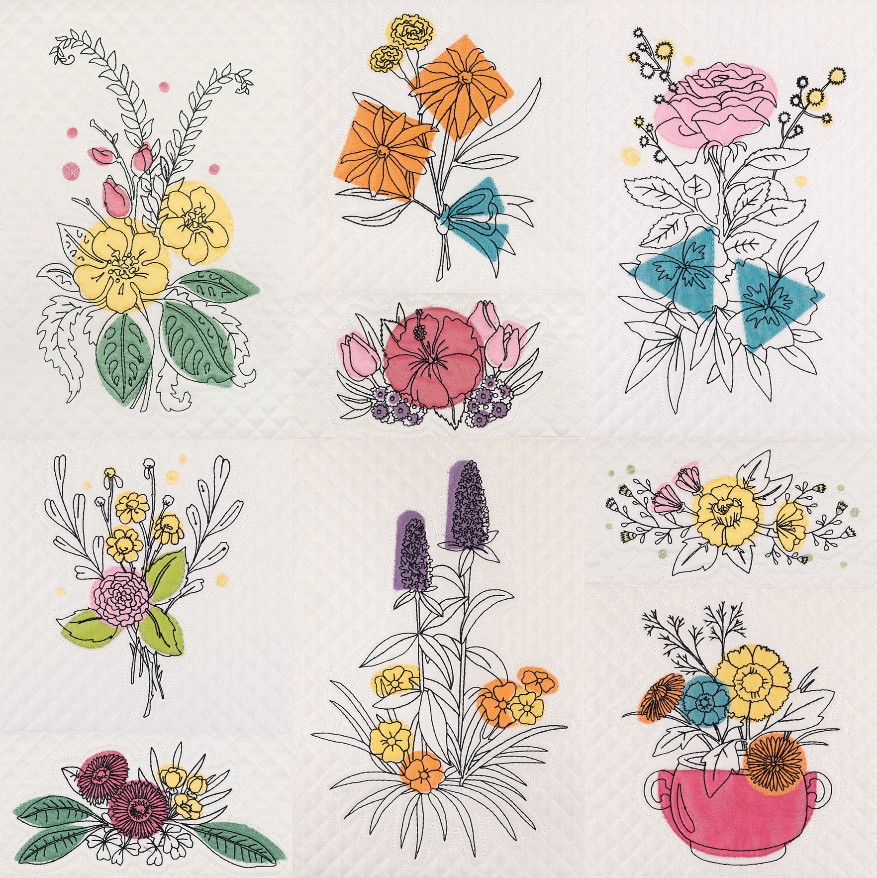 With both square and rectangular quilt blocks in 6 sizes each, you’ll be able to create this masterpiece in any configuration, or even mix it with another floral favorite.