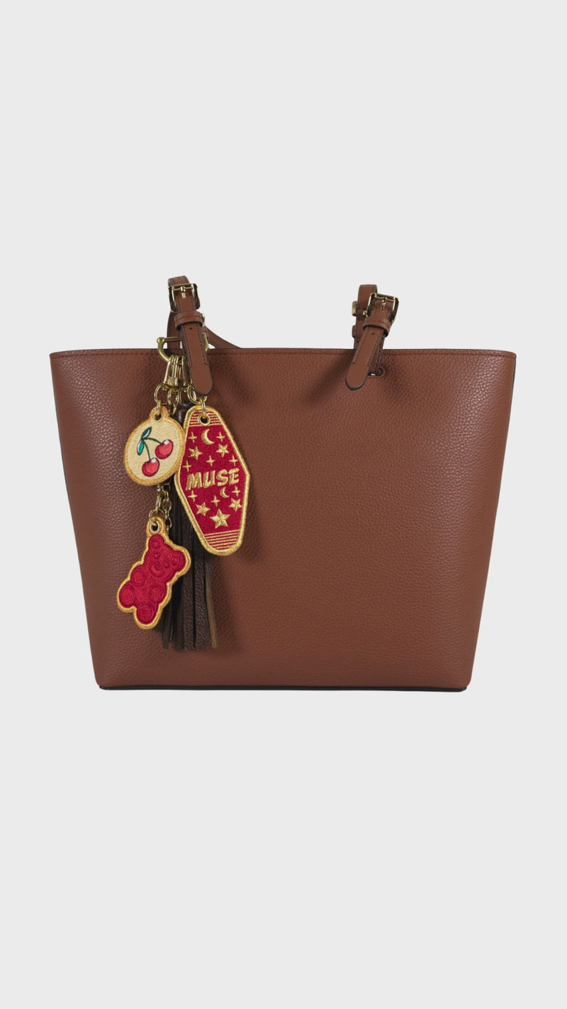 These bags feature the charms from the CHARMED collection. Add tassels and other charms to your embroidery designs to make them pop.