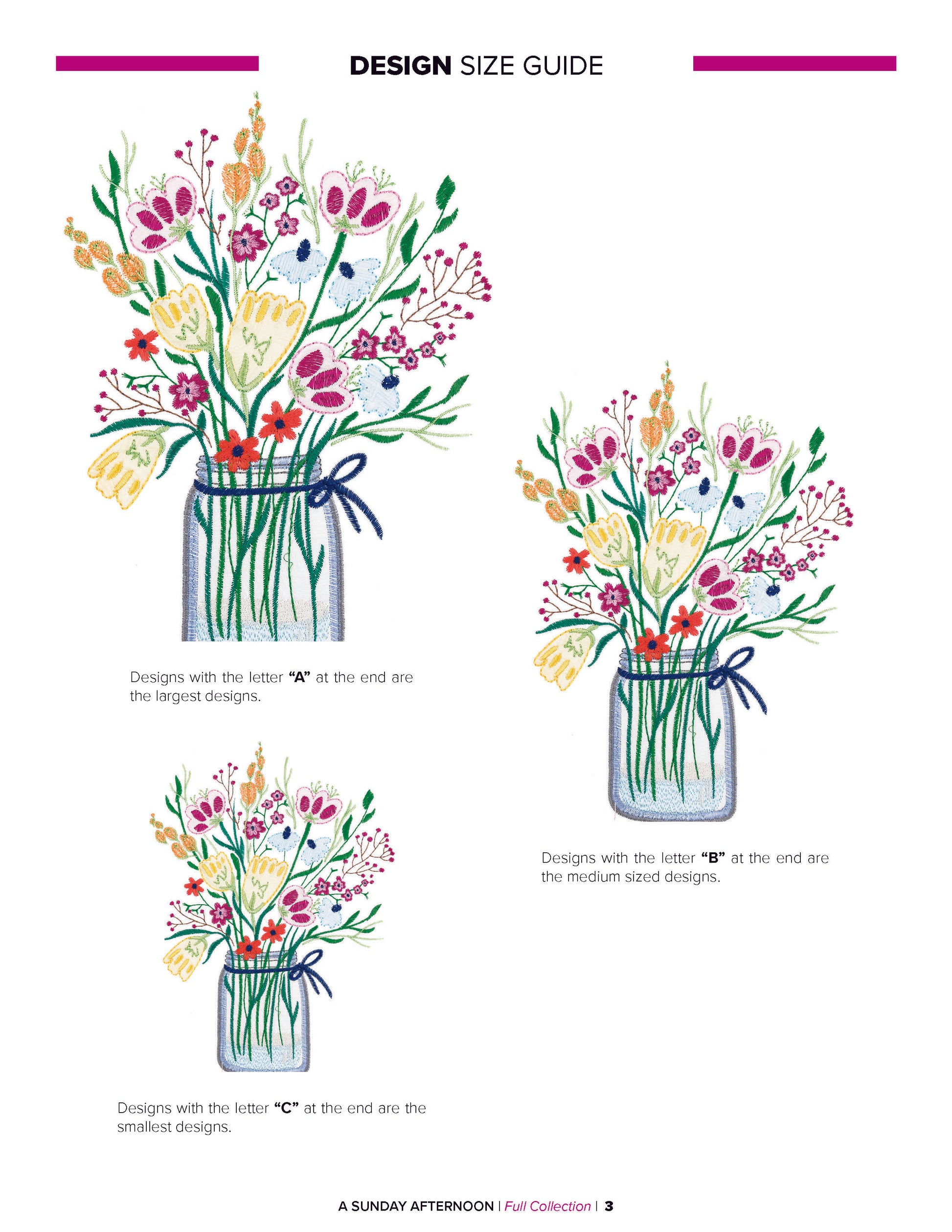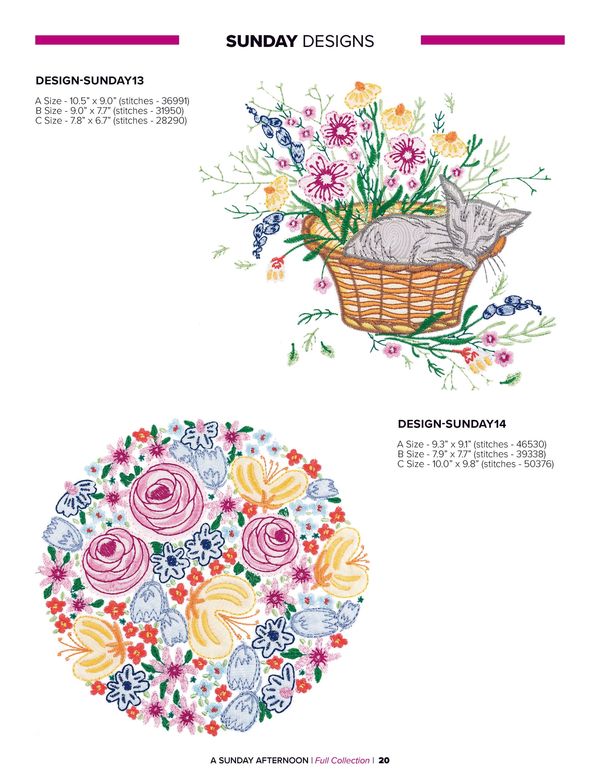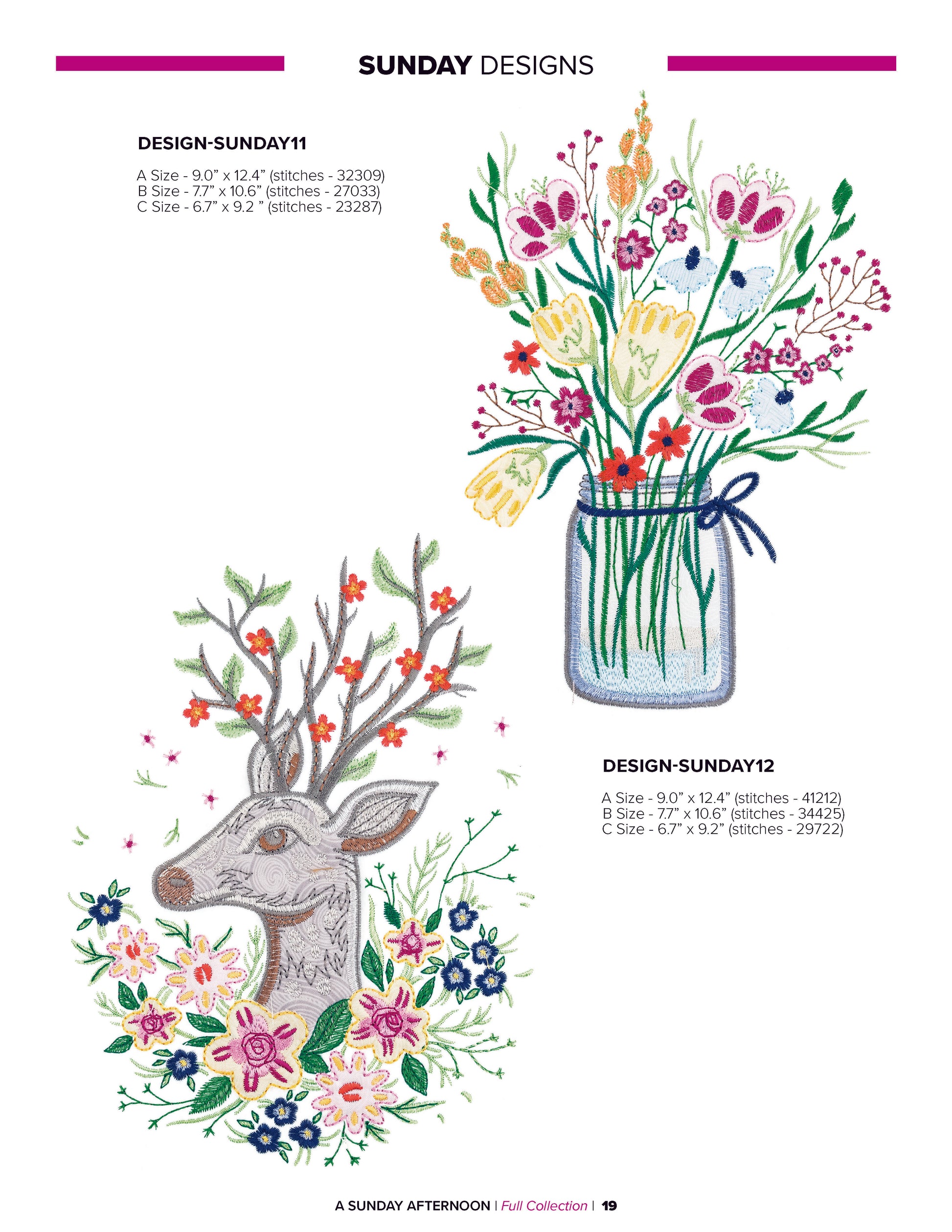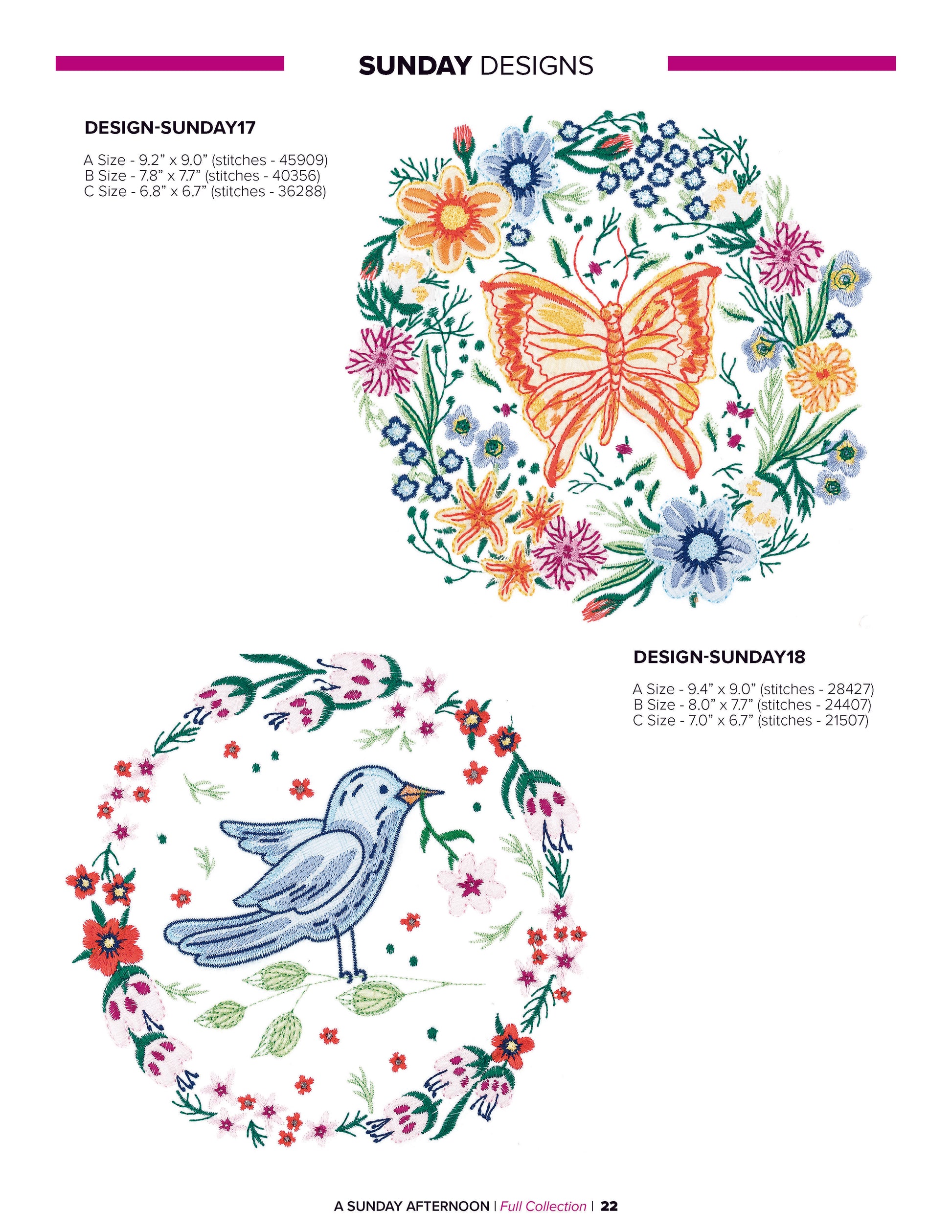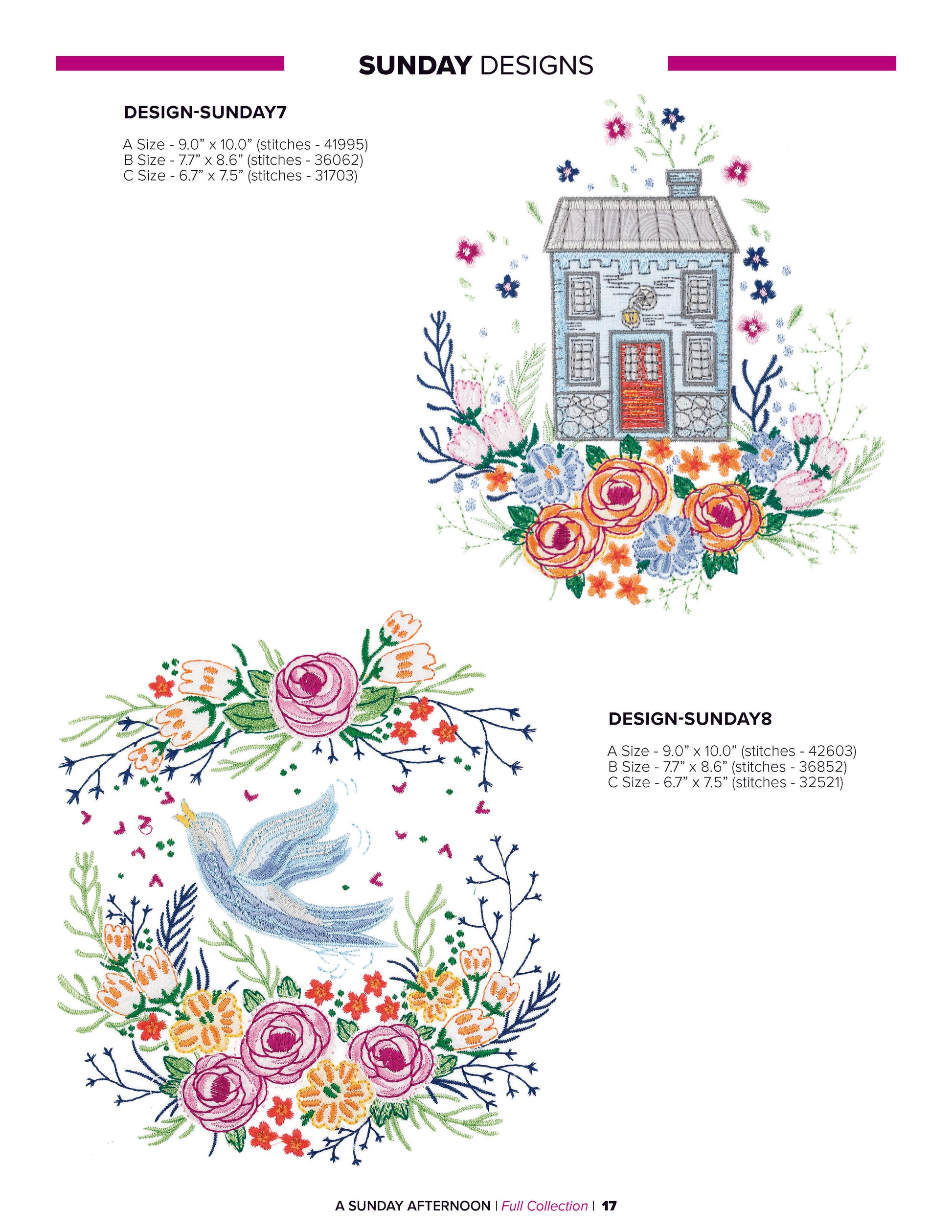 Whether you're an experienced embroiderer or just starting out, A Sunday Afternoon Collection offers a range of designs and techniques to suit your preferences and skill level. Let these designs transport you to a world of tranquility and serenity, where Sundays are reserved for enjoying the company of loved ones, savoring simple pleasures, and embracing the art of embroidery.