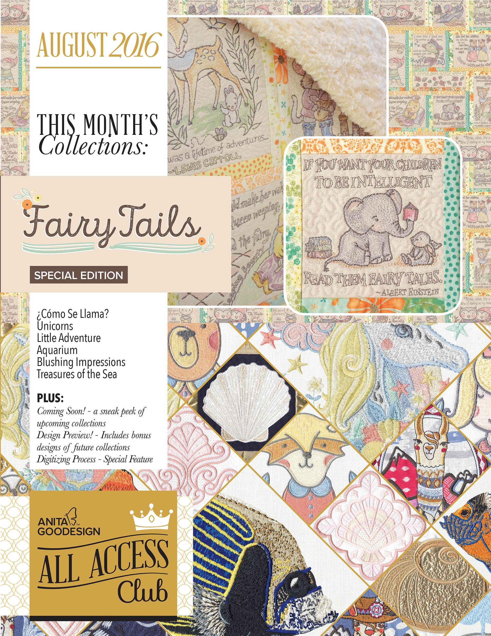 August is an exciting month for All Access! We are presenting a large variety of collections. From our Fairy Tails Special Edition, to vintage designs, and more - this month has it all! We are releasing both our Unicorns and Llama collections at the same time. These have been crowd favorites at our Embroidery Parties and we have received countless emails asking when they are coming out. They are all here this month! We also have a new heirloom collection titled Blushing Impressions. The unique part about our August releases is that they are all easy to stitch! The most complicated techniques are appliqué and folded fabric.