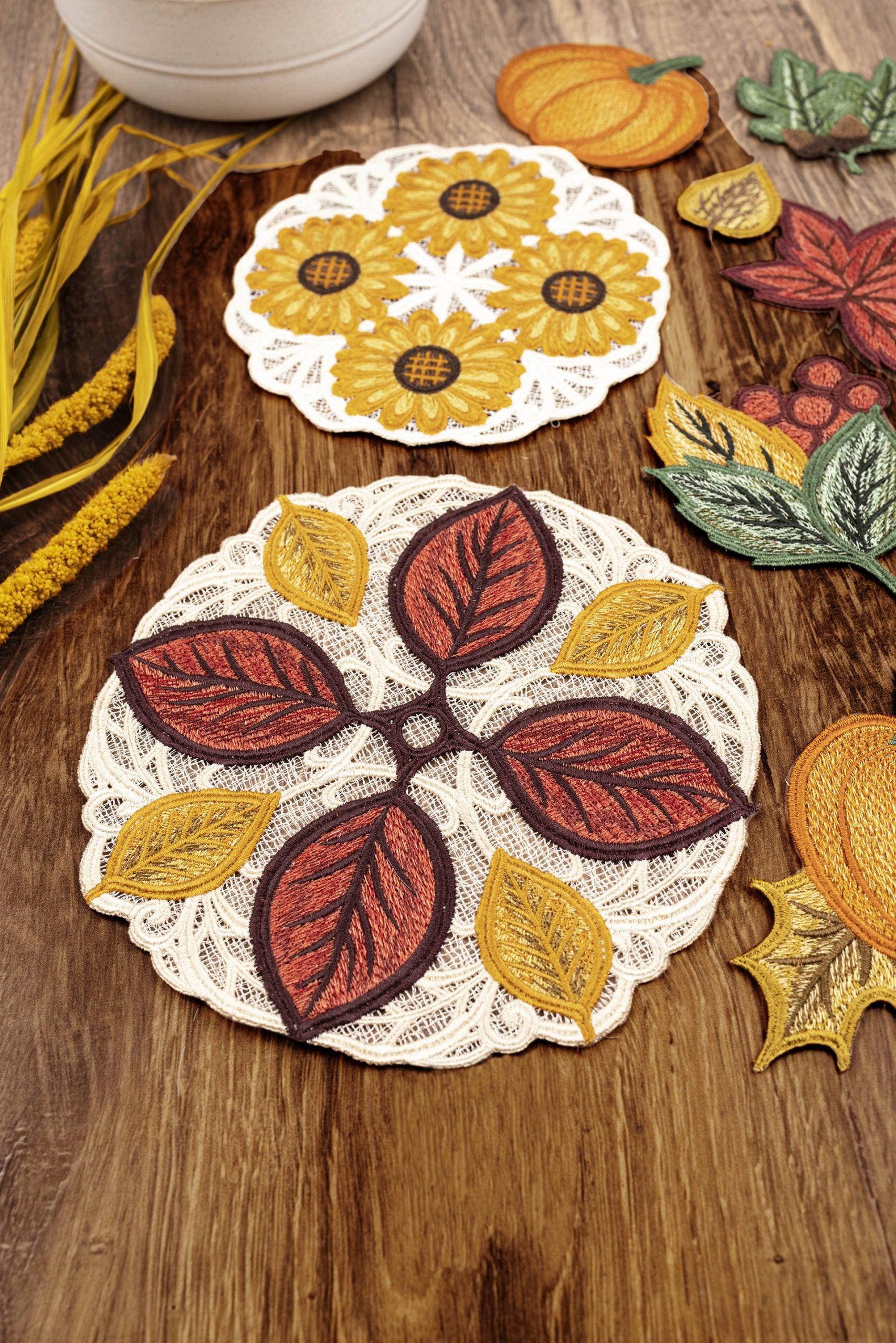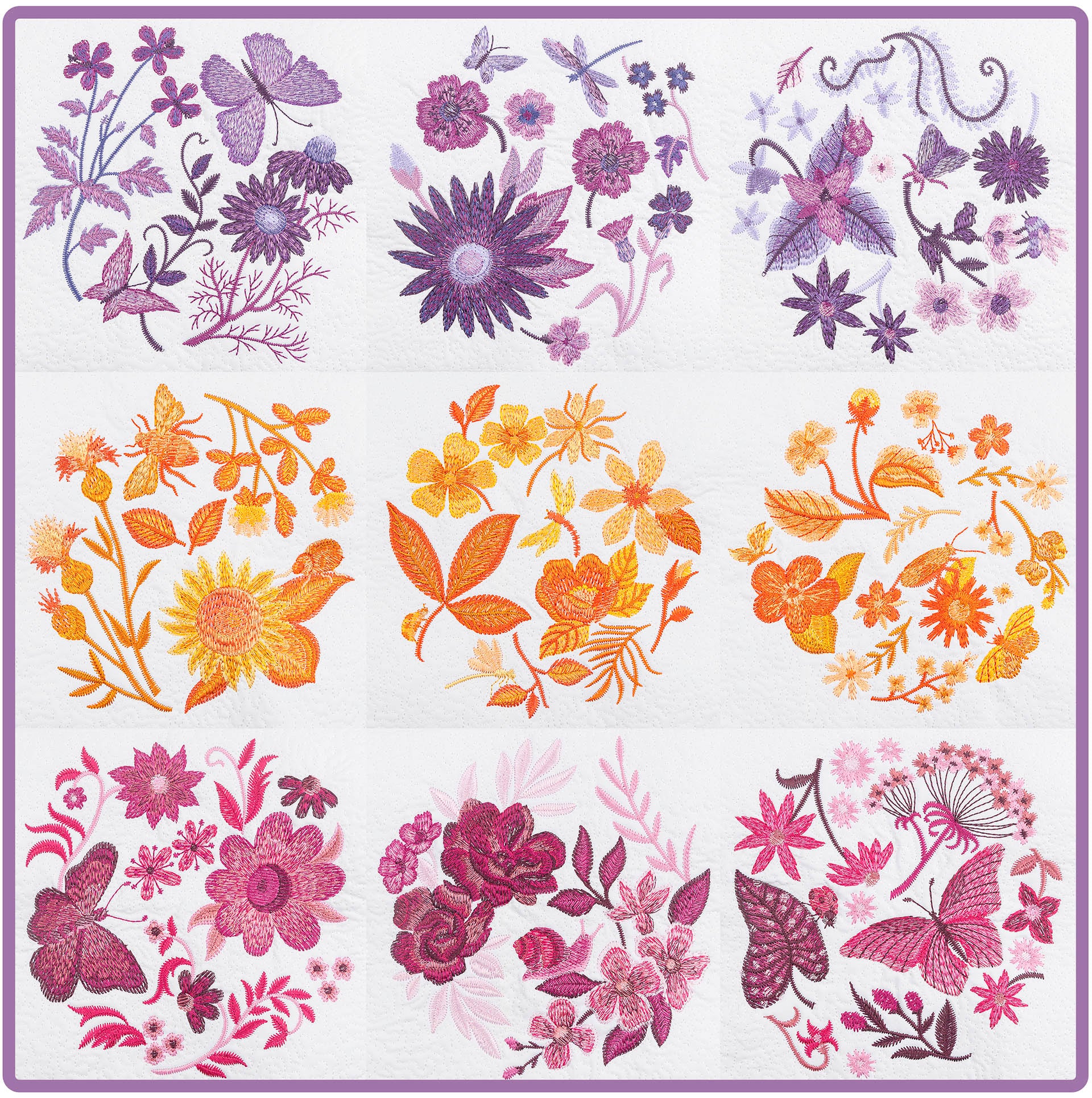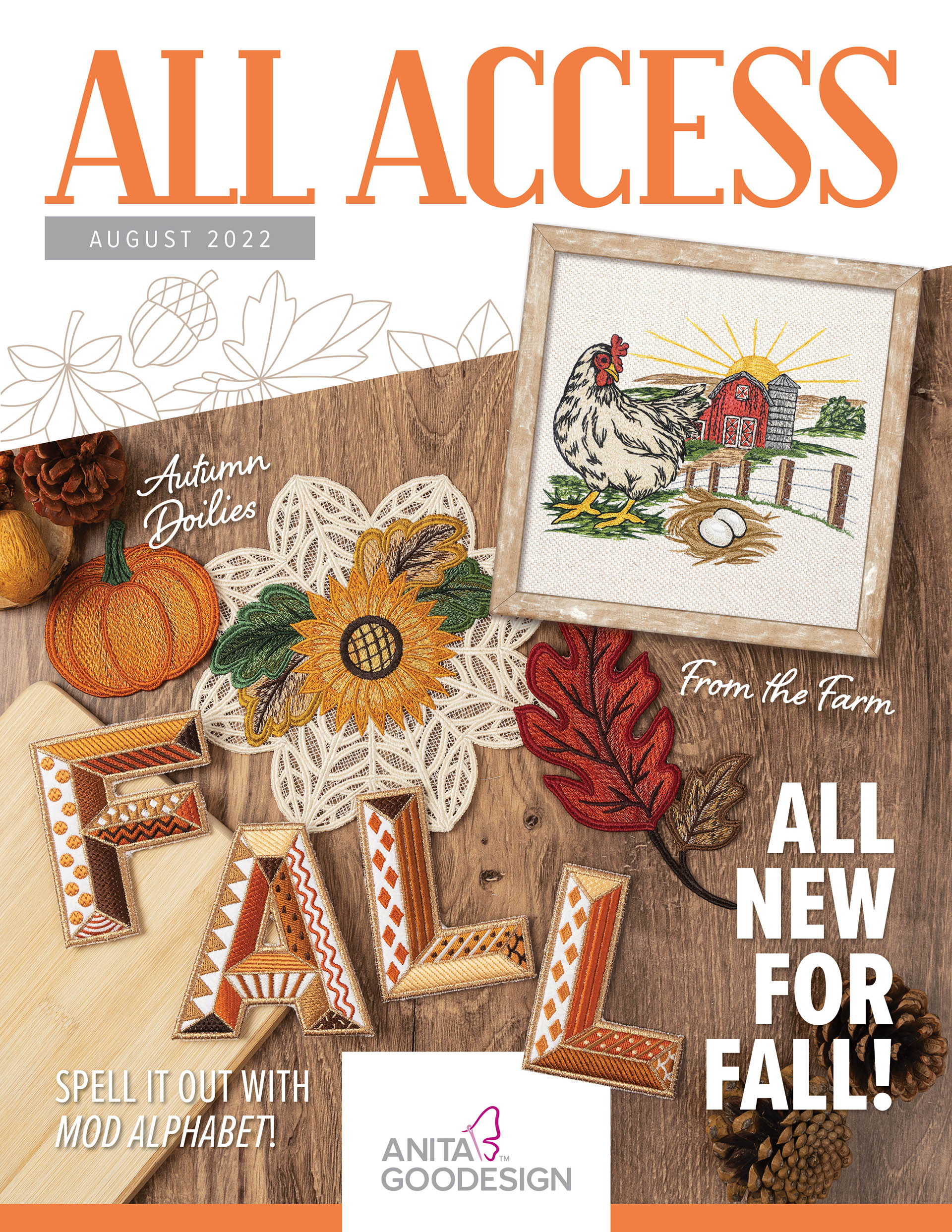 The sky is the limit for what you can do with this month’s All Access! From interactive letters to lovely lace to beautiful botanical-themed quilt blocks; this month is jam-packed with a variety of techniques, tips, tricks, and treasures. We’ve even included some special projects and files that you’ll find only in this issue! A, B, and C’s are made as easy as 1, 2, and 3 with this Mod Alphabet collection! Stitched in bold, bright colors, you’ll be bringing your A game with each letter.