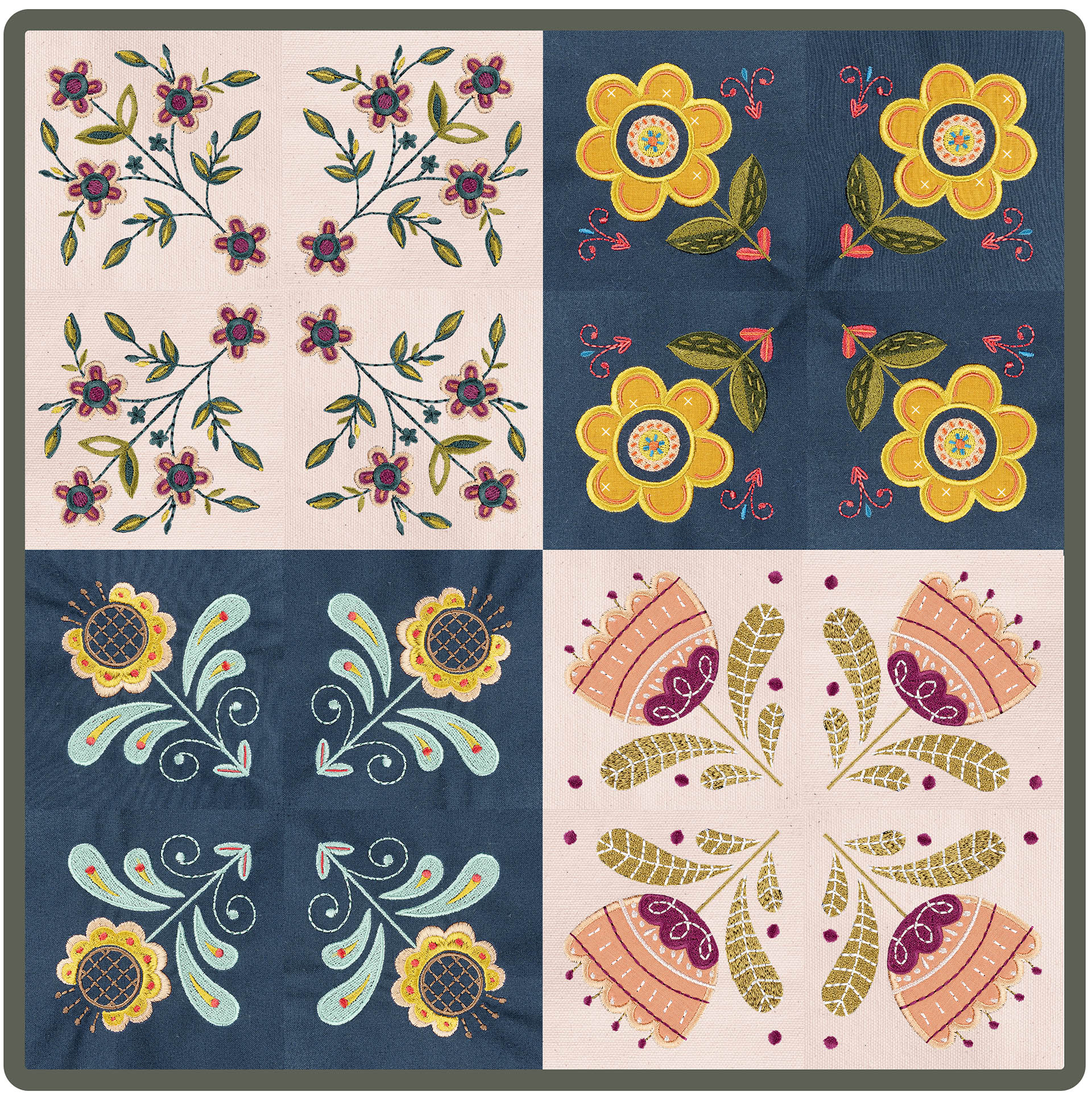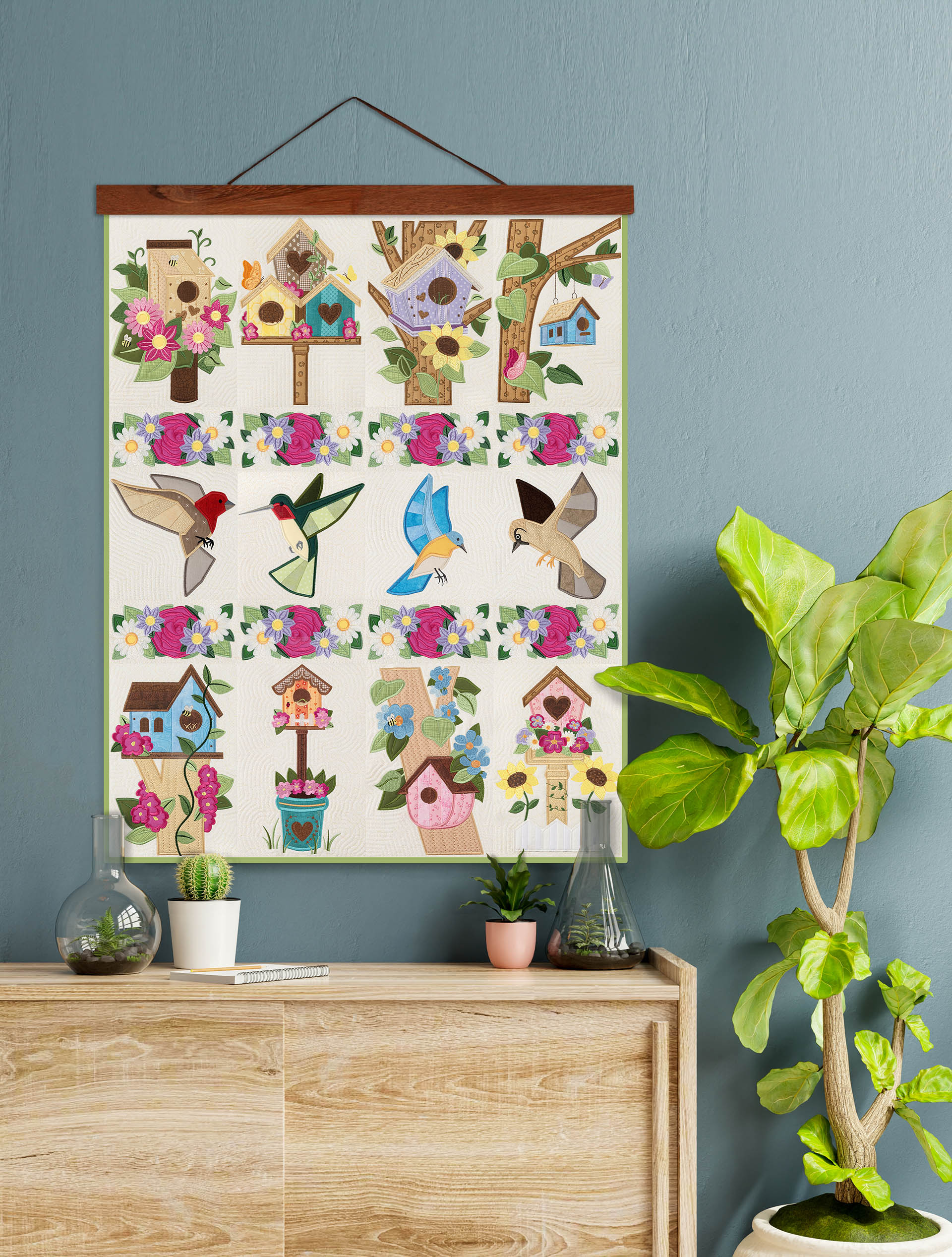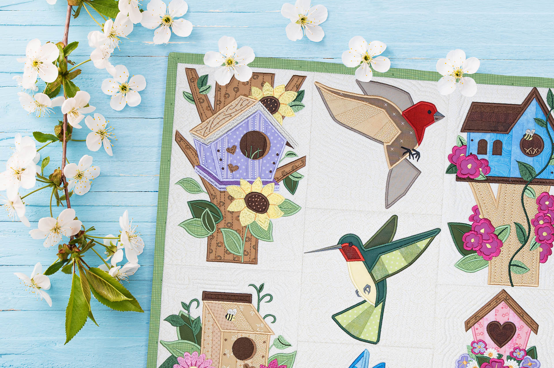 Fans of quilting will go crazy over not one, but two paper piecing quilting collections this month! The square, corner-oriented designs in Paper Piecing Florals give you the ability to create a variety of whimsical, floral quilt layouts with designs that mimic traditional paper piecing. Standard applique and folded fabrics will help recreate this classic quilting technique right in your home machine! A rainbow of batik cotton fabrics and coordinating threads make these quilt blocks colorful and modern. Plus, there’s more floral fun and nature motifs in the Paper Piecing Aviary collection. The eye-catching birdhouses and feathered friends created using our paper piecing technique are anything but garden variety! Echo stitching against subtle patterned fabric will help this beautiful collection spread its wings!
