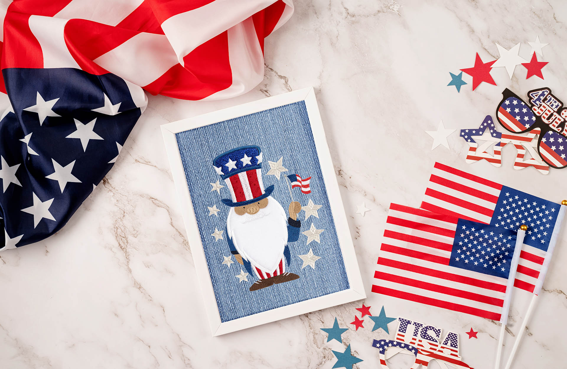 The Fourth of July is just around the corner, which means it’s time to celebrate by making some patriotic crafts! There is no better way to decorate your home for the summer than by using this month’s adorable Patriotic Gnomes collection. Welcome your guests with these patriotic mischief-makers by embroidering a few of them onto porch pillows, a garden flag, or even recreating our Patriotic Gnome Wreath, featured in this month’s D.I.Y. with Anita! There are sew many designs to choose from, including a gnome soaring through the sky on a bald eagle, Lady Liberty, and more!