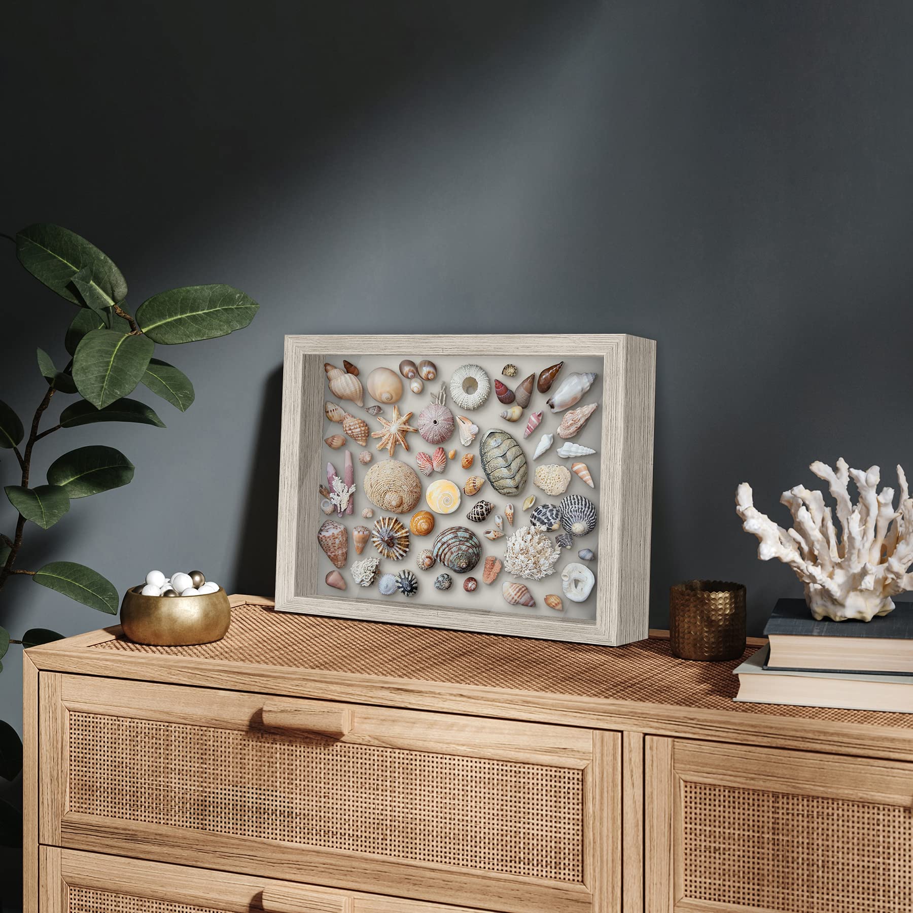 - Elevate your memories with a display that’s anything but ordinary. Featuring a driftwood-inspired woodgrain finish and soft felt back, this shadowbox frame adds elegance while showcasing your photos, awards, and keepsakes.