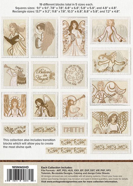 What makes the Angels collection even more remarkable is its compatibility with other Anita Goodesign collections. As part of the "Mix and Match" quilt line, this collection provides blocks in sizes ranging from 5" to 9", allowing you to easily combine and interchange designs from various collections. Whether you prefer the elegance of redwork, the texture of folded fabric, or the versatility of special editions and jelly roll collections, the possibilities for creating your unique quilt are endless.