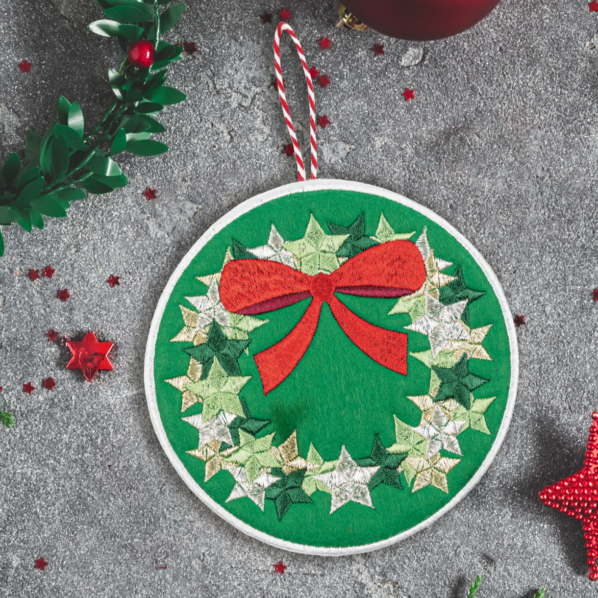 This Christmas -themed collection consists of 3 scrumptious little ornaments to hang on your Christmas tree this year. All of which are finished off right in the hoop of your embroidery machine! Each adorable ornament is created with two hoopings, which means two design files for each ornament. For example, to create the stocking ornament, you will need to stitch out the back file (E-ORNAMENT1a), and then the front file (E-ORNAMENT1b), which ends with a thick satin stitch outline that binds the two sides together. Stitch any, or all of these ornaments out in festive colors like we did, or do your own thing! Start gathering your cute ribbons too, because these ornaments are meant to have a ribbon attached right in the hoop, as well. If you enjoy stitching out designs in this collection, be sure to check out our other previously-released ornament collections.