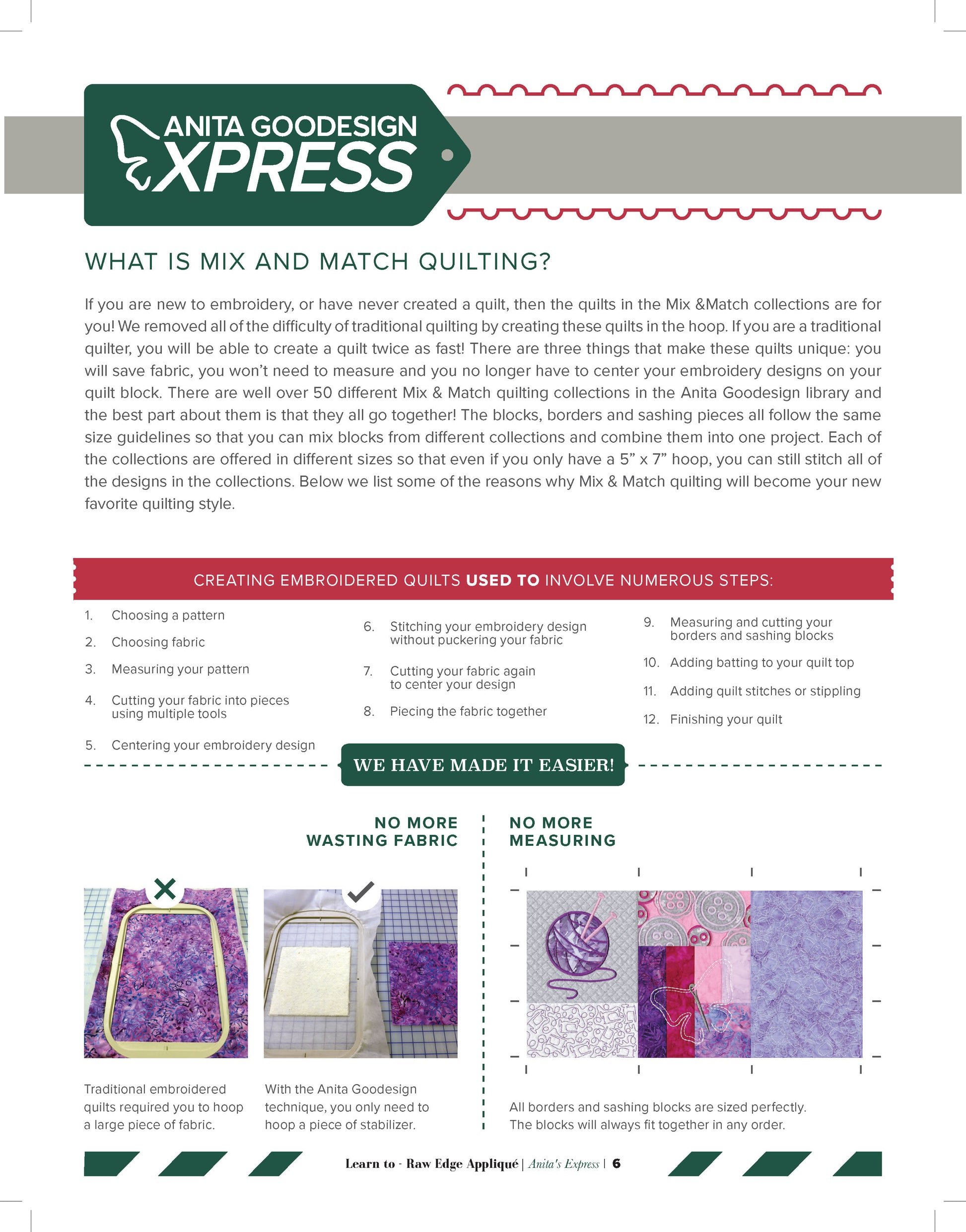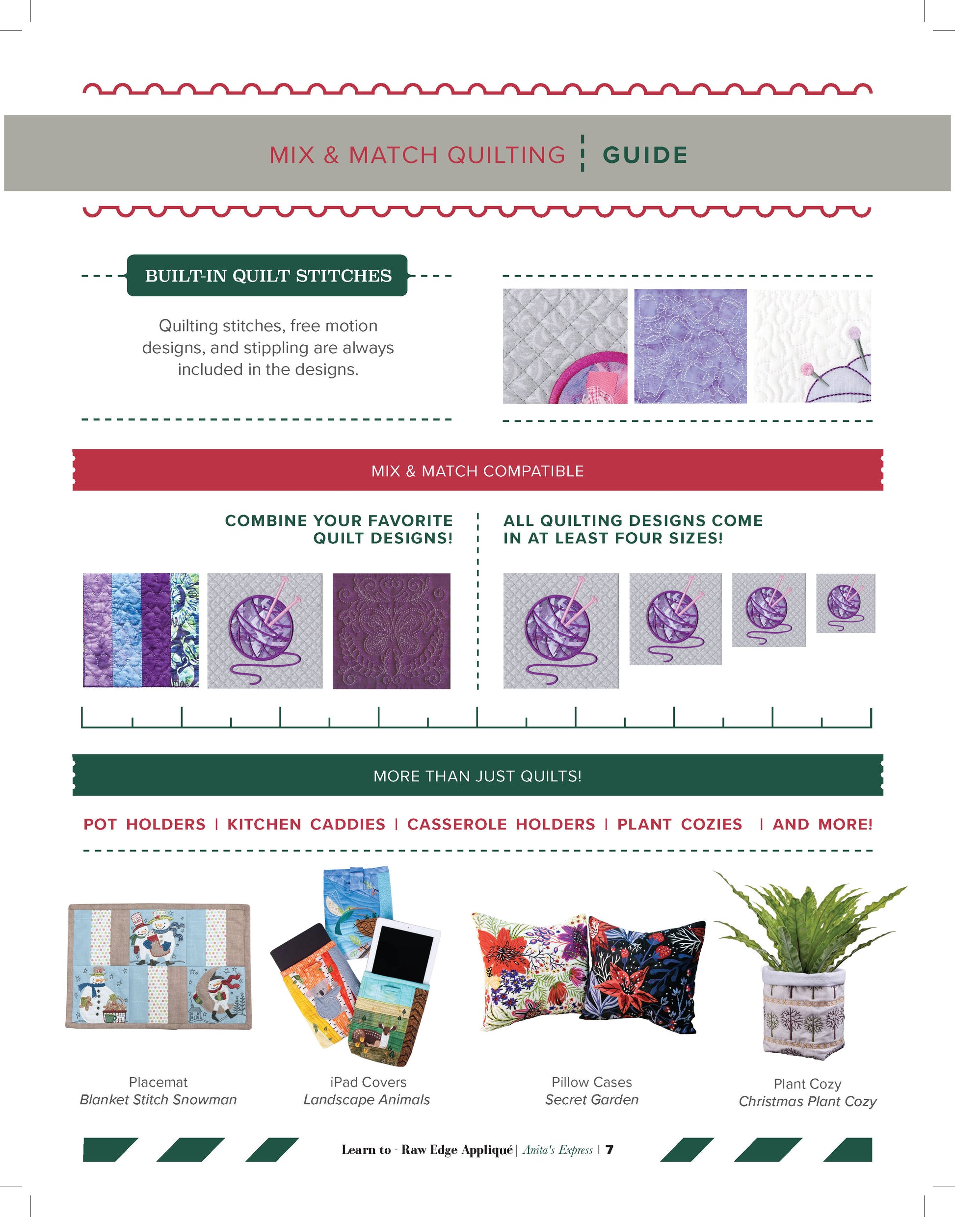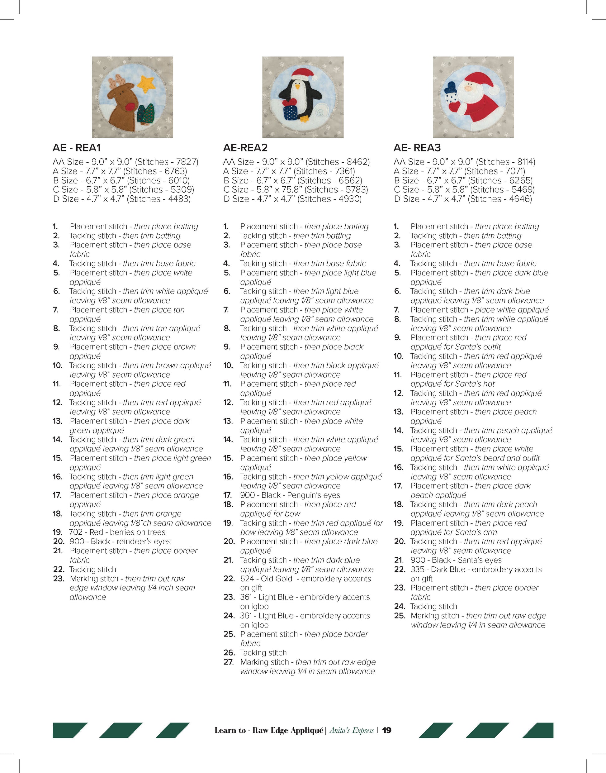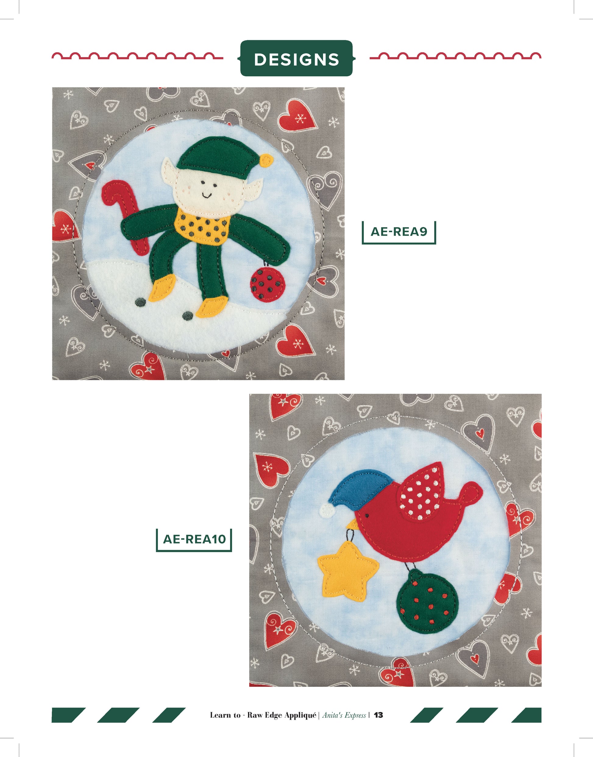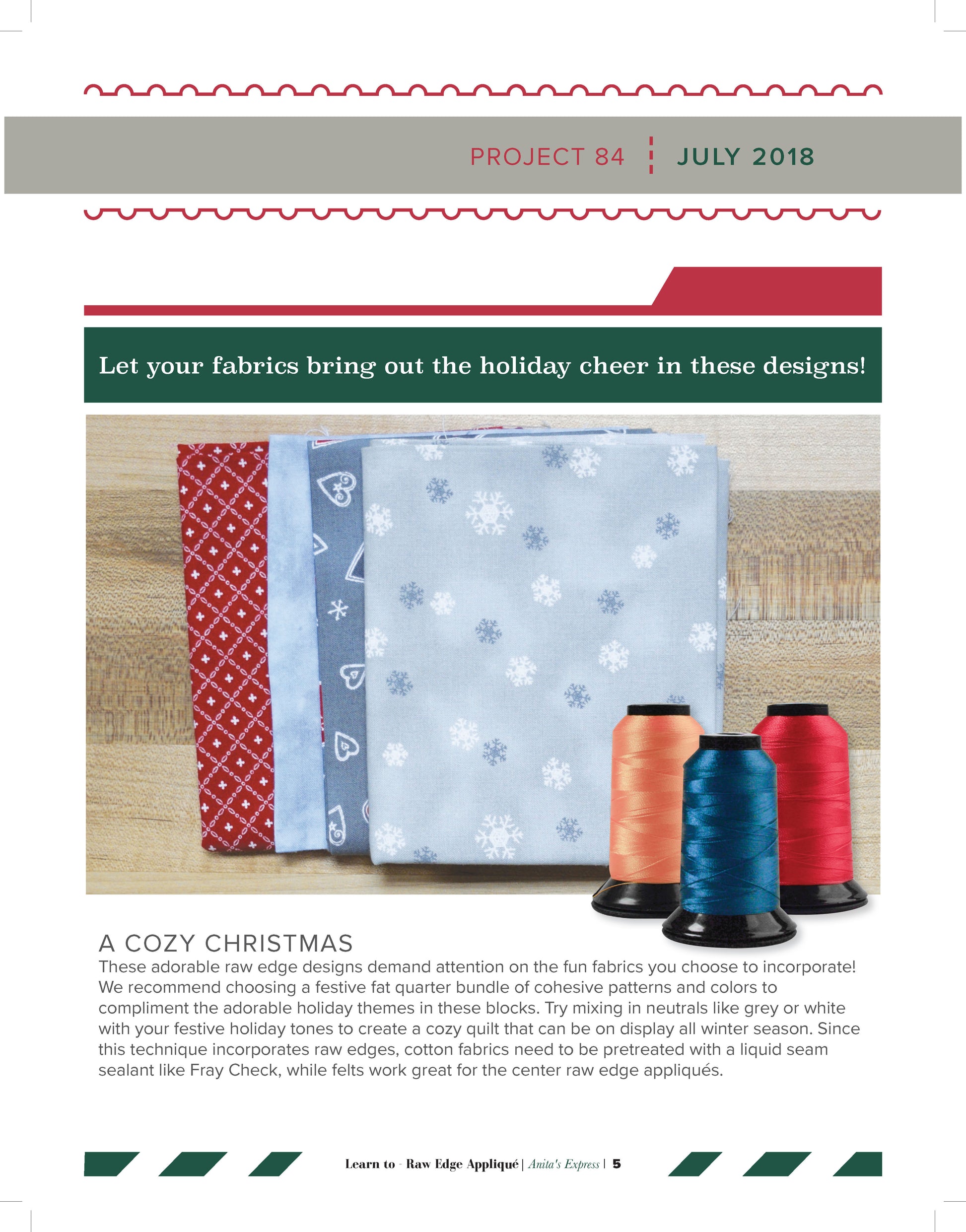 Raw edge appliqué is a technique that is similar to traditional appliqué. Both are created with a placement stitch and tacking stitch. The difference lies in the finishing stitch, which gives the design a slightly unfinished look. This fun project includes holiday themed quilt blocks that come in 5 different sizes. The project is completed all in the hoop using our easy quilting technique!