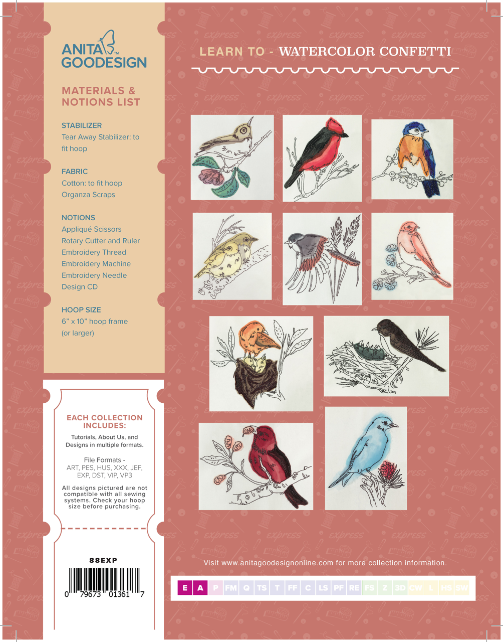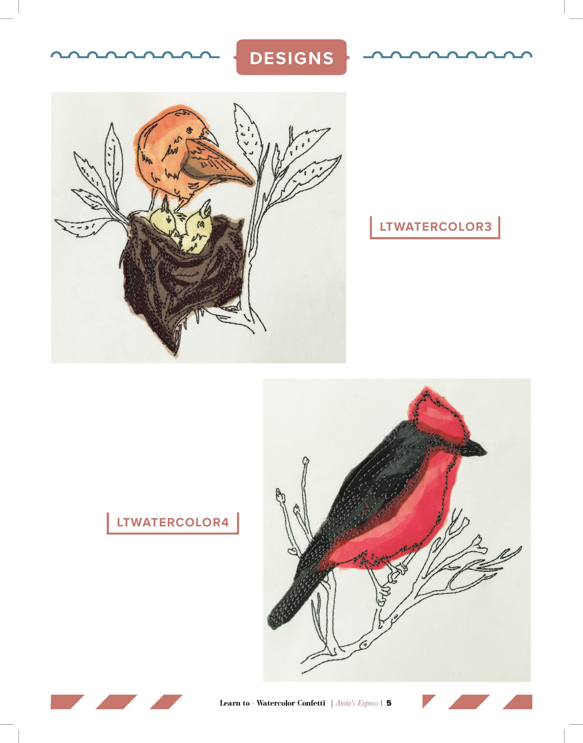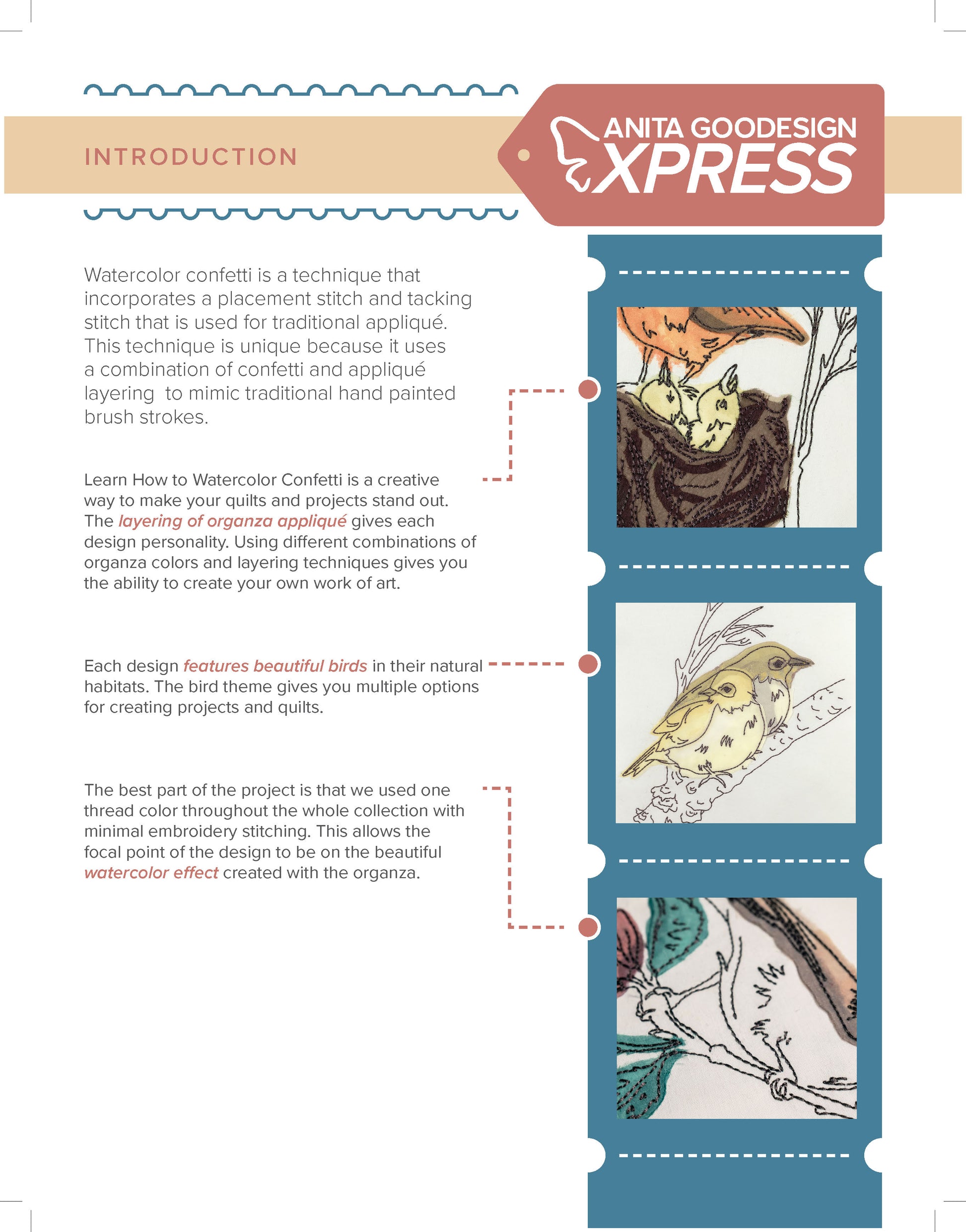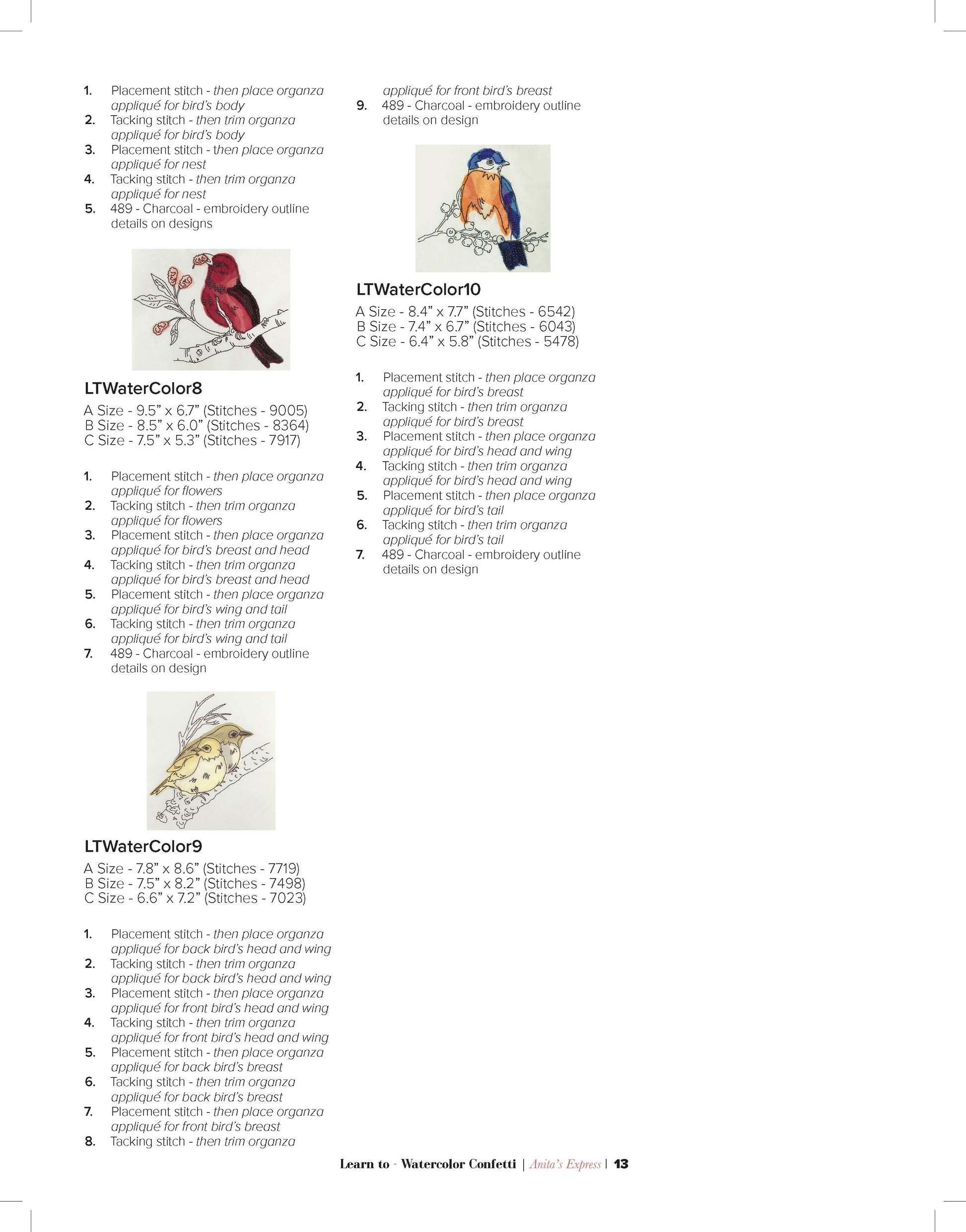 Whether you choose to incorporate these stunning bird designs into quilts, wall hangings, or other creative projects, the Learn to Watercolor Confetti collection will bring a touch of artistic elegance to your work. The combination of the watercolor effect and the delicate organza layering will make your creations truly stand out.