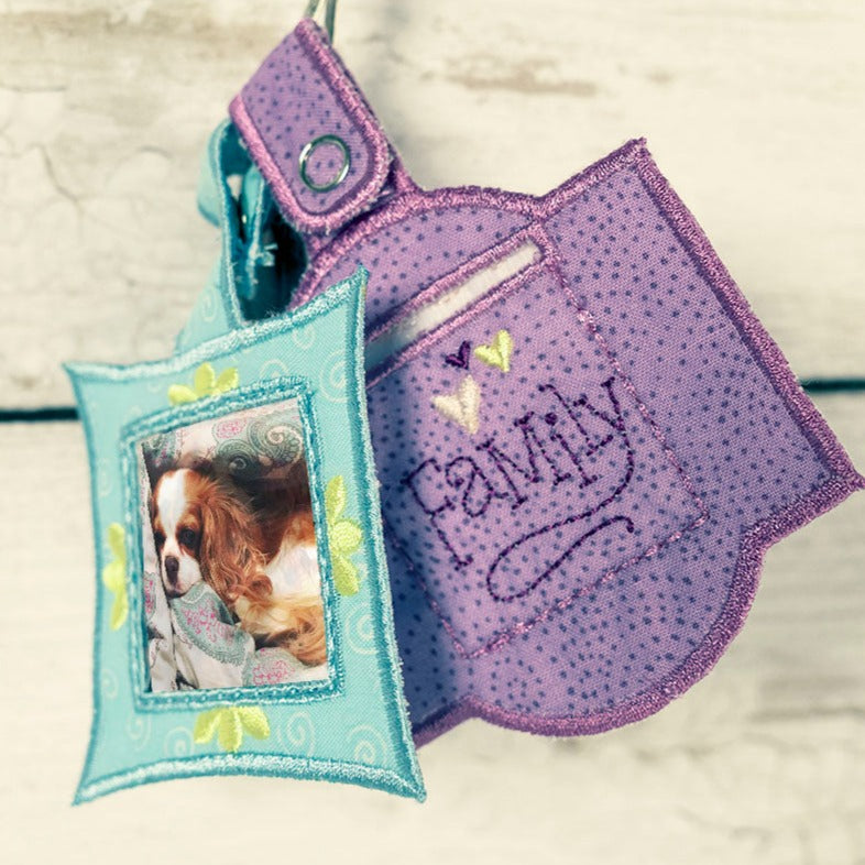 These adorable photo frames are just the thing to hold that treasured school portrait or family photo from the holidays . Created in the hoop, this unique and fun way to tote around your favorite photo proves to be much easier than you'd think! With 8 charming design sets to create, you can find the perfect photo frame to hold your favorite memory, or to gift it to family or friends.