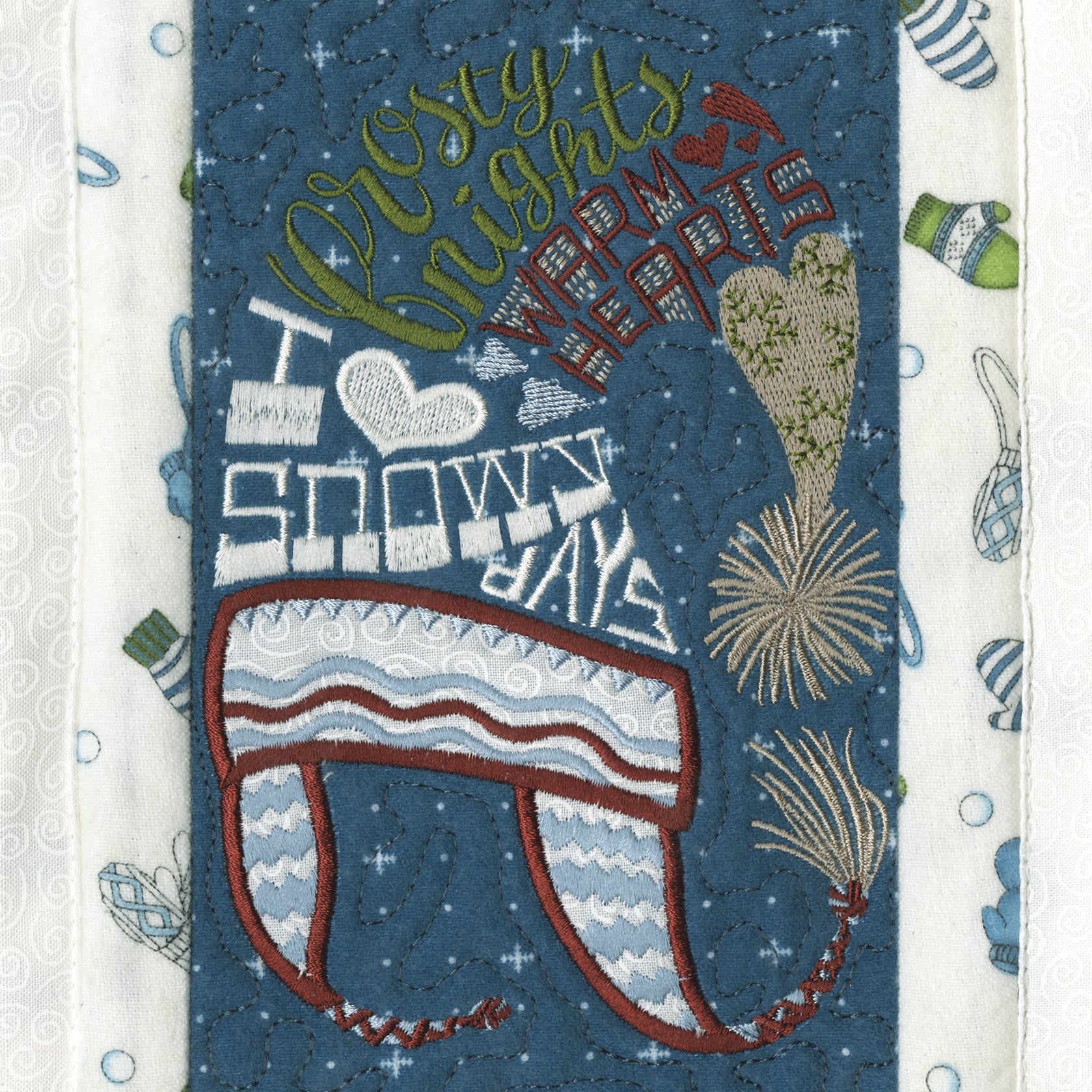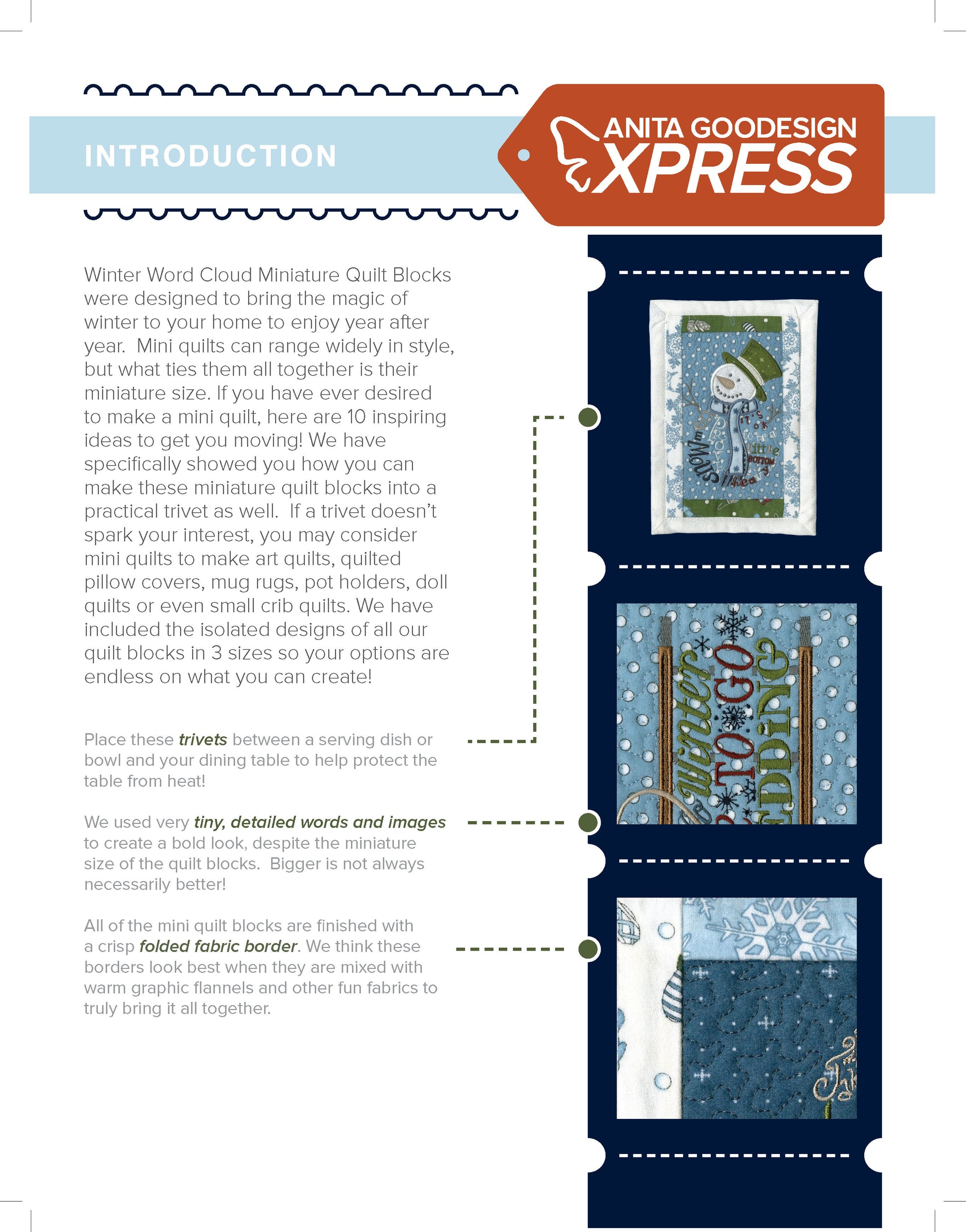 Perhaps a trivet isn't quite what you're looking for. Consider using these miniature quilt blocks to craft stunning art quilts that can be proudly displayed on your walls. The intricate details and winter-themed word cloud will bring a touch of seasonal elegance to any room. Additionally, you can explore the world of quilted pillow covers, mug rugs, pot holders, doll quilts, or even small crib quilts. The choice is yours, and the options are endless!