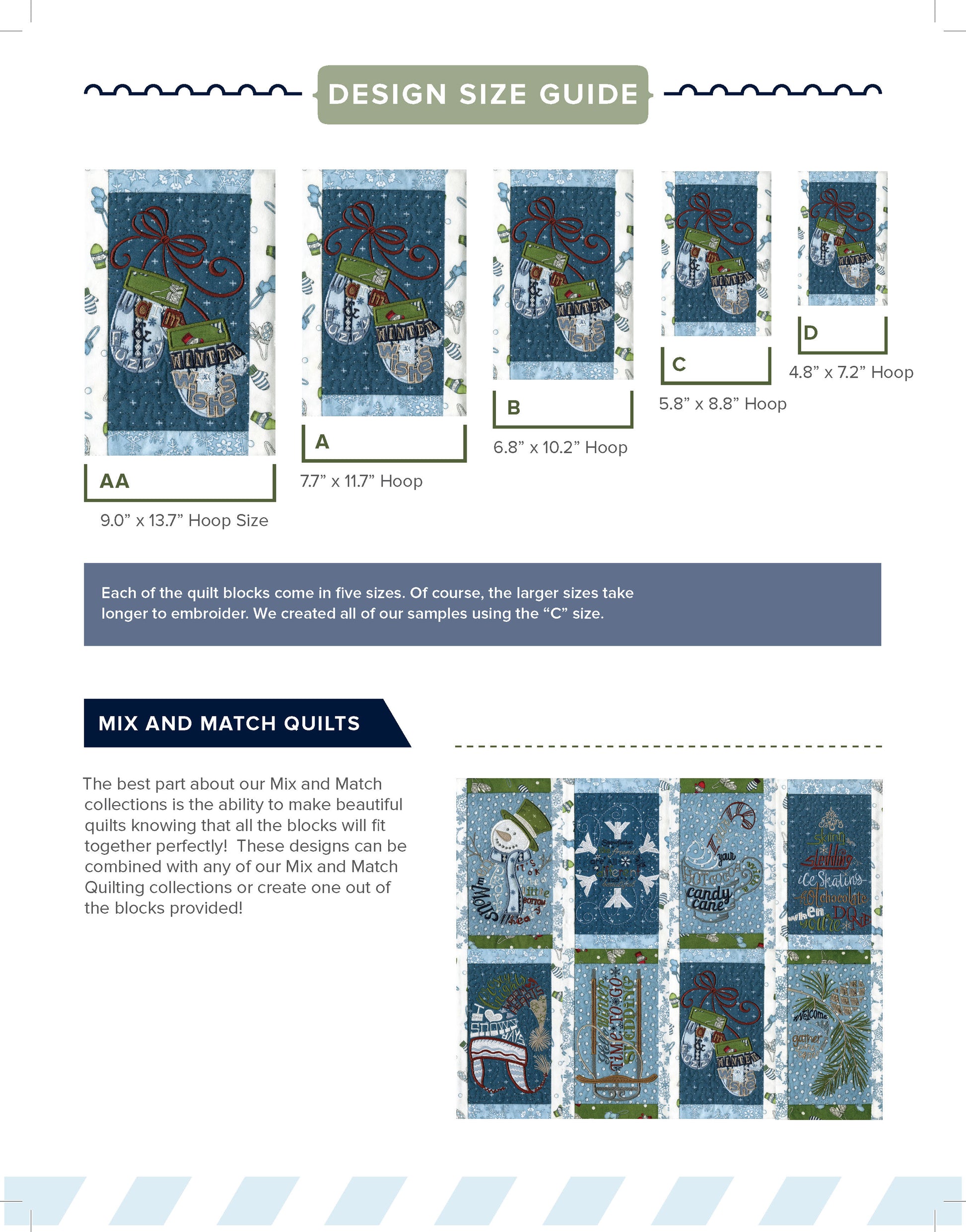 One of the remarkable features of our Winter Word Clouds Quilt Blocks is their versatility. While they are ideal for constructing mini quilts, they can also be repurposed to suit a variety of projects. Imagine transforming these exquisite blocks into functional trivets, providing both beauty and practicality to your kitchen. The isolated designs of all our quilt blocks come in three sizes, opening up a world of possibilities for your creativity.