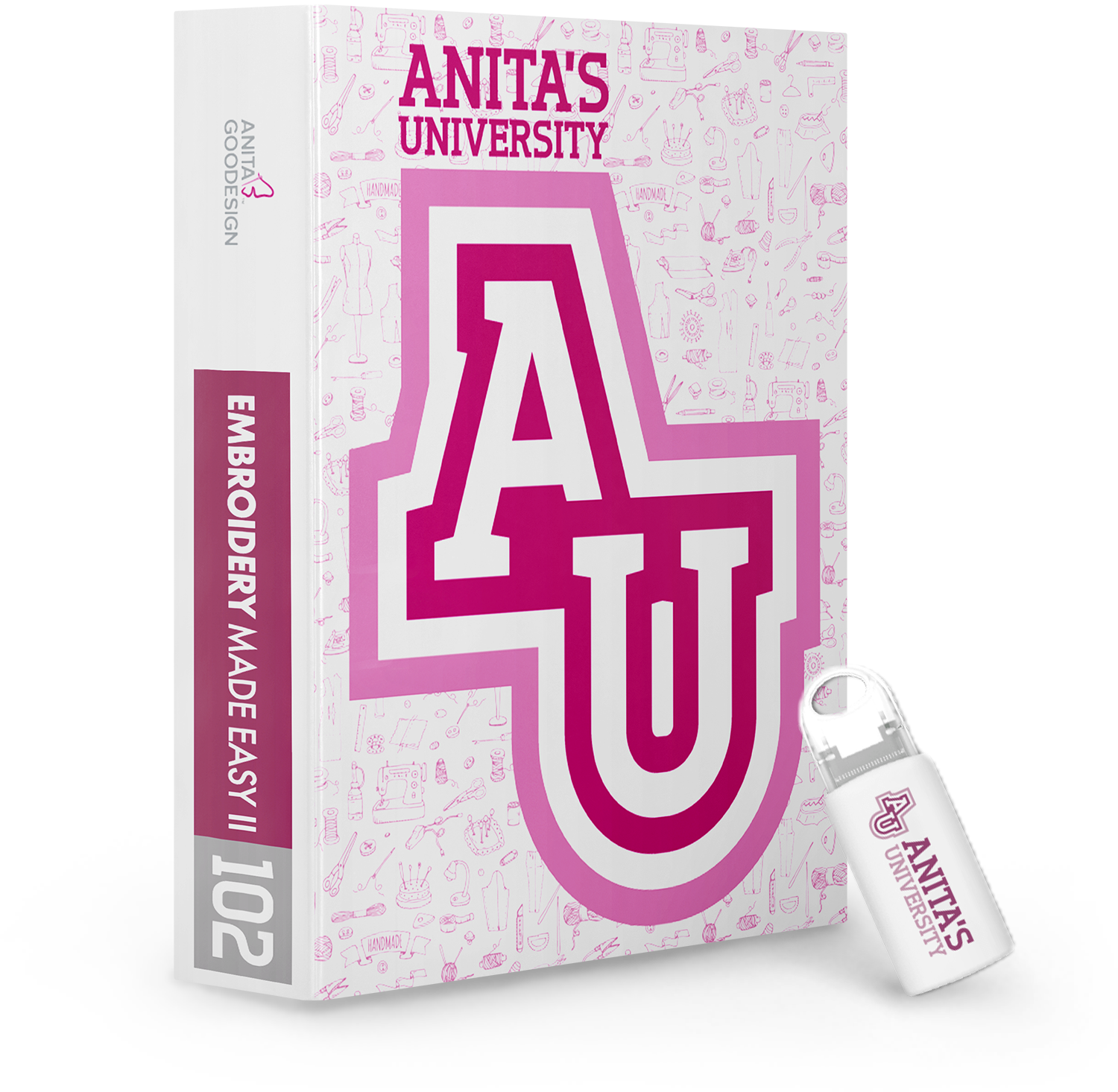 Anita's University 102 includes a physical binder and a USB.