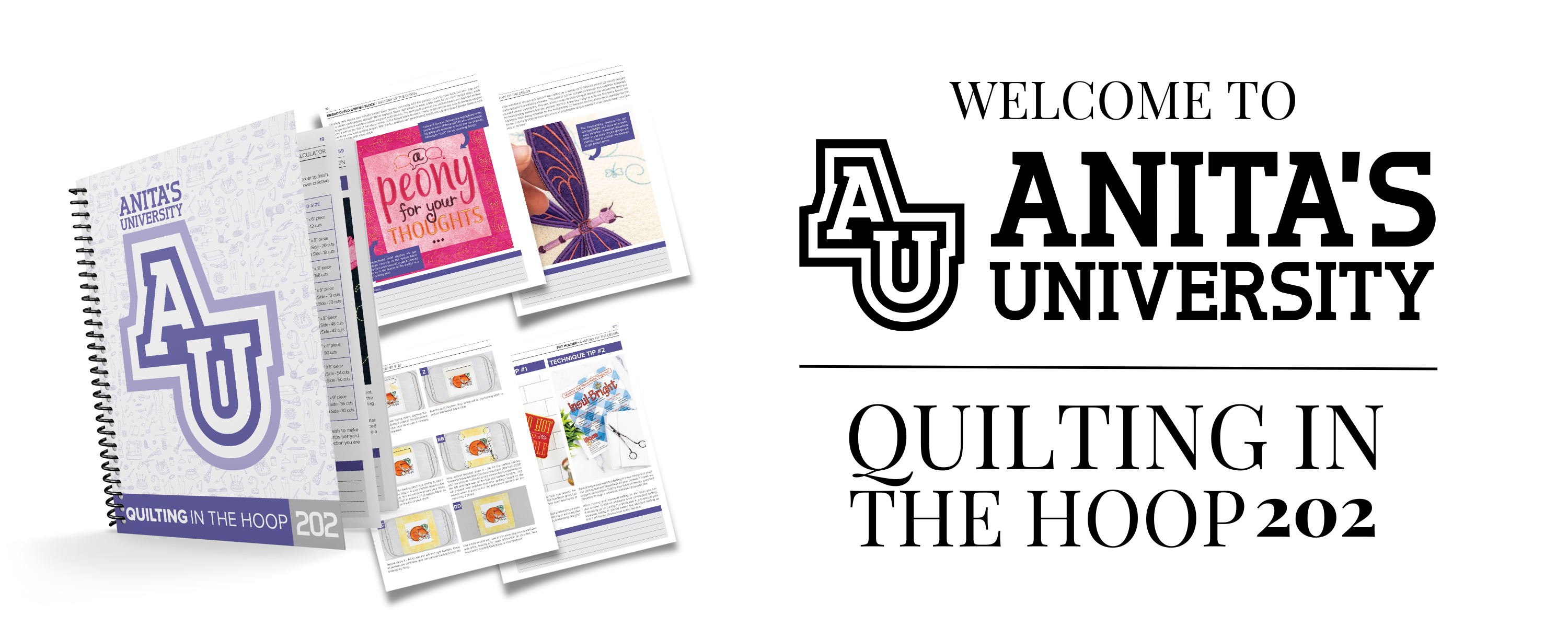 We are sew excited to present this latest addition to our Anita's University Curriculum, 202: Quilting in the Hoop. If you have joined an Anita Goodesign event in the past (whether in person or streamed online), then you know how much we LOVE embroidery and quilting. Our goal at Anita is to make stitching from home both fun and educational, whether you like simple embroidery or more complex projects and quilts. This latest addition in our AU lineup brings a deep dive into the fundamentals of creating quilt blocks in the hoop, then we'll take a deeper dive into a few key techniques we've been loving. With step-by-step instructions provided and a plethora of coordinating videos online to guide you along the way, 202: Quilting in the Hoop is sure to excite new embroiderers and seasoned quilters alike. This Anita's University course comes complete with this PDF book of project instructions, materials lists, and helpful tips and tricks to make your blocks stitch out beautifully every time. Each of the designs featured for the various techniques are included with the purchase of this course, giving you a variety of quilt blocks, unique techniques, and even multiple block sizes to practice on your own.