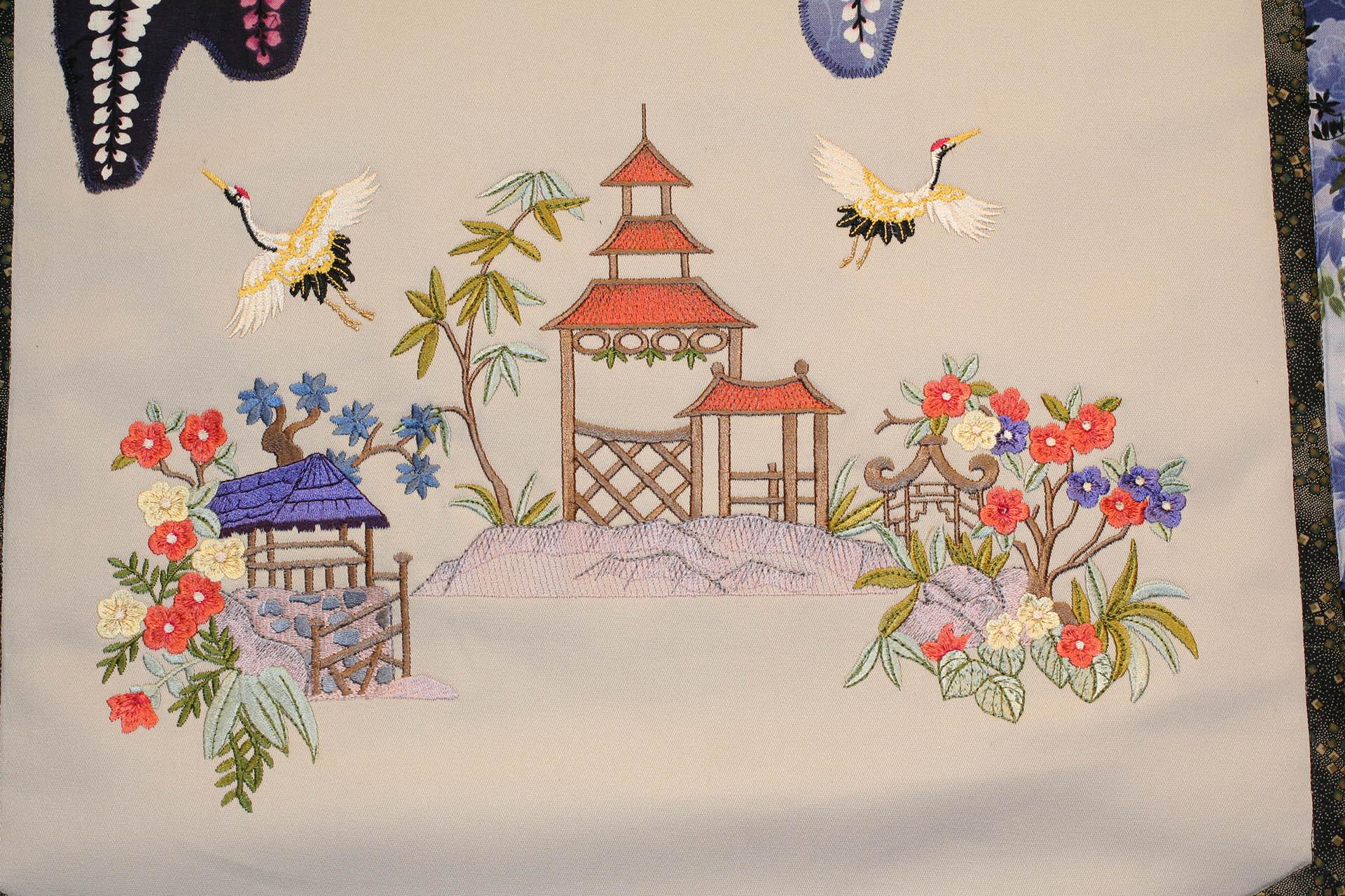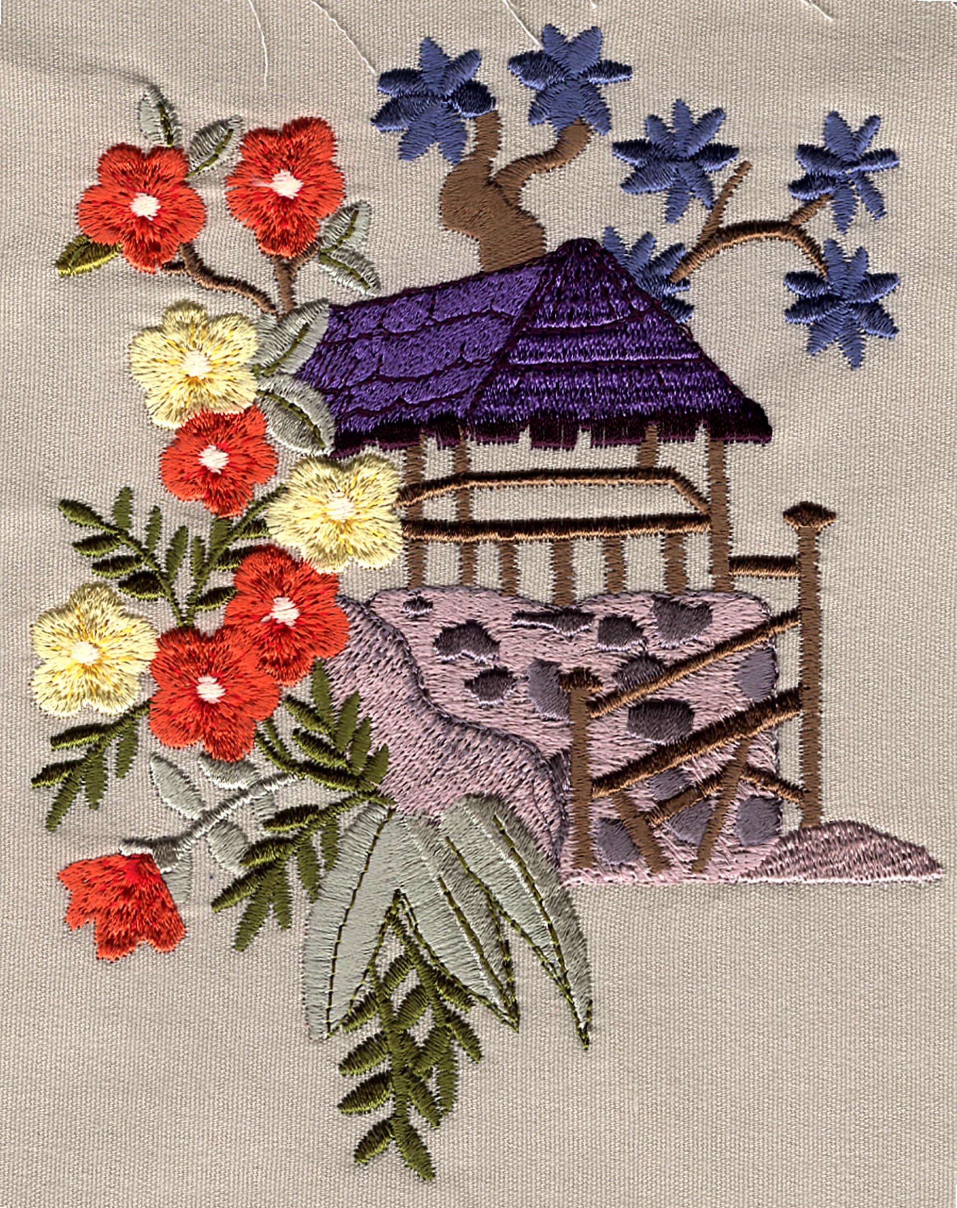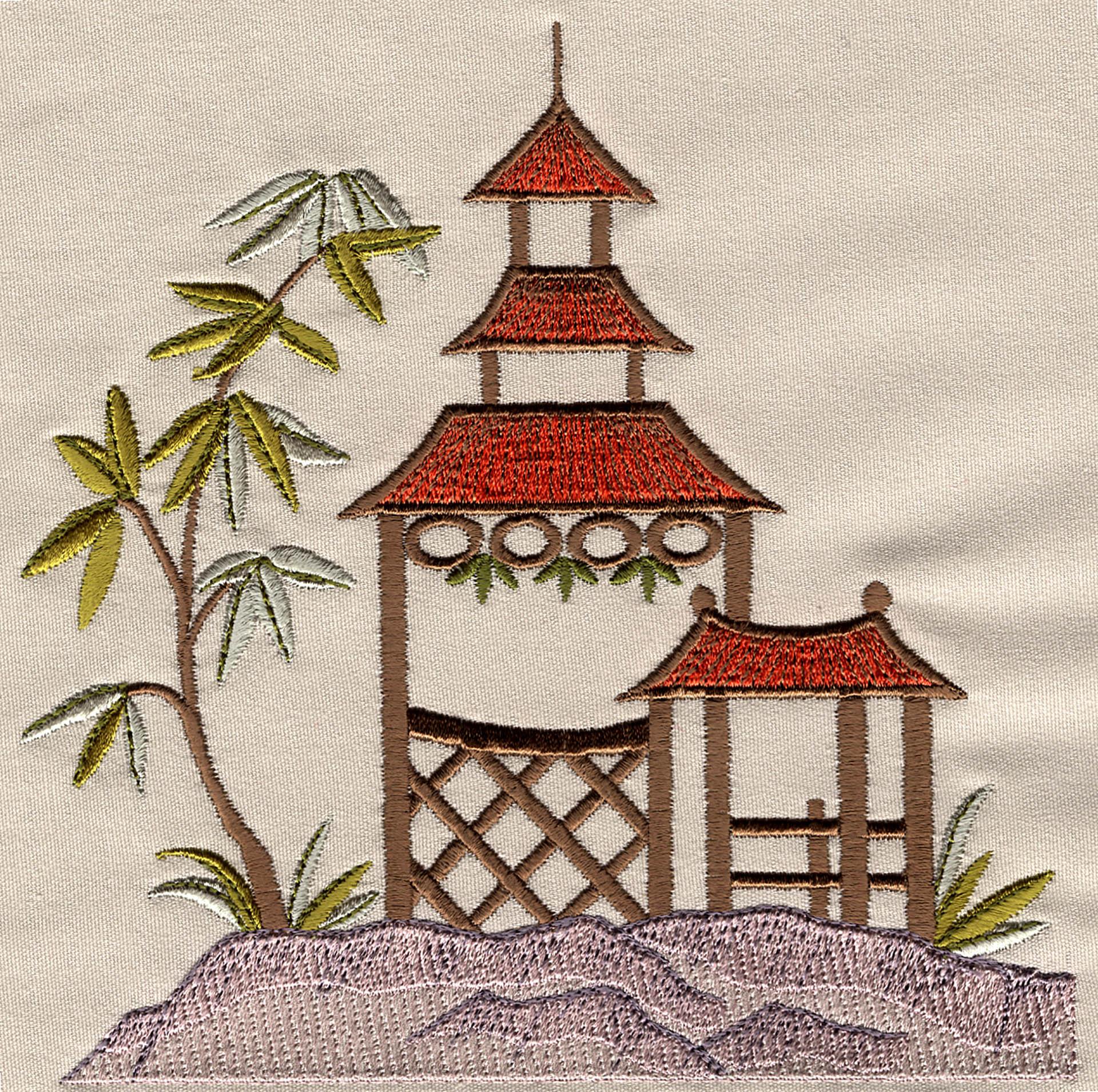 Pagodas, cranes, fans and foliage adorn this creative Asian collection. This collection contains 22 designs in a wide range of sizes including the jumbo hoop.