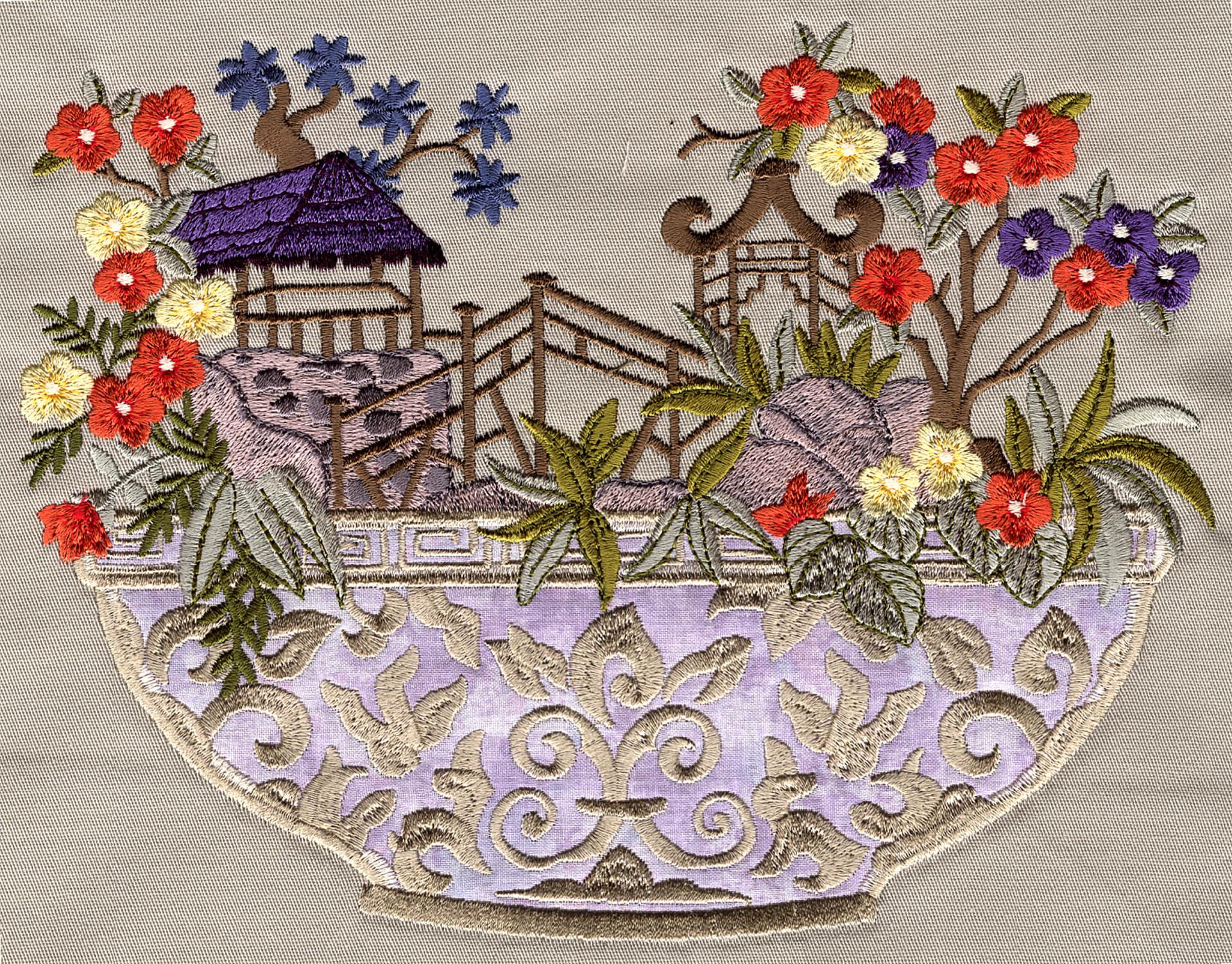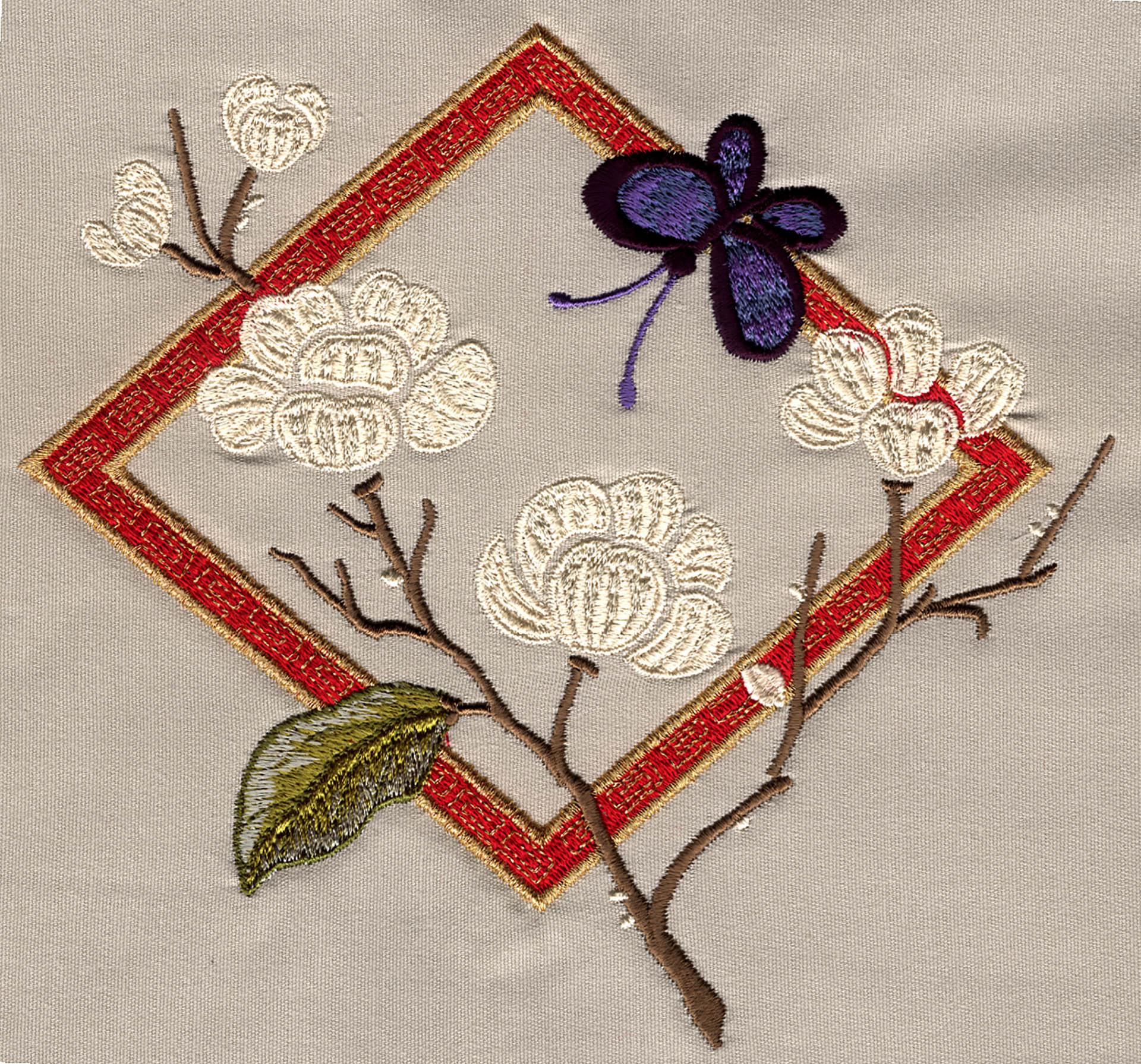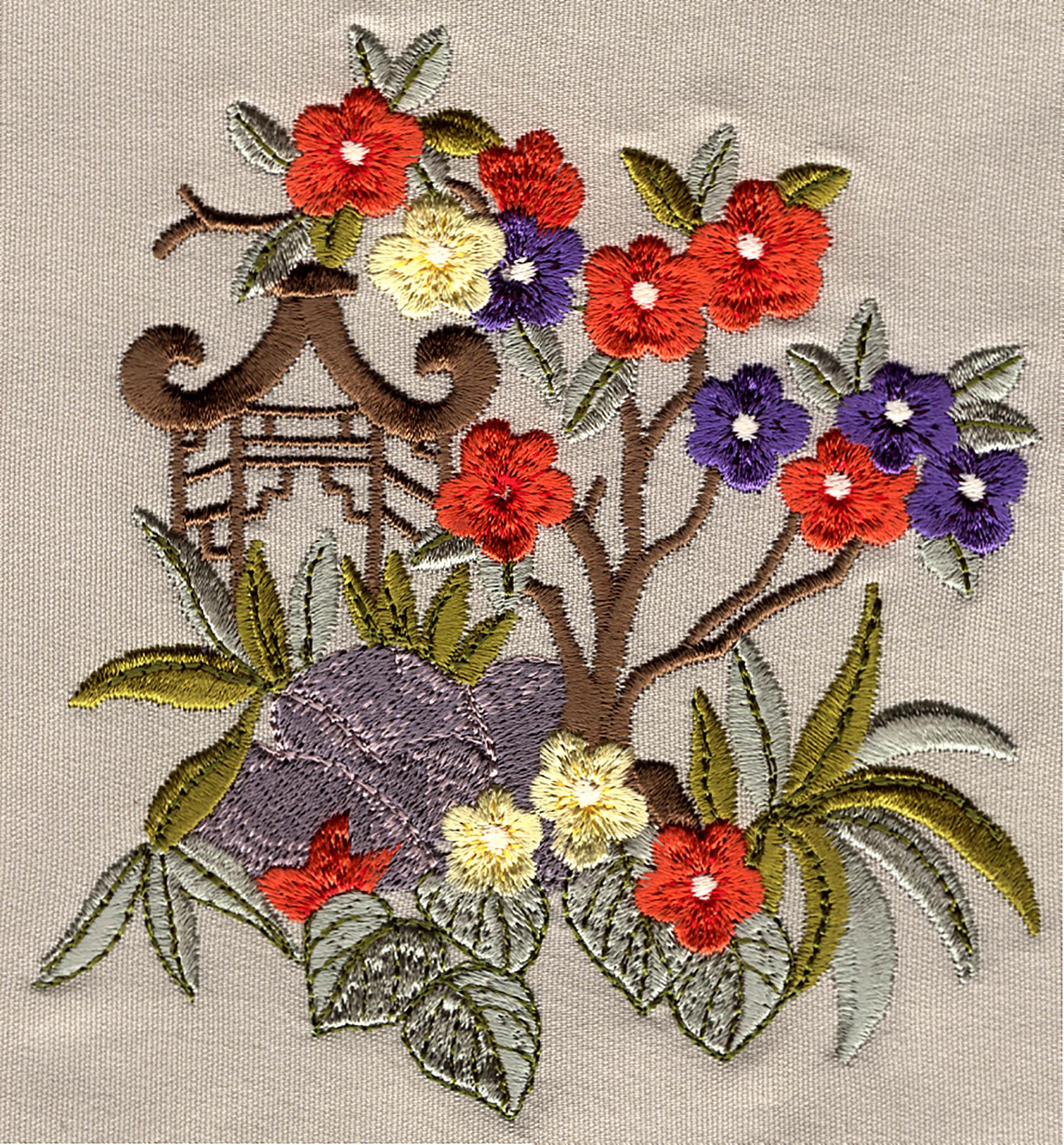 Pagodas, cranes, fans and foliage adorn this creative Asian collection. This collection contains 22 designs in a wide range of sizes including the jumbo hoop.