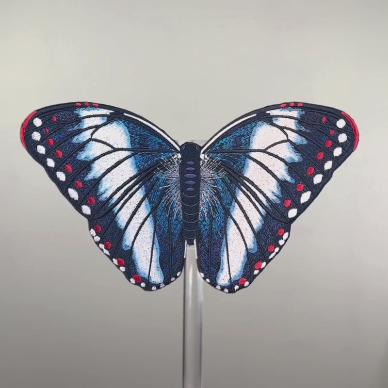 "Each butterfly has been given a transformation from their real life counterparts into these beautiful and vividly embroidered representations."