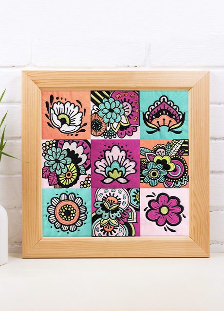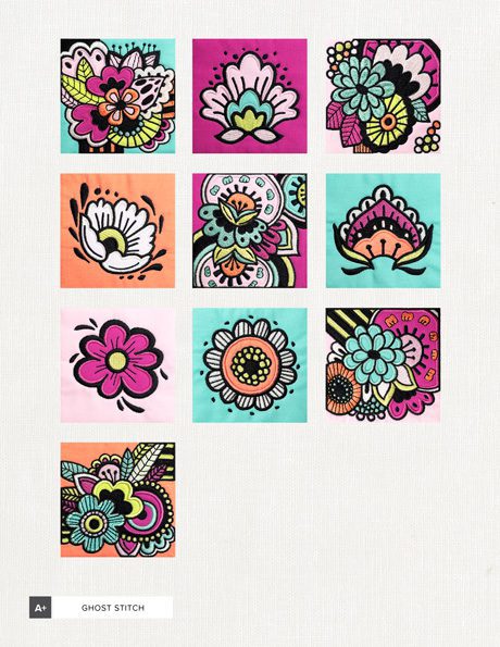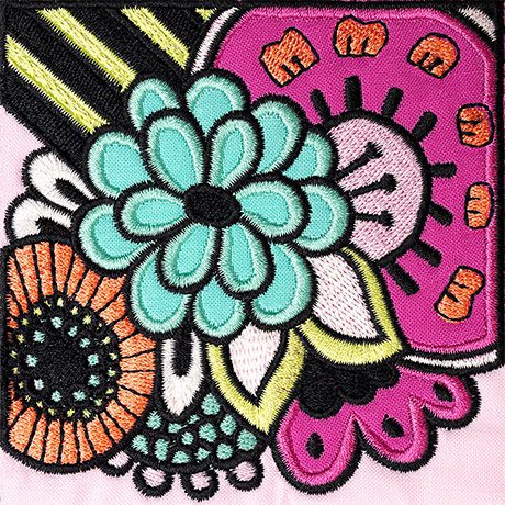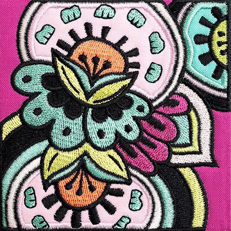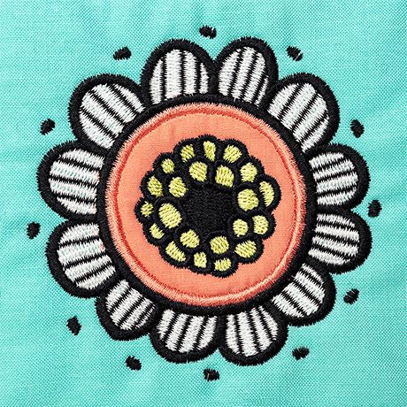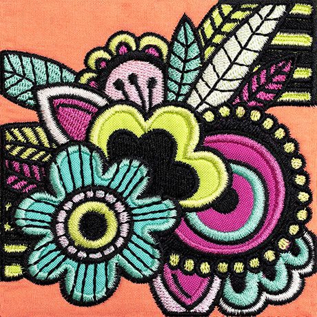 Take a trip back to the 60s with us! Leave time behind and reminisce about the days of flower power with these bold and bright 4” x 4” designs. While these blocks may be small, they sure do pack a punch! Each design is specially digitized to include decorative appliqués surrounded by two different satin stitches. This digitizing effect, known as ghost stitching, is created by color-matching the inner satin stitch to your appliqué fabric. A thinner, contrasting outline is then stitched surrounding the matched colors, giving the design further definition while still maintaining a delicate look. With 10 Bold Blossom blocks to choose from, you can create anything from small projects like drink coasters or placemats to larger items like bold and bright throw pillows!