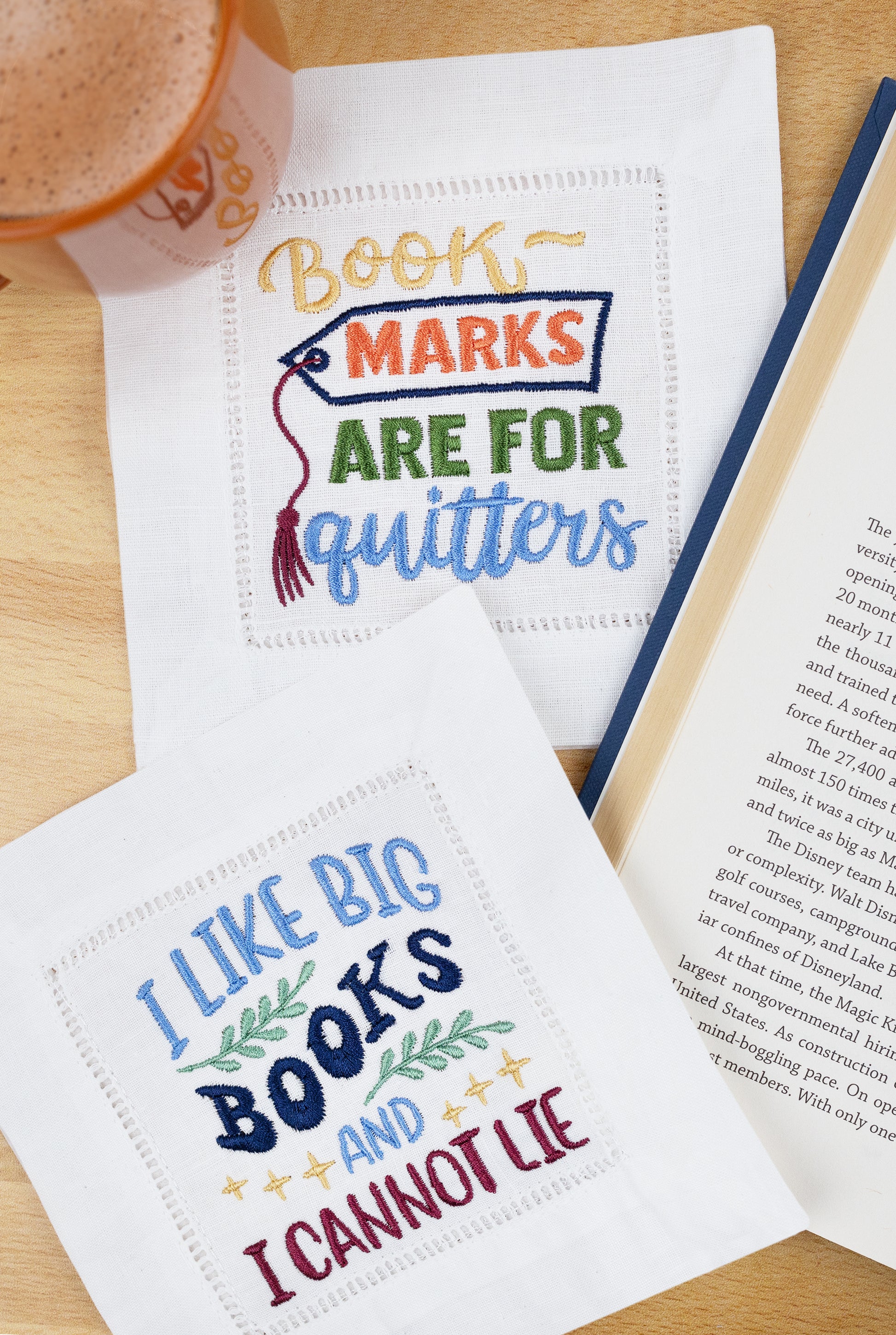 Some people are bookworms from the moment they first learn to read, while others grow into their love of books. This collection of six typographic designs is perfect for these ravenous readers and novel nuts! Stitch onto clothing, napkins, coasters, bags, tablet cases, or cover protectors, to show off your love for books!
