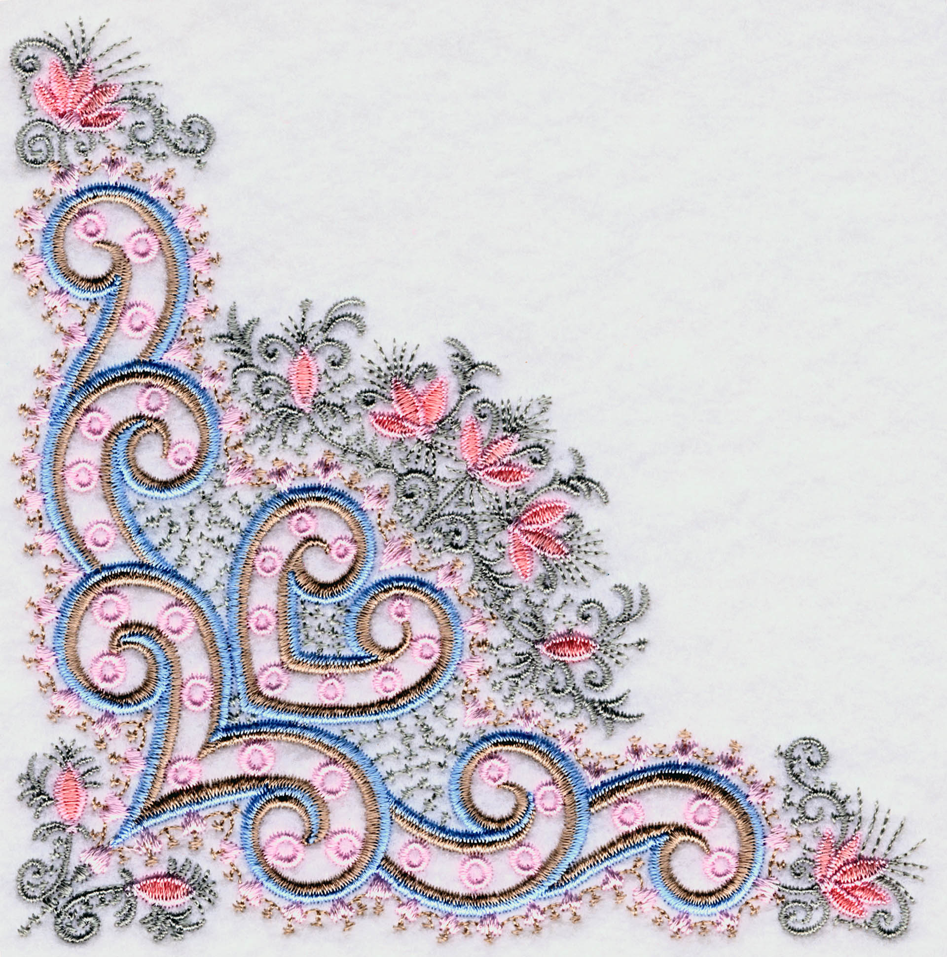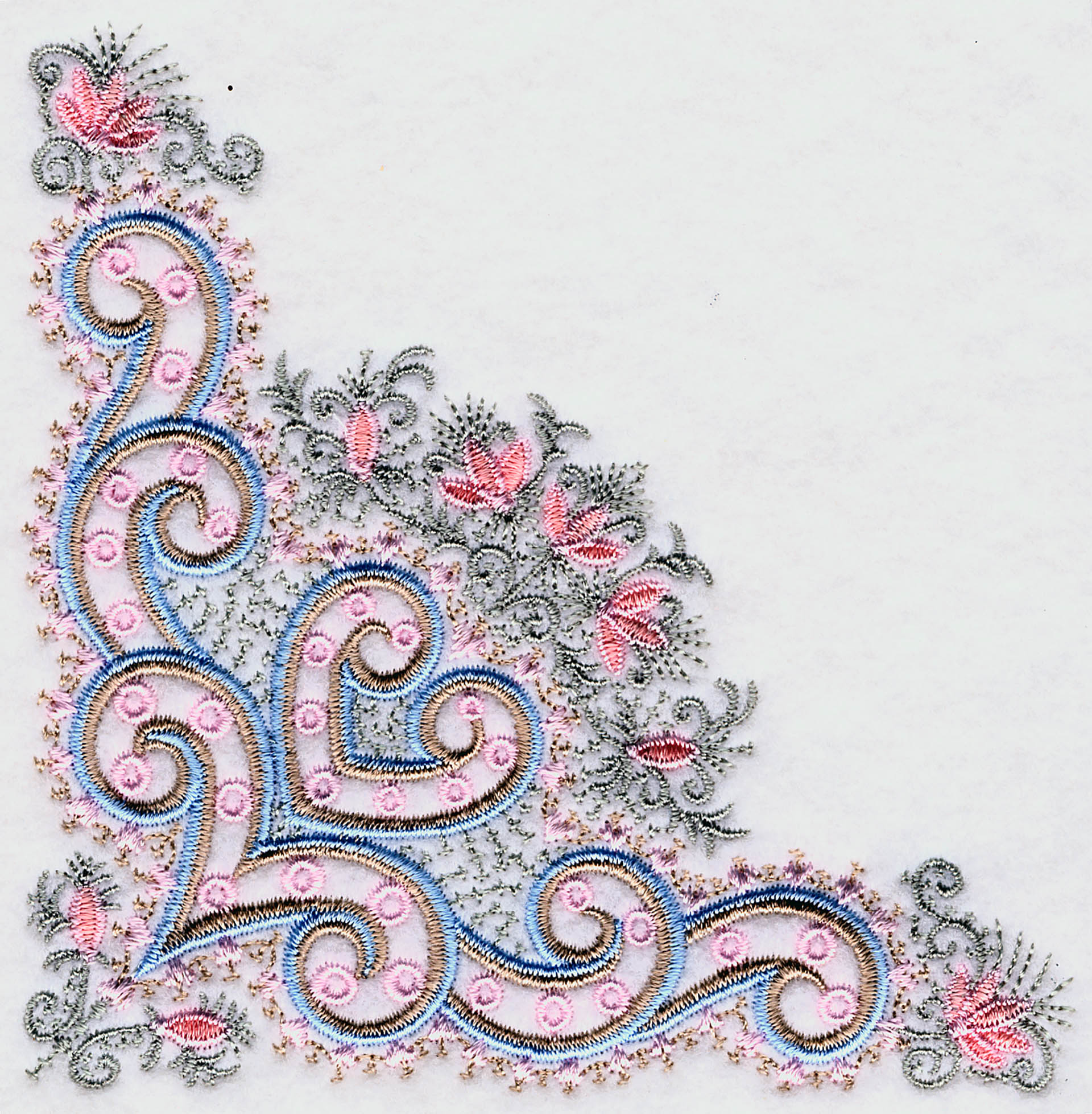 Everything you need to make a complete bridal ensemble is included in this collection! We included alphabets, lace designs and over thirty others to create wonderful projects like album covers, wedding favors, ring bearers pillow. The designs are very intricate with flowing vines & small flowers. Motifs, connecting borders, flowers, flourishes, scrolls & corners are availbe for you to play with. The collection is not limited just for bridal, you can easily create quilt blocks using the corners & motifs for table cloths, pillow case edges, lingerie, garments or anything else.