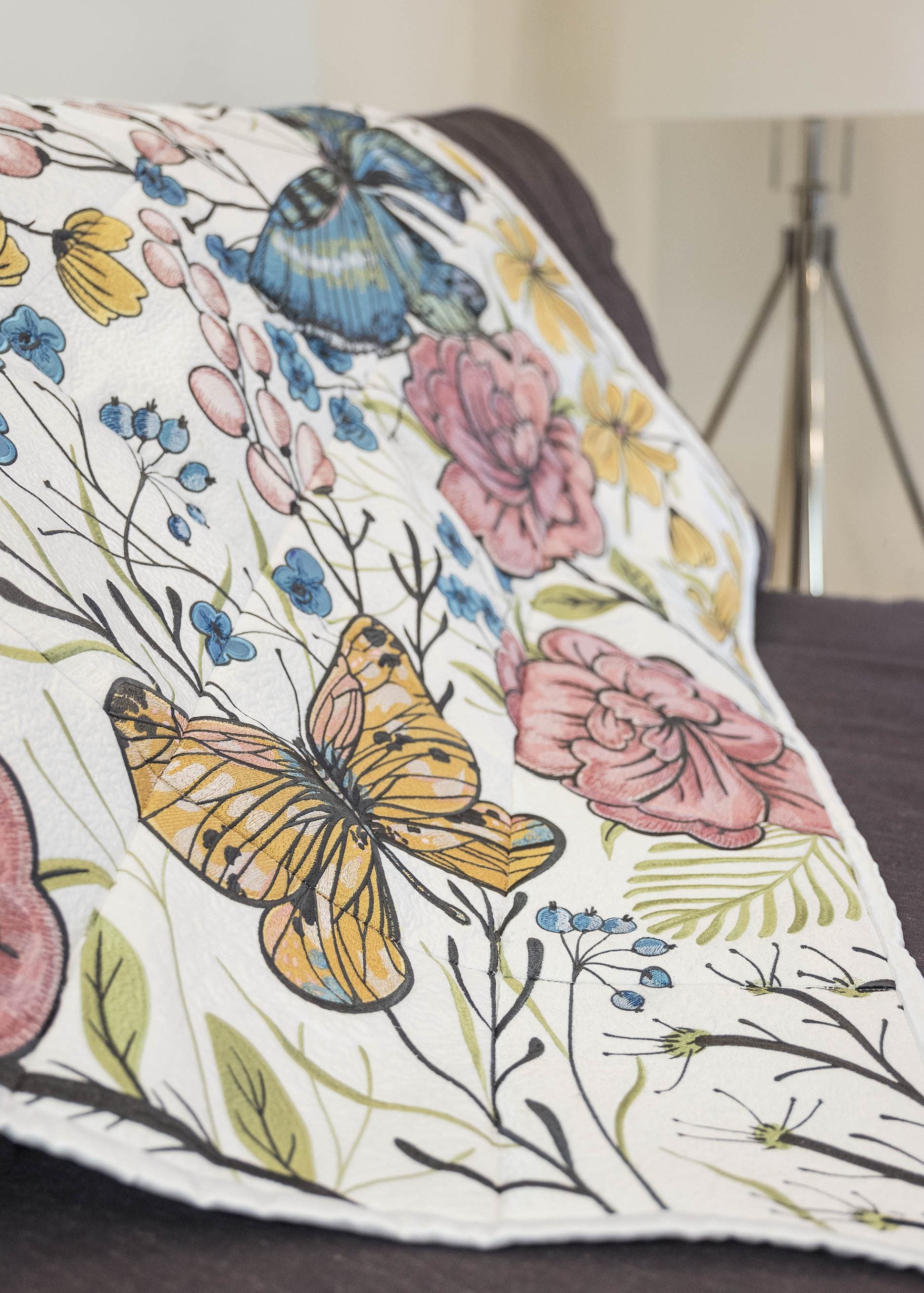 The Butterfly Dreams collection is a celebration of nature's exquisite beauty, showcasing stunning flowers and graceful butterflies meticulously crafted using a variety of silk appliqués and enhanced with vibrant polyester threads. Each block in this collection is a masterpiece in itself, intricately designed and digitized with utmost care and attention to detail. Countless hours were dedicated to ensuring that every stitch captures the essence of these captivating creatures and blossoms.