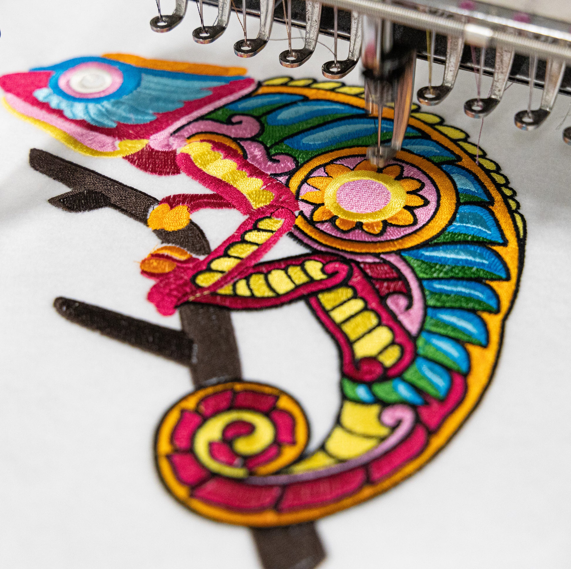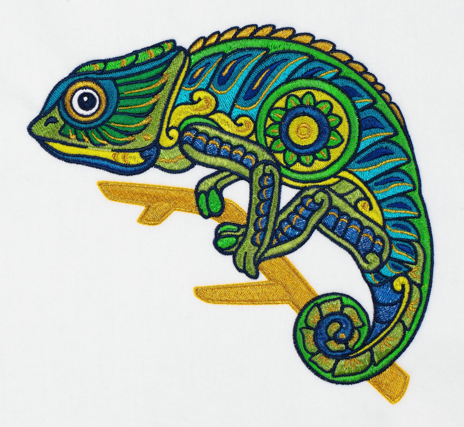 Keep kids cool with this colorful critter! Hypnotic and bold line work makes this Chameleon design pop off the fabric—no matter the color palette! There’s no hiding how cute this little lizard is!