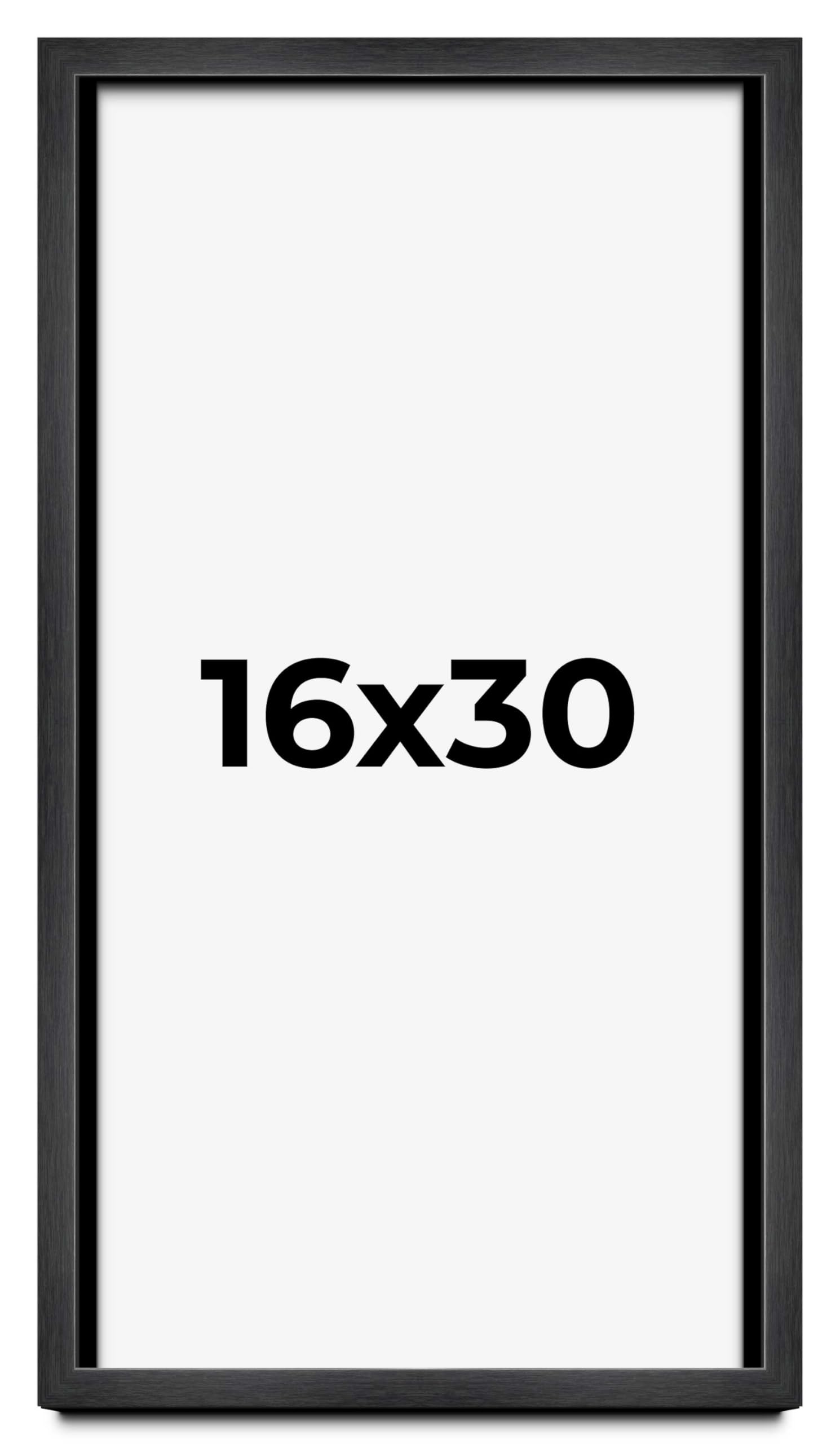 - Charcoal Wood Shadow Box Frame Interior dimensions of 16x30 inches with 3/4" of usable depth. UV resistant, frame-grade acrylic protective front. Acid-free white backing board and interior walls. Hanging hardware included for vertical or horizontal display.