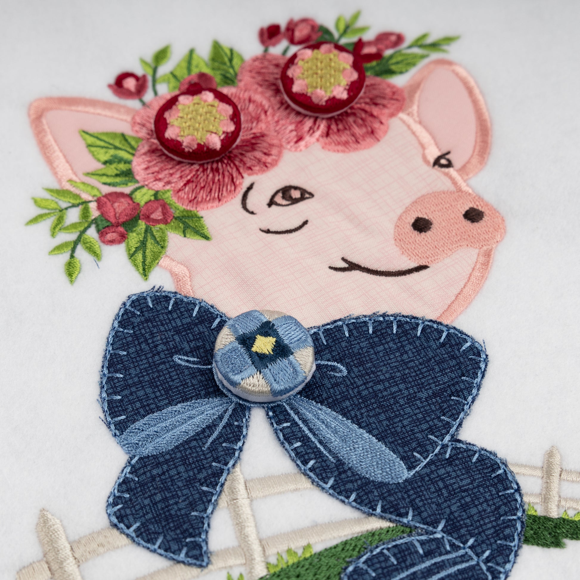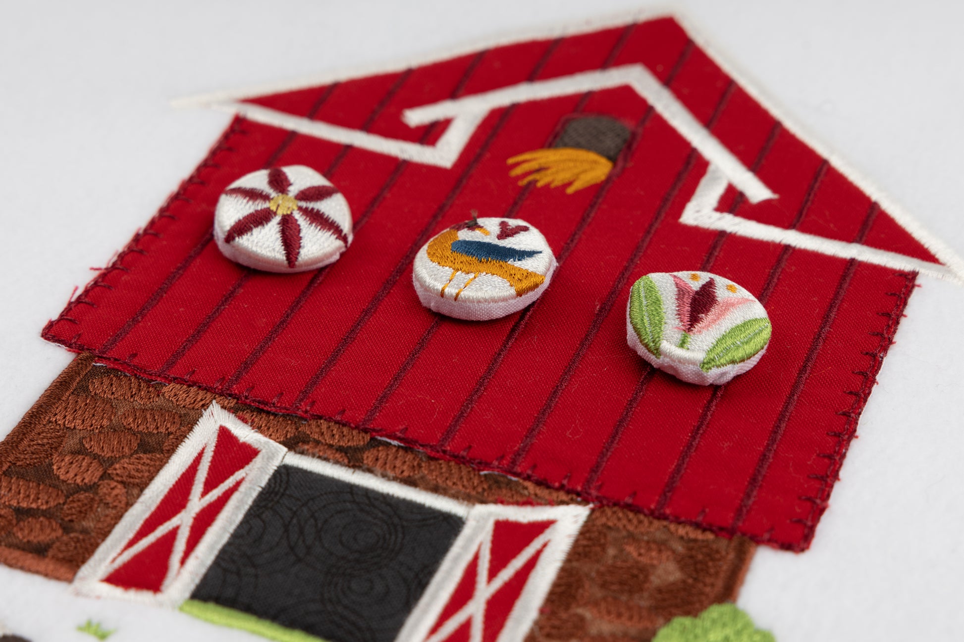 These 8 farm-inspired designs are as cute as a button...covered buttons, that is! Follow along with the pictured instructions for how to embroider these fun farm designs, then grab a covered button press kit to create the coordinating buttons that get sewn directly onto each scene!