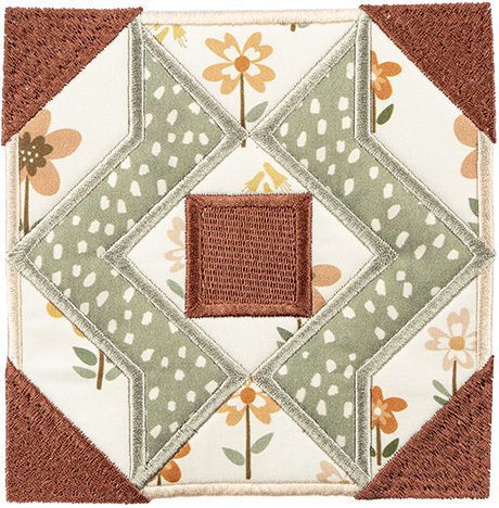 This darling stitch-out honors quilting but with a modern machine twist; and uses a combination of embroidery and appliqué to mimic a beautiful vintage-style quilt. The cozy little design can easily be customized for any theme by simply changing up the fabrics and threads used.