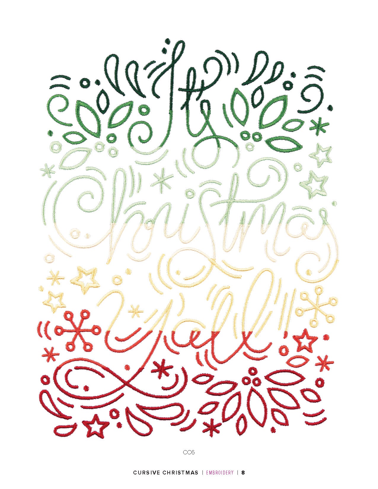 Christmas is the most wonderful time of the year and while you may be wondering what you might wear this holiday season, we have the perfect collection for you. Our Cursive Christmas collection features 12 designs using our standard embroidery technique. Swap out your average red, green, and white color scheme this season and make your outfit pop by adding fun colors to these decorative stitches. Whether you are in need of a new shopping bag, pj set, or holiday throw pillows, these designs make the perfect addition to any Christmas occasion. Designs: 12