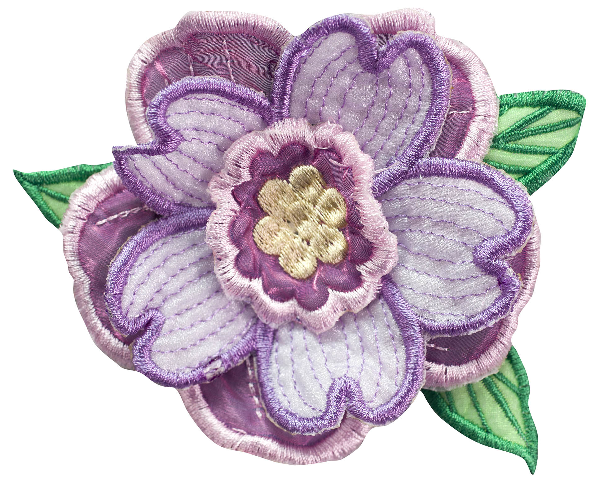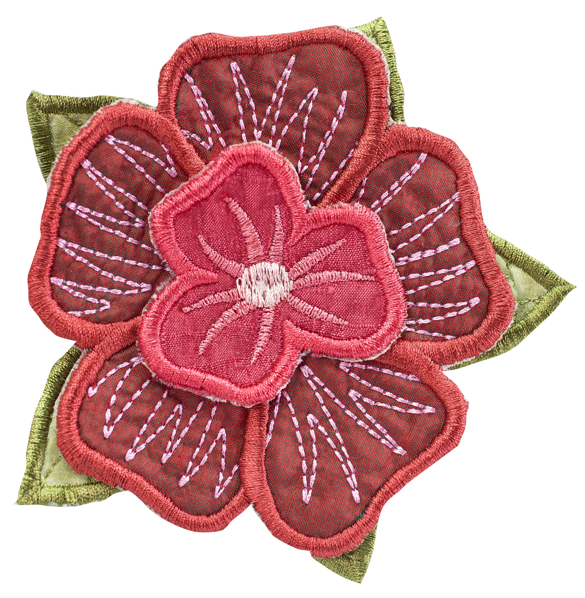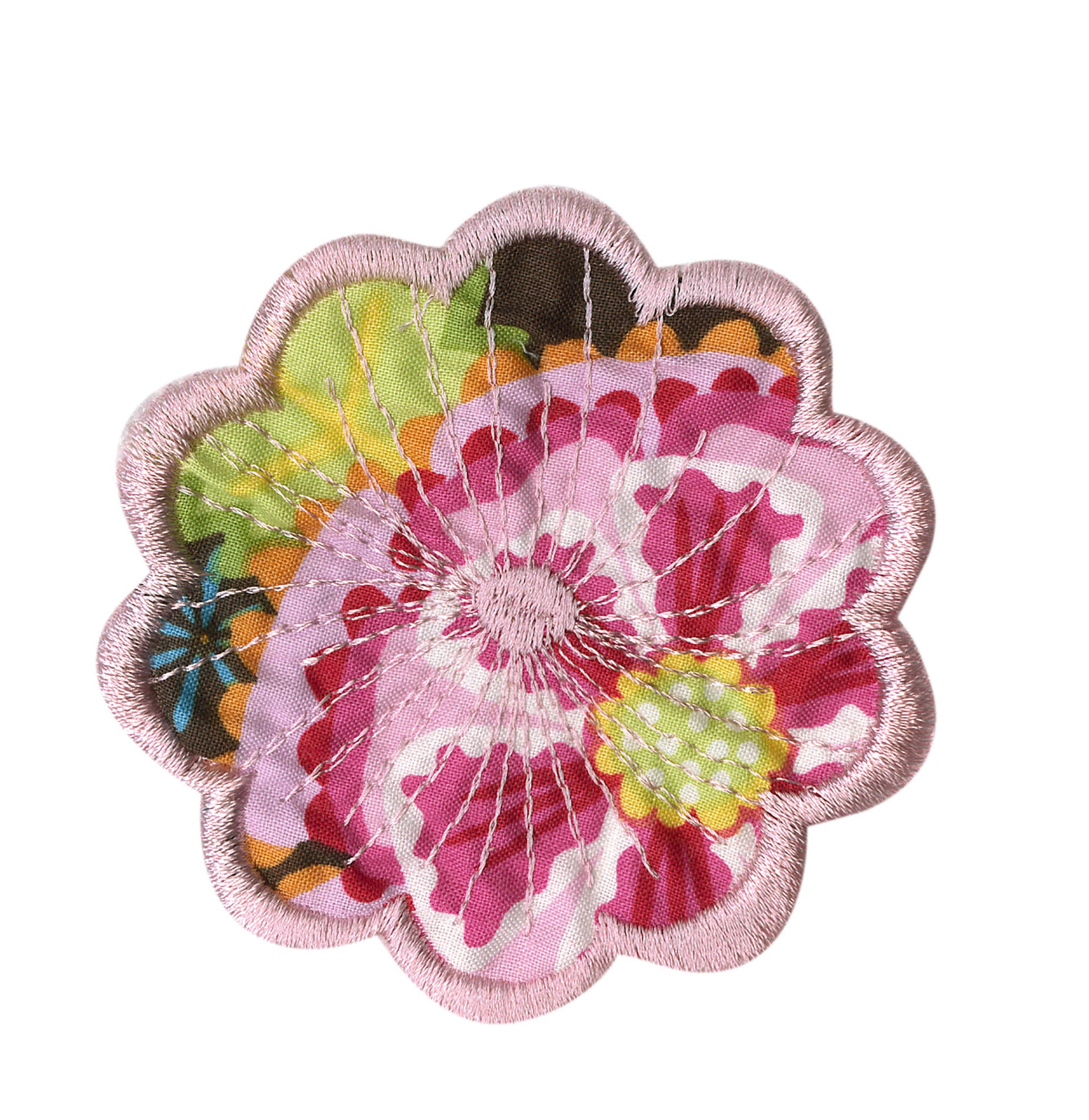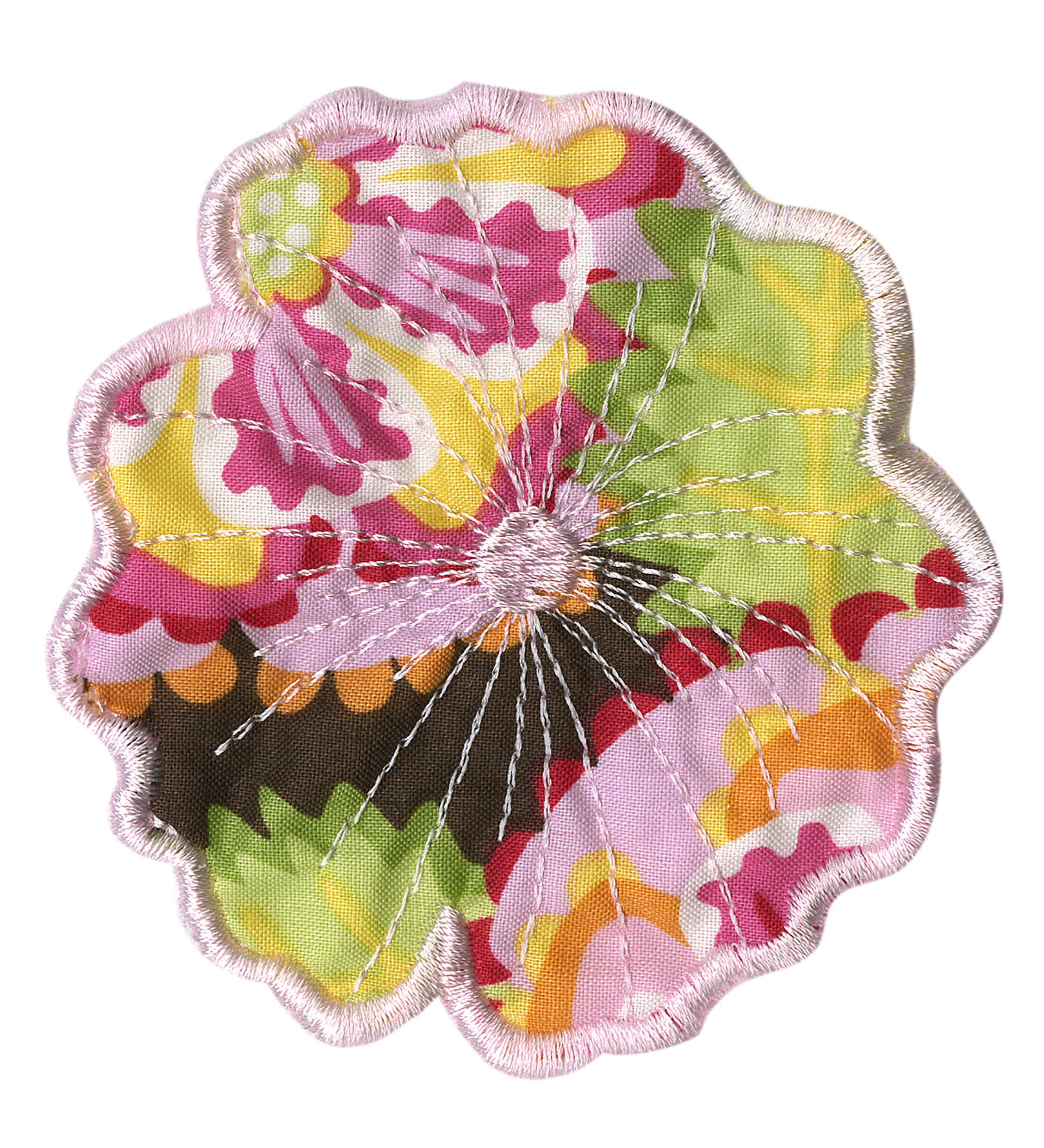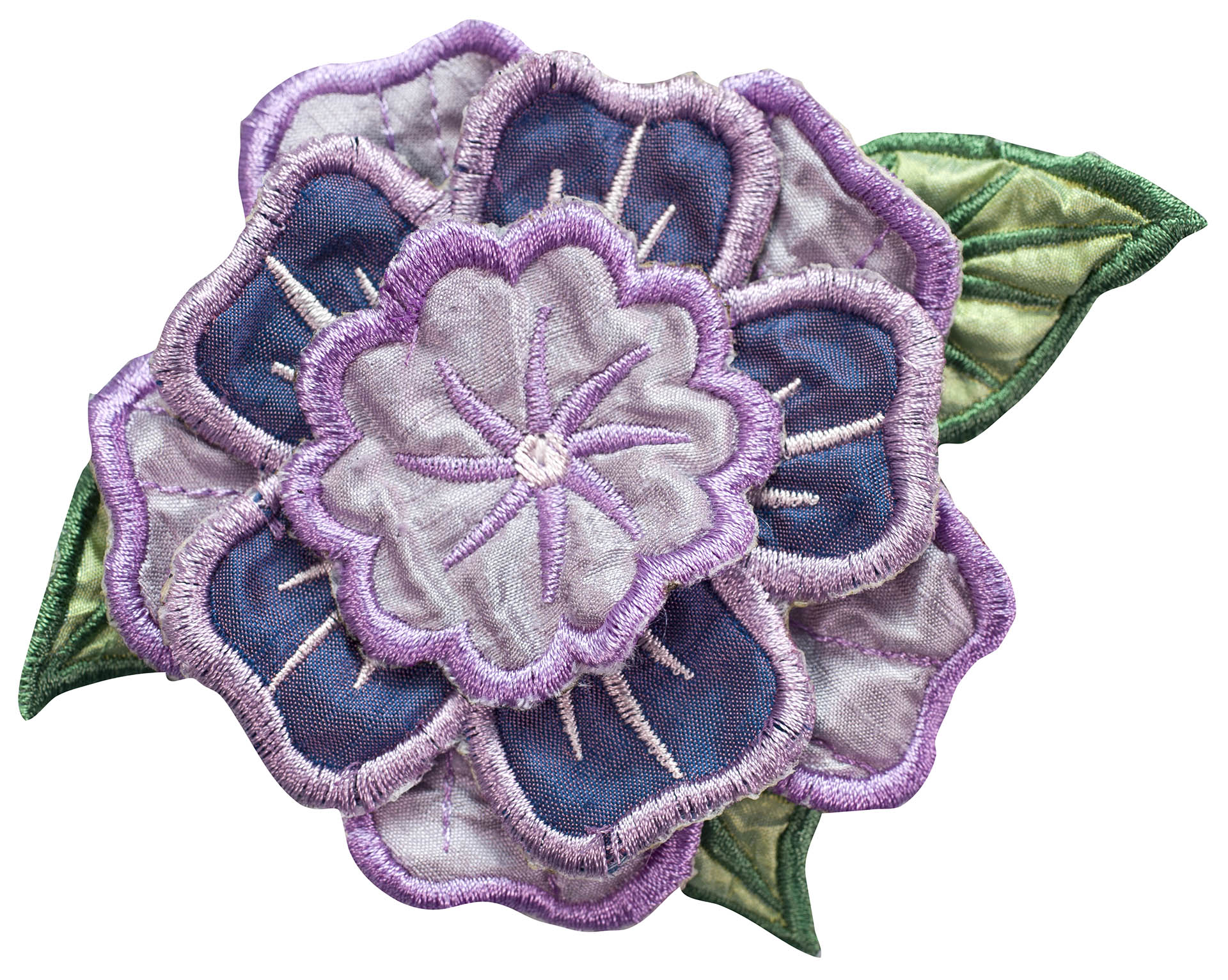 Experiment even more by adding Floriani's Heat N Shrink (now RNK's Sew-Shrink) or Crinkle Magic to each of the flowers for a more dramatic effect. The shrinky film will cause the stitched fabric to shrink once steam is applied to it. When you do this, the petals will permanently curl and crinkle, creating a truly dimensional flower.