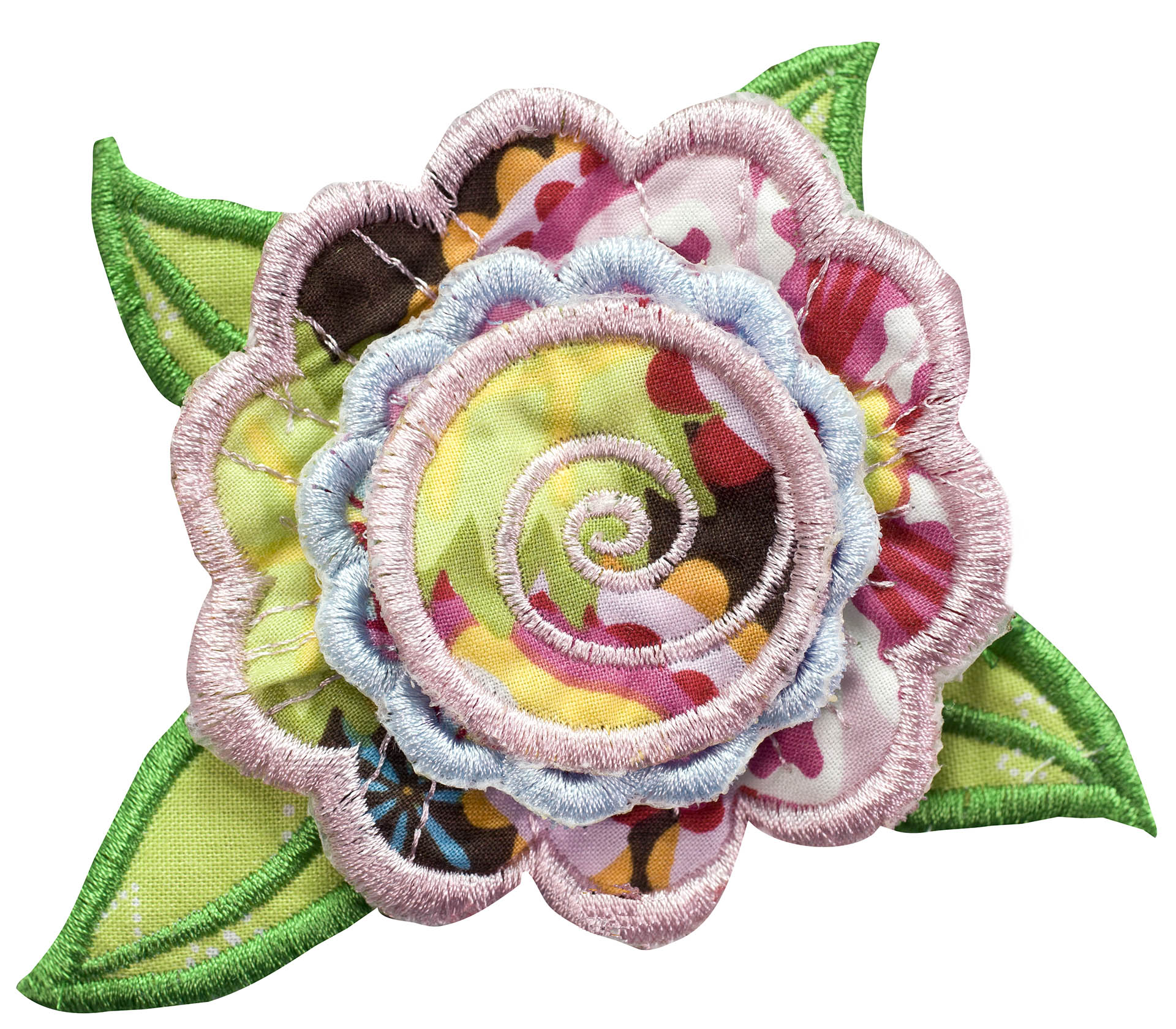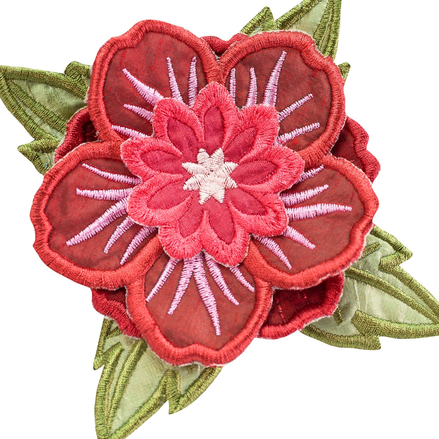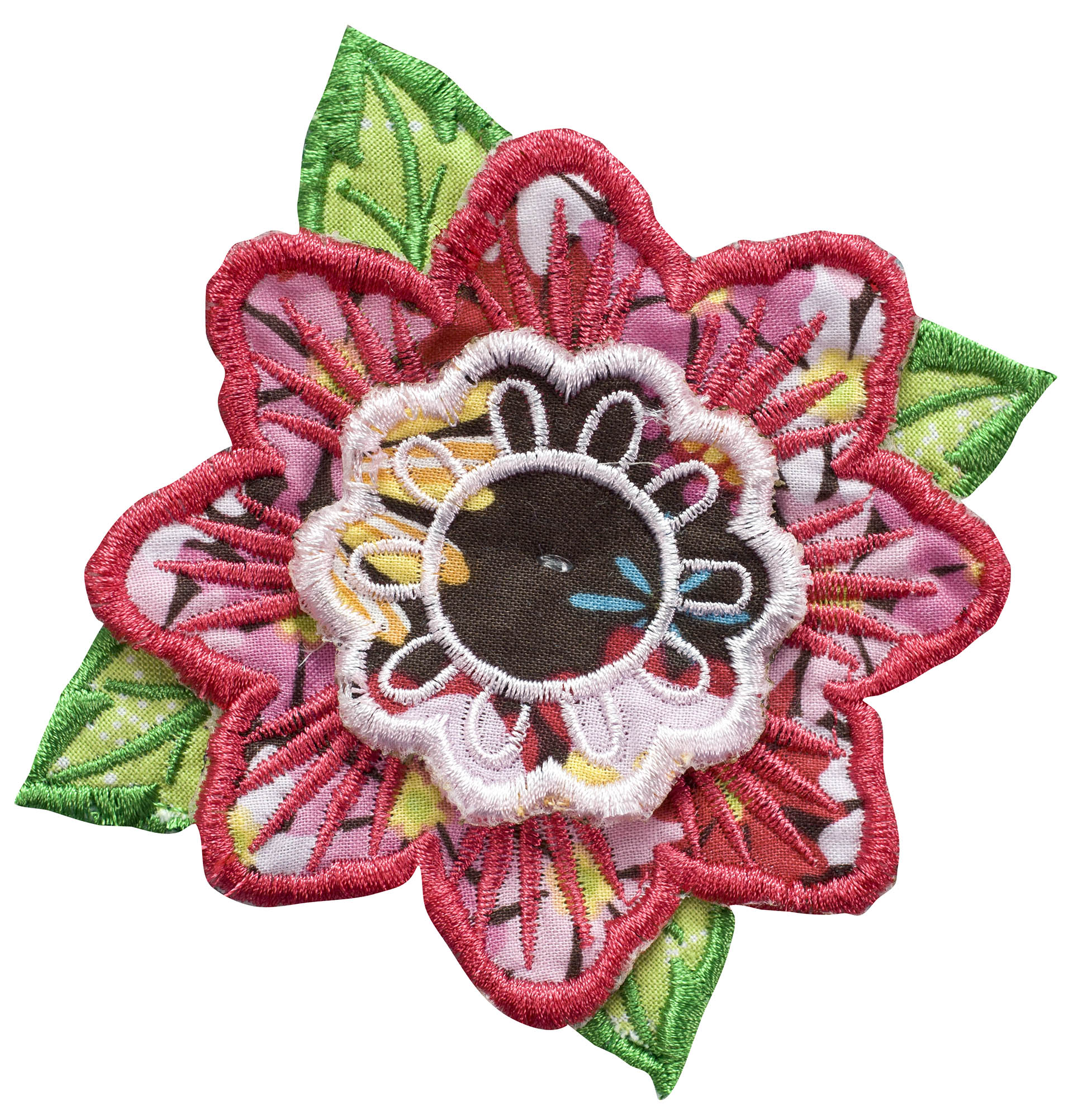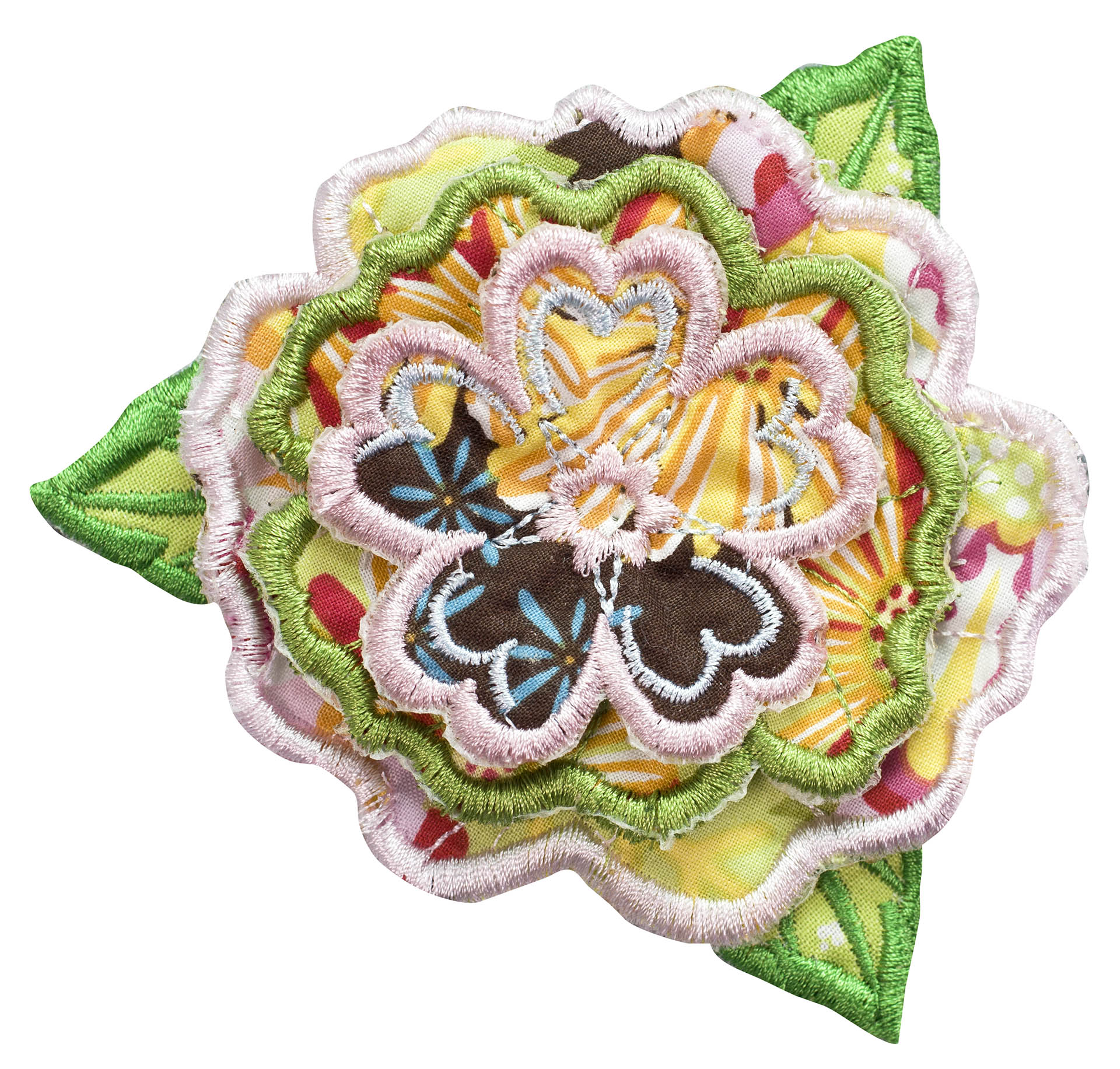 Experiment even more by adding Floriani's Heat N Shrink (now RNK's Sew-Shrink) or Crinkle Magic to each of the flowers for a more dramatic effect. The shrinky film will cause the stitched fabric to shrink once steam is applied to it. When you do this, the petals will permanently curl and crinkle, creating a truly dimensional flower.