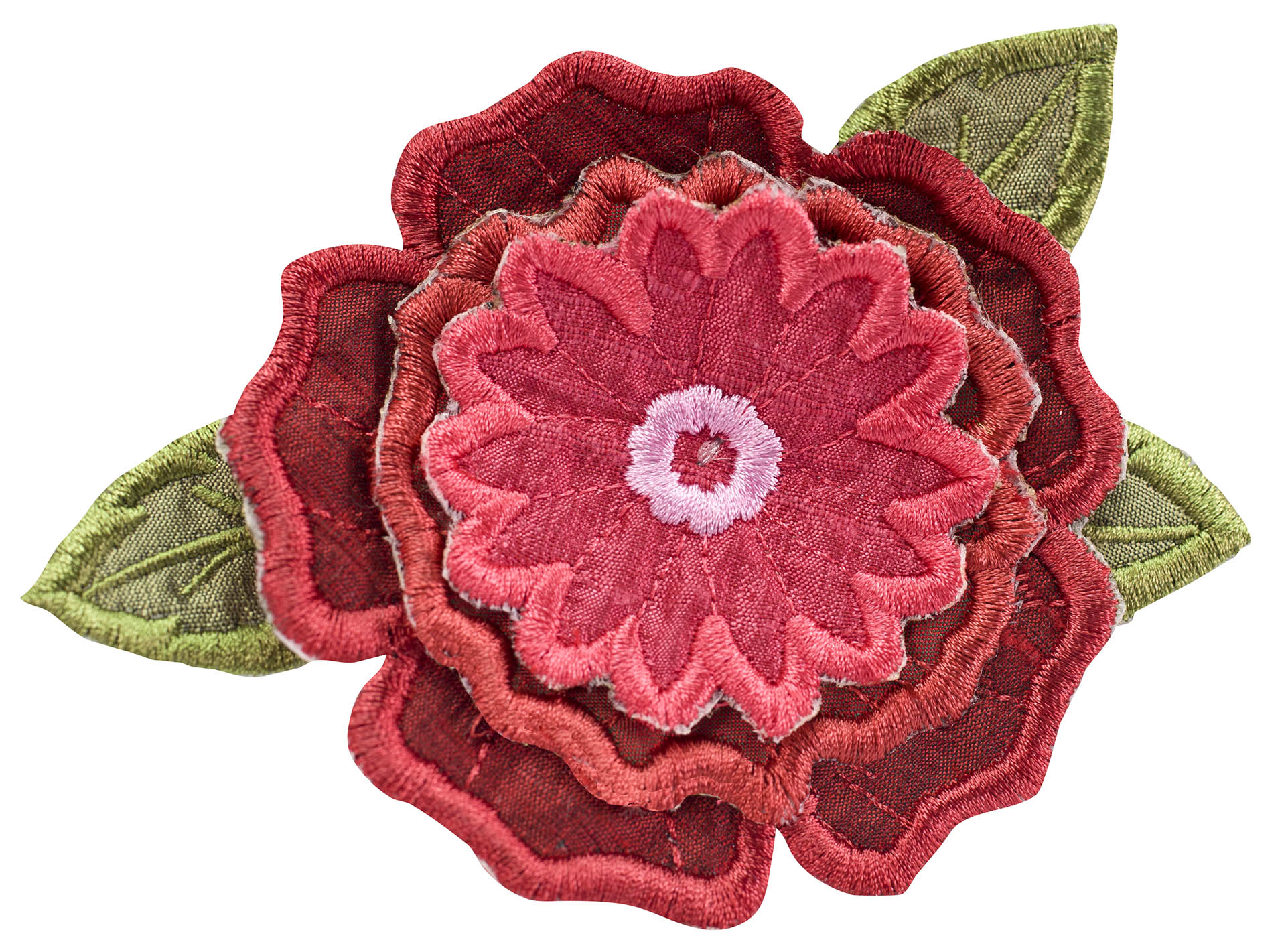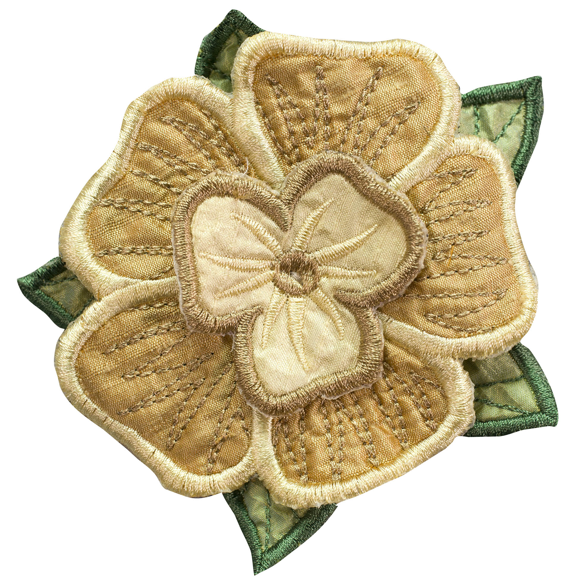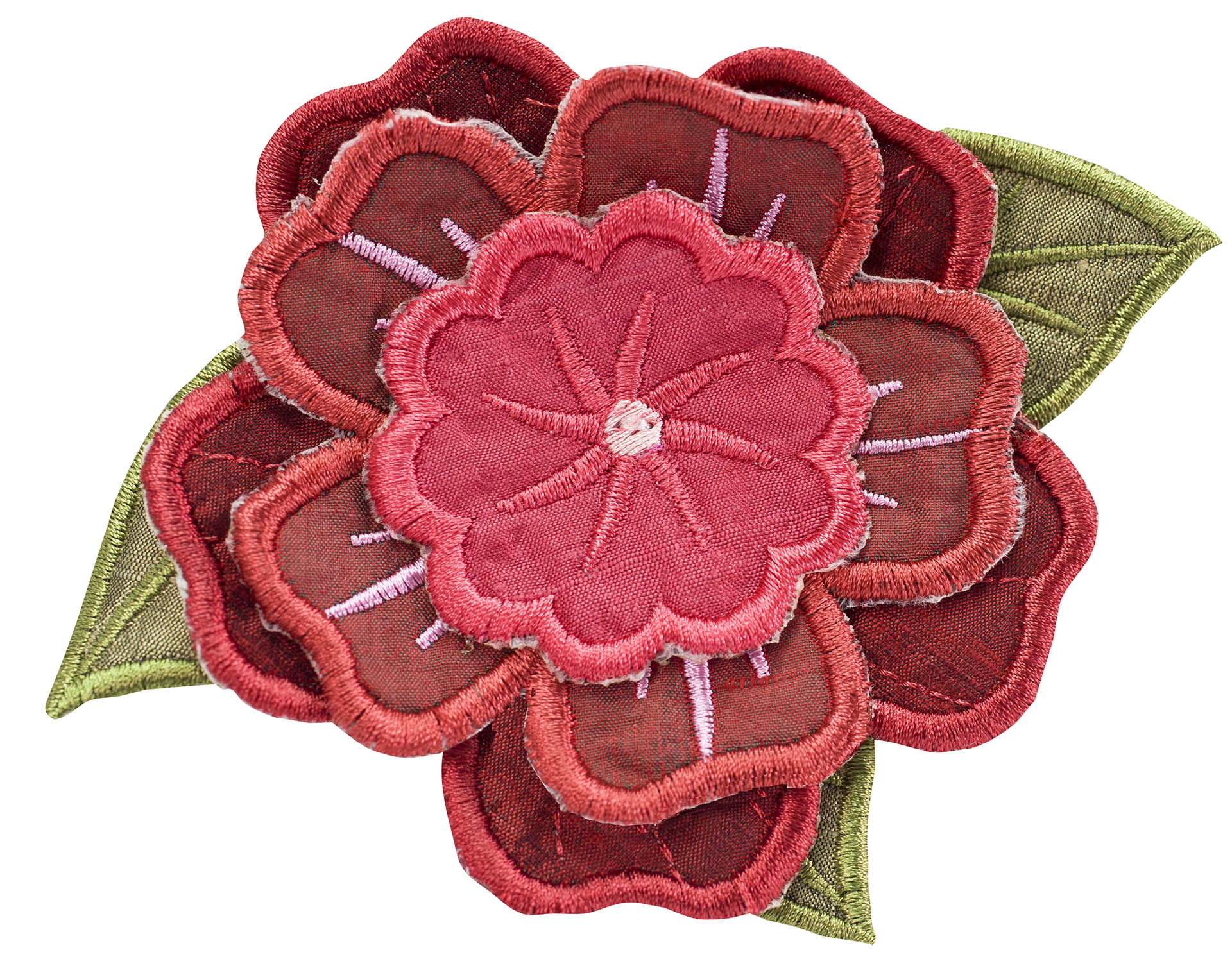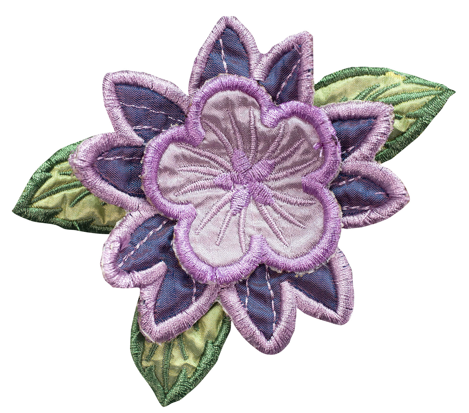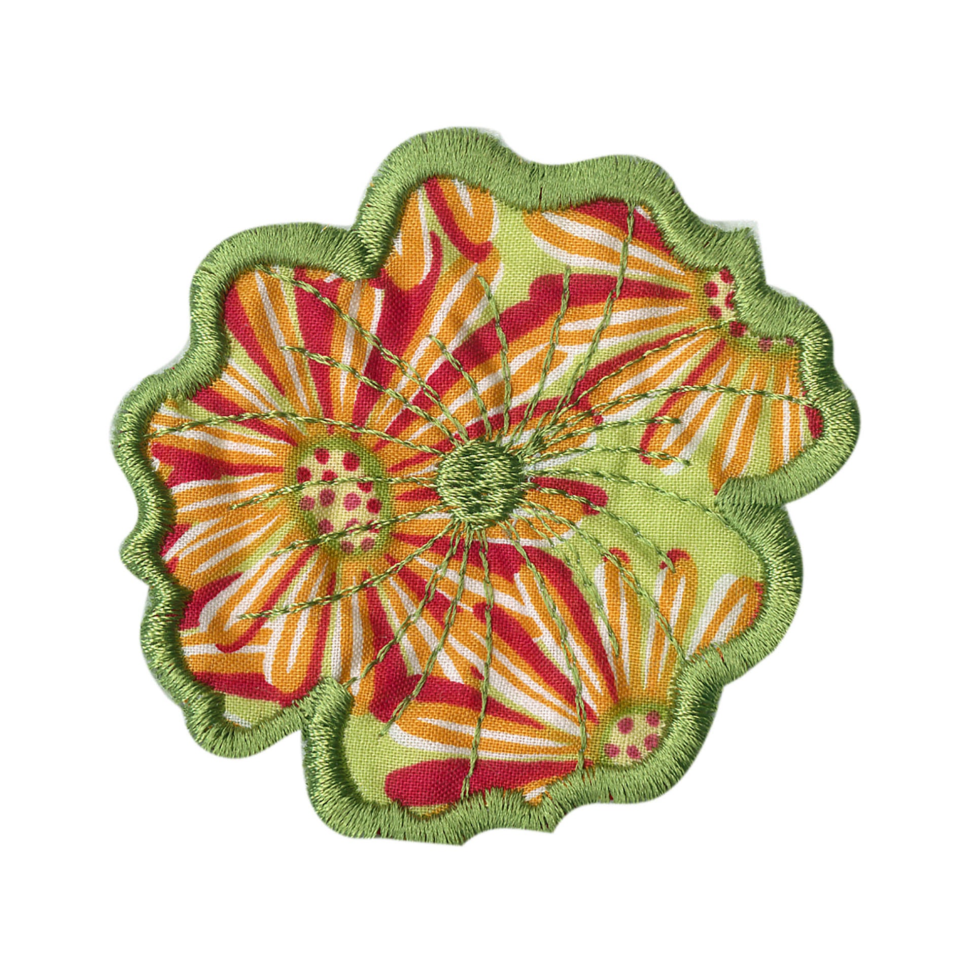 Experiment even more by adding Floriani's Heat N Shrink (now RNK's Sew-Shrink) or Crinkle Magic to each of the flowers for a more dramatic effect. The shrinky film will cause the stitched fabric to shrink once steam is applied to it. When you do this, the petals will permanently curl and crinkle, creating a truly dimensional flower.