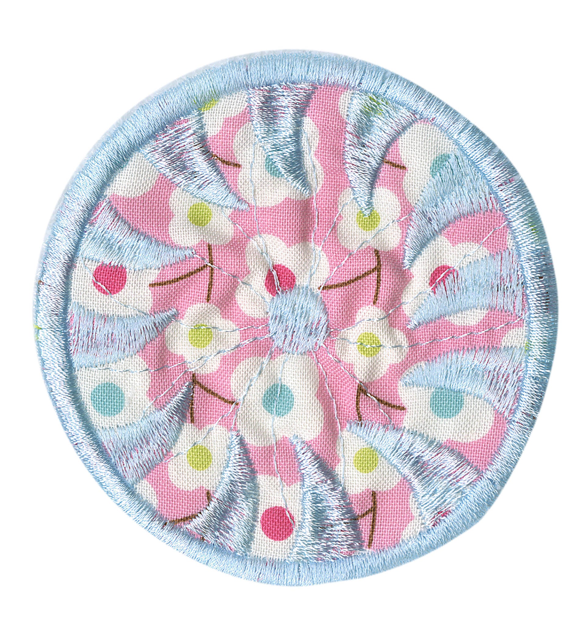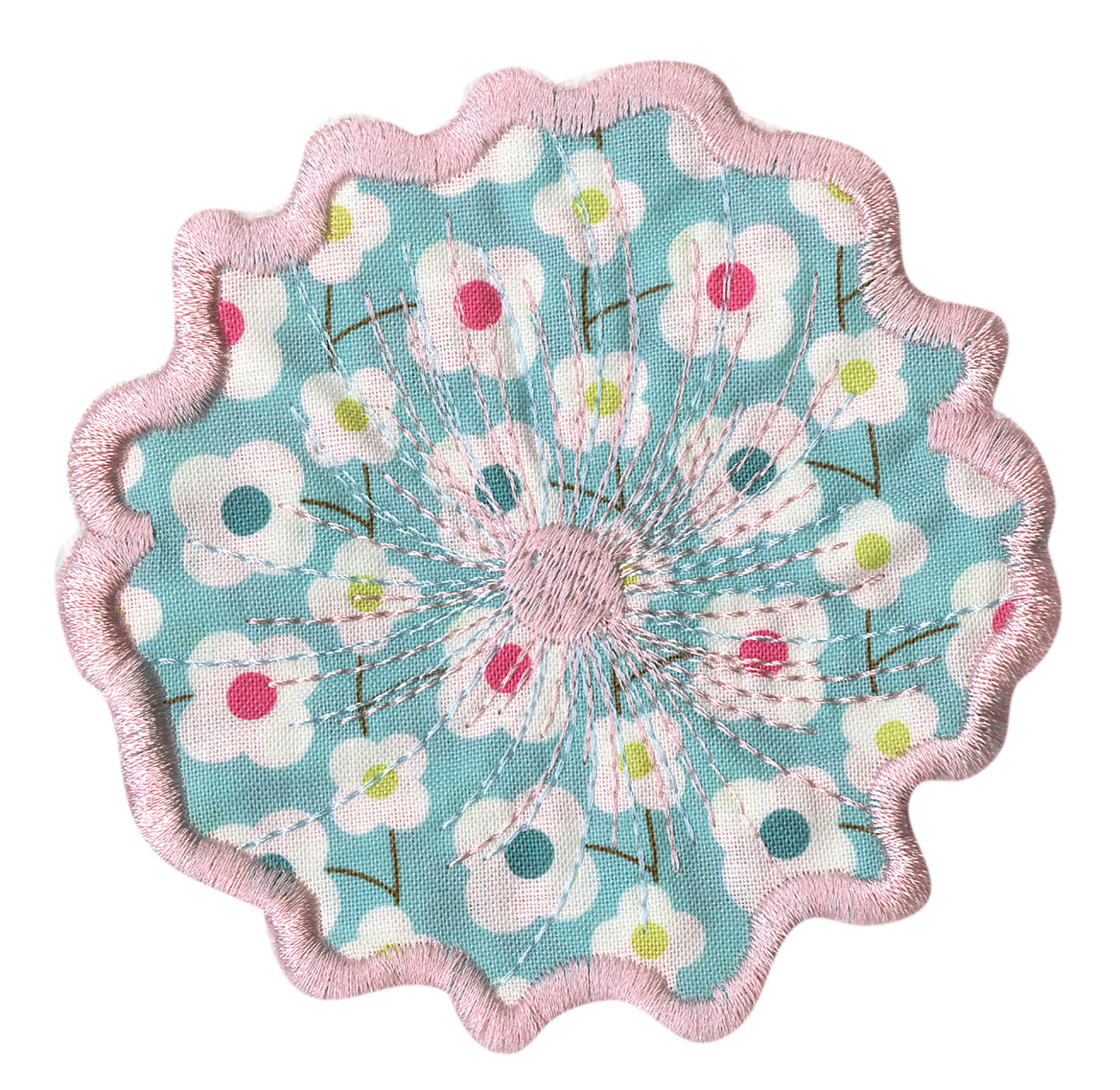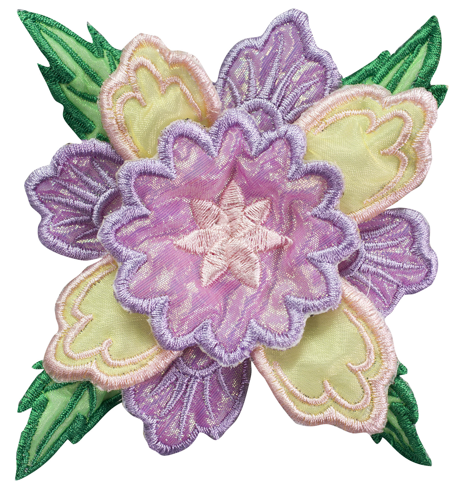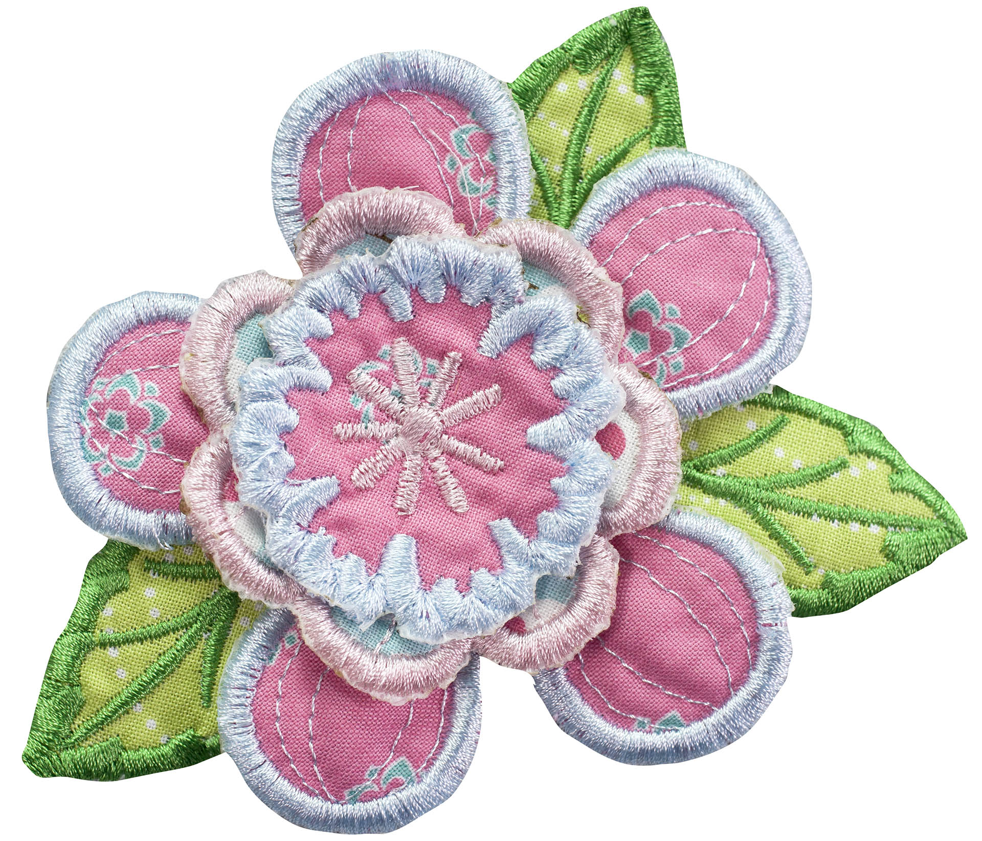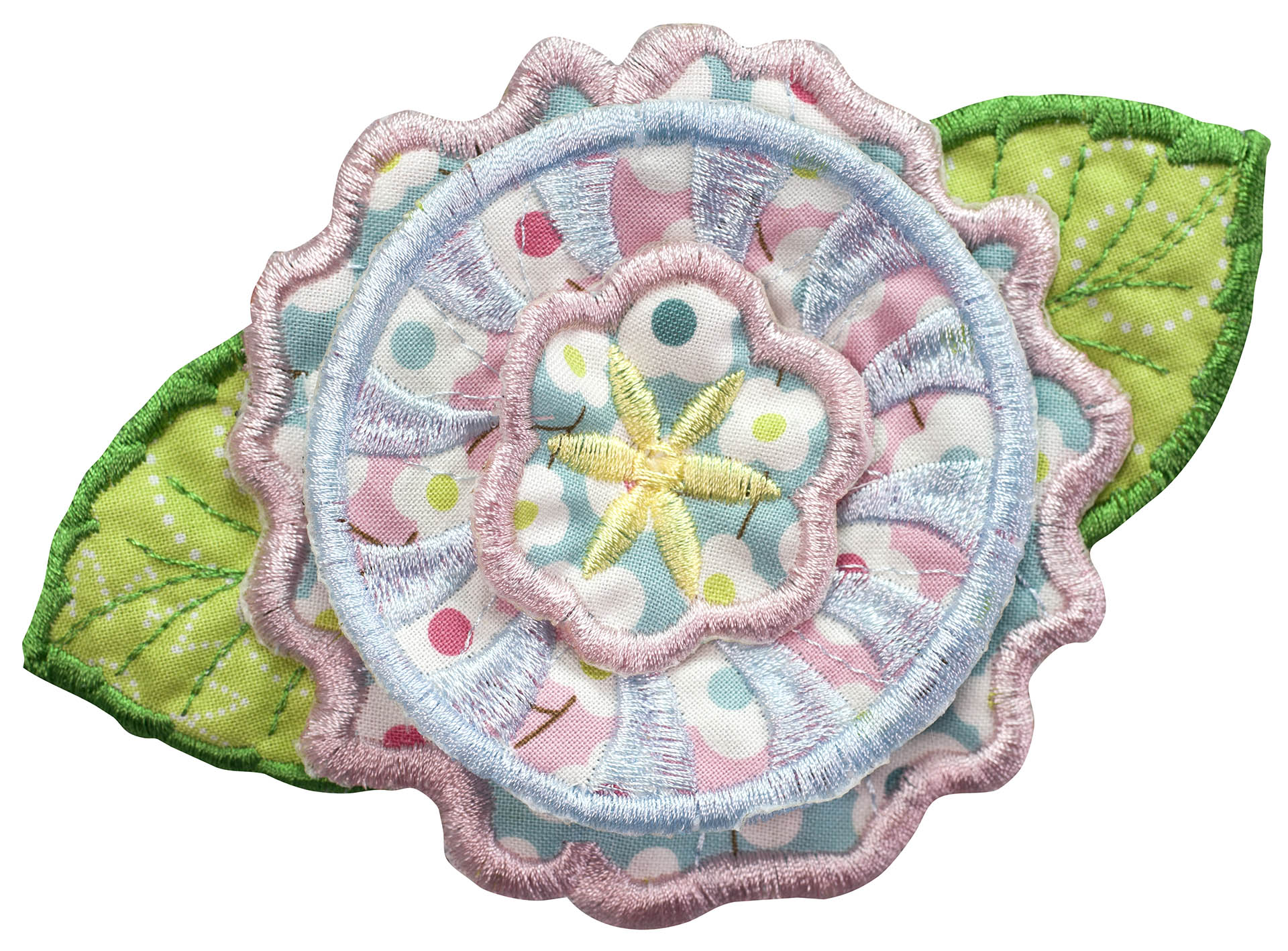 Experiment even more by adding Floriani's Heat N Shrink (now RNK's Sew-Shrink) or Crinkle Magic to each of the flowers for a more dramatic effect. The shrinky film will cause the stitched fabric to shrink once steam is applied to it. When you do this, the petals will permanently curl and crinkle, creating a truly dimensional flower.
