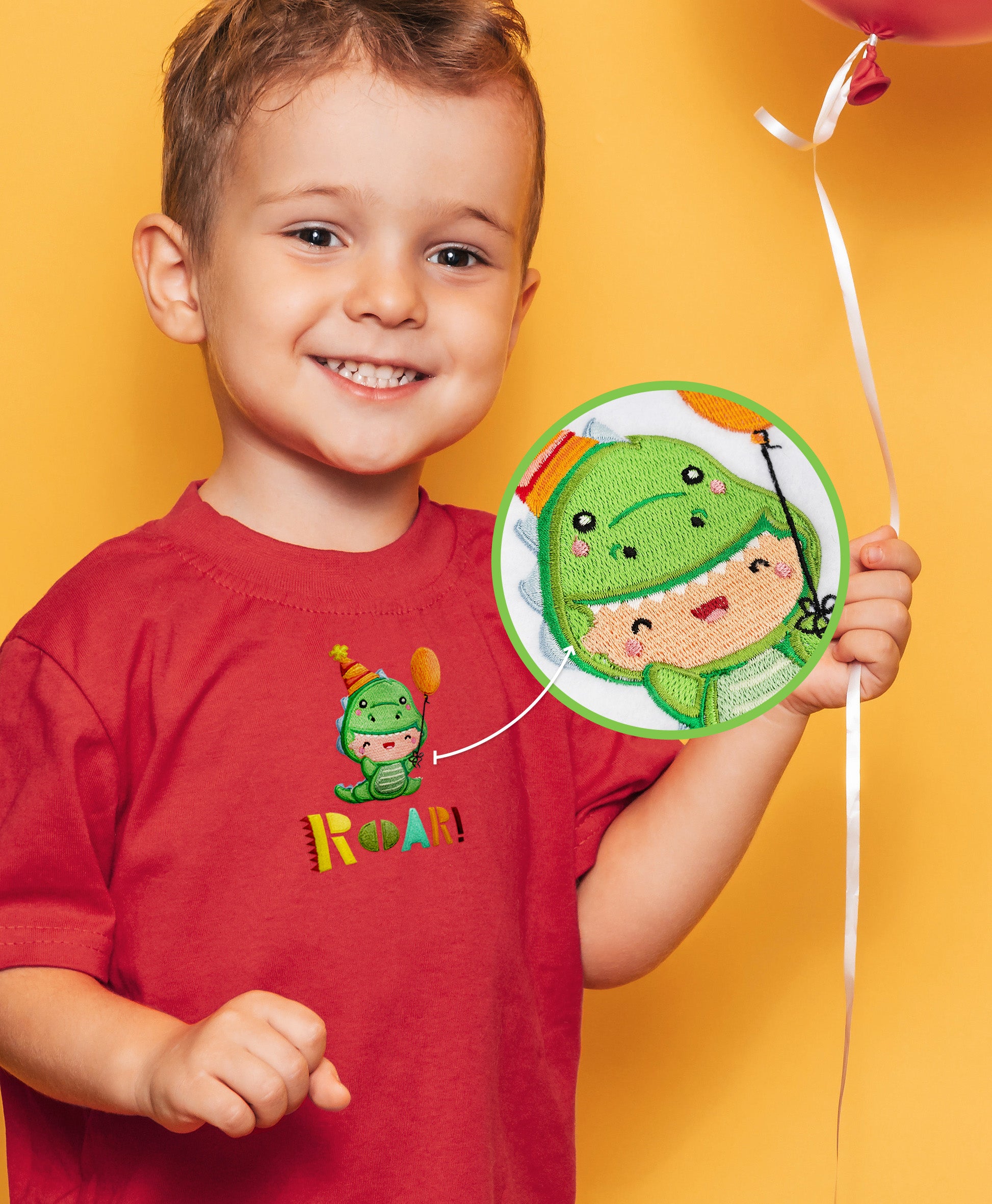 These 16 dinosaur-themed designs can be used to make a child’s new favorite shirt, unique party favors, or can even be made into patches! Plus, with so many different design options, there are over 120 possible combinations—now that’s something to really celebrate!