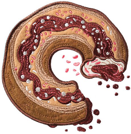Just like picking your favorite flavor at the donut shop, our designs offer a variety of options to suit every sweet tooth. Whether you're a fan of the classic strawberry glaze, the rich decadence of chocolate, or the timeless simplicity of vanilla, you can customize these frosted donuts to satisfy your craving for a particular flavor profile. With the multitude of appliqué fabrics and coordinating embroidery threads available, you can bring your vision to life and create donuts that look almost good enough to eat.