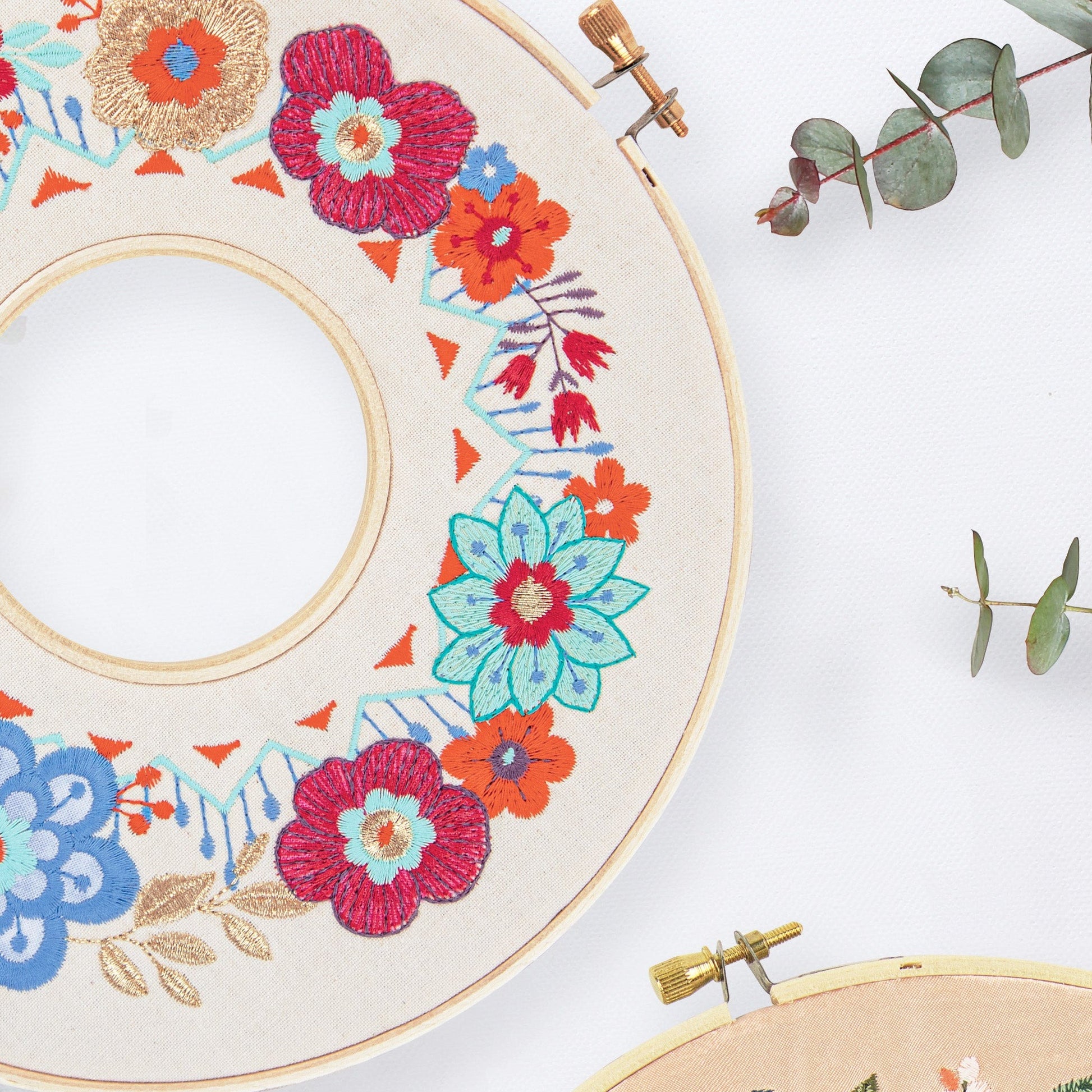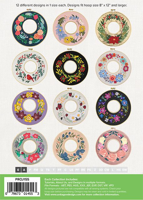 Traditional embroidery hoops are given a new life in this stunning project set! Digitized specifically for presenting in a double wood hooping, each of these 12 designs feature beautifully detailed floral arrangements, perfect for all occasions. From tropical flora to a perfect poinsettia, there’s a hoop wreath for all seasons!