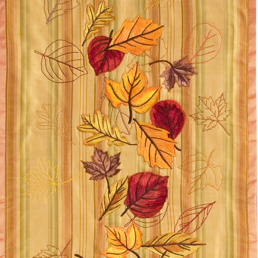Oh the “Fall Season”, with the cool, crisp evening air and the colorful fall palette. The “Falling Leaves” Collection is a beautiful mini collection that brings all those senses into play. The collection has 30 designs in three formats: small, medium and running stitch. You can embroider directly on fabric or on organza to create freestanding leaf designs.