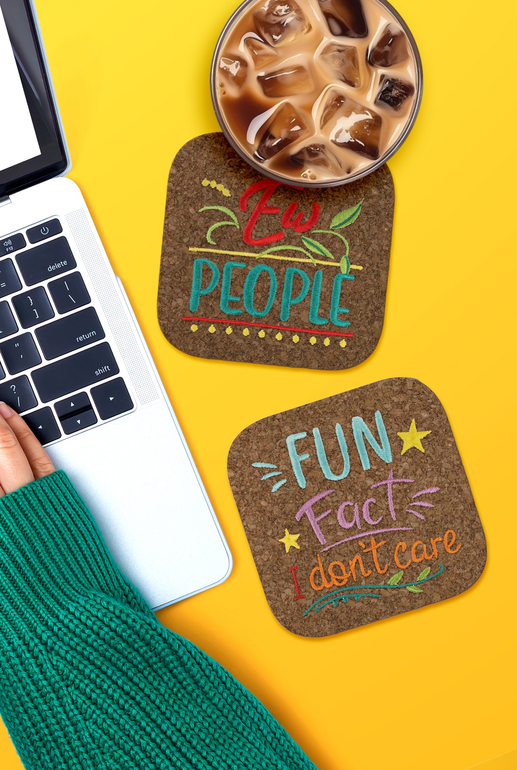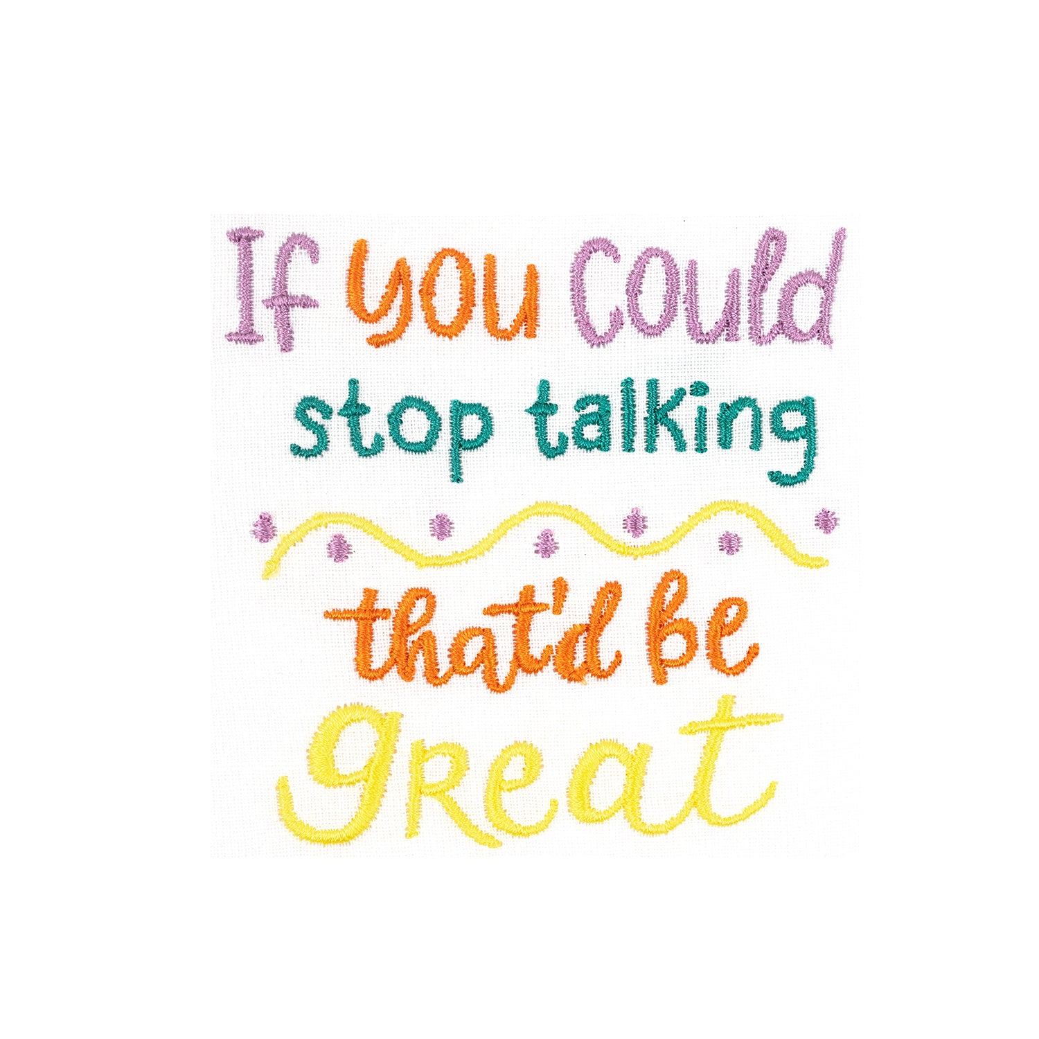 Express your inner sarcasm with this collection of 6 quick and easy typography designs! Hang on your office or sewing room door when you need your space, or stitch something sassy for the bold and brassy in your life. Use our extra basting stitch file for creating unique coasters or napkins to give friends and guests a giggle!