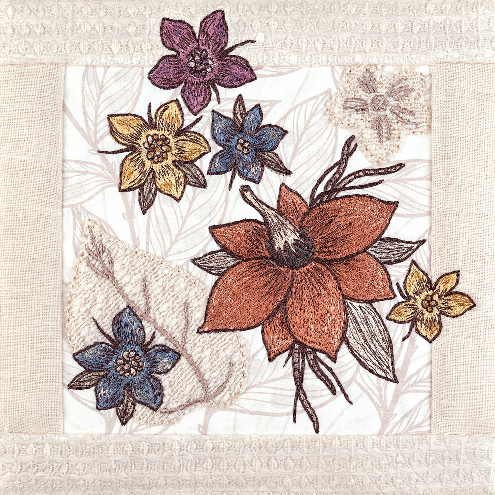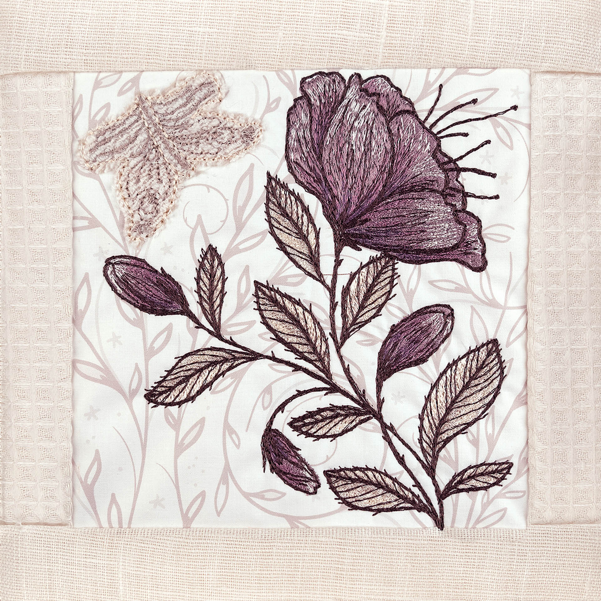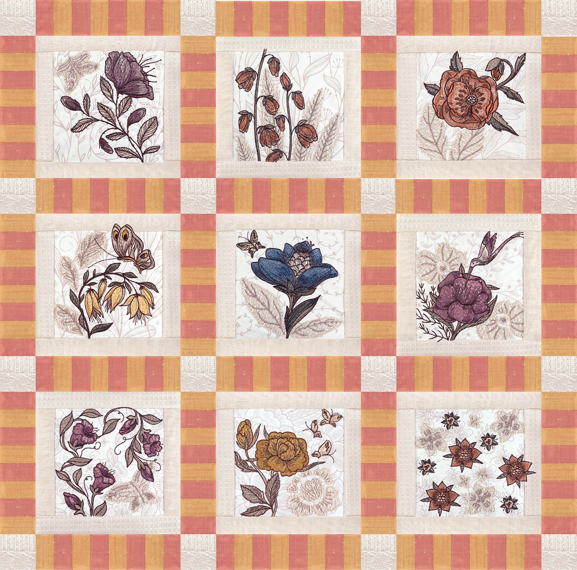 Follow the beautiful butterflies and buzzing bees into the garden as they gather to experience our Flourishing Flowers collection! These muted, floral designs were created using a delicate printed fabric background and natural, earth tone color palette. This collection includes 15 quilt blocks that use embroidery techniques, such as appliqué and folded fabric borders; resulting in exquisite designs. There are also 10 intricate isolated designs included in Flourishing Flowers. This collection is part of the “Mix & Match” quilt line. All of the design collections that are in the “Mix & Match” line come with 5”, 6”, 7”, 8” and 9” blocks and are fully interchangeable.