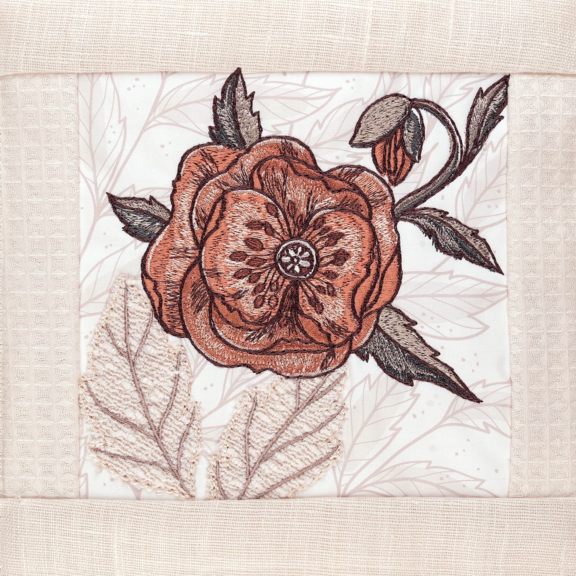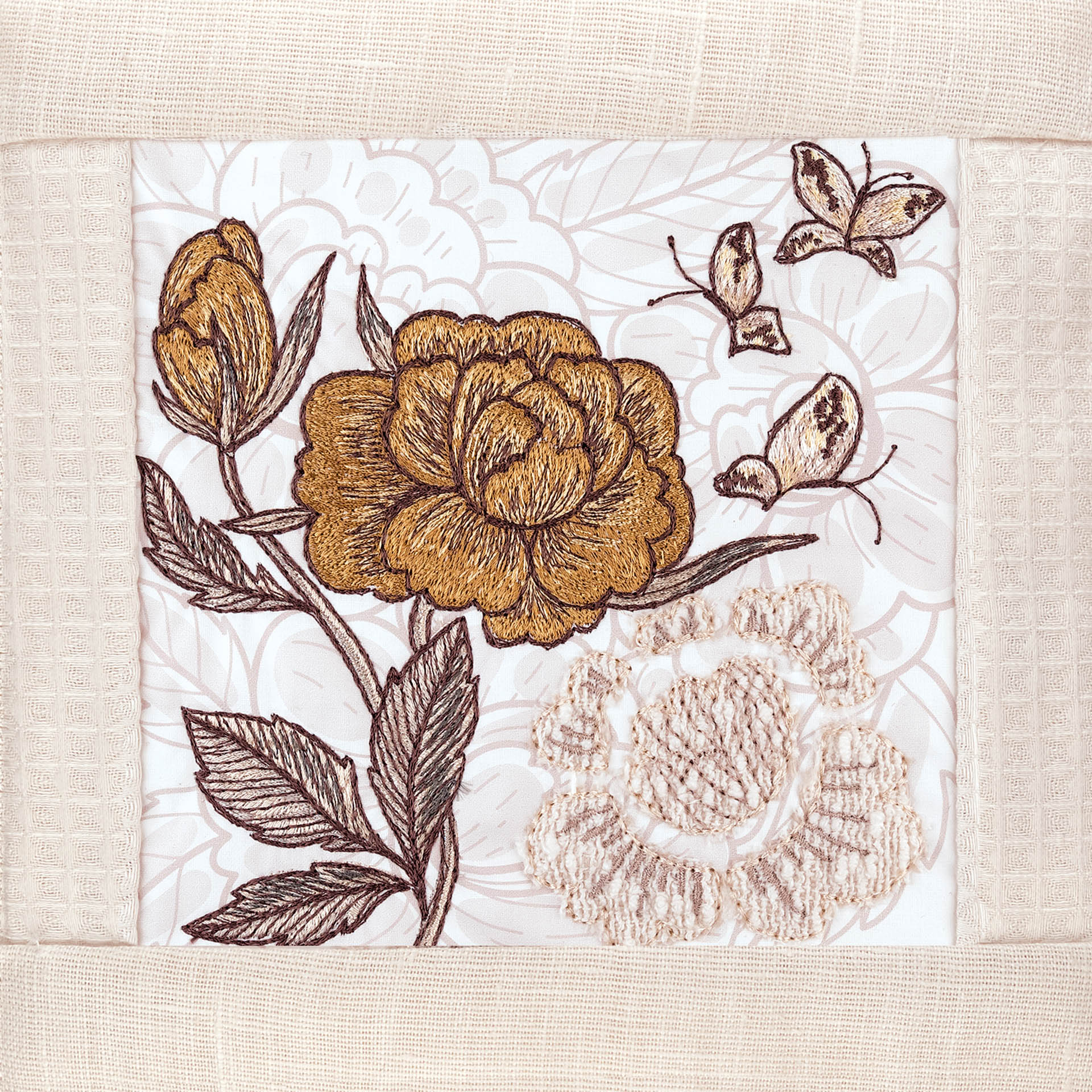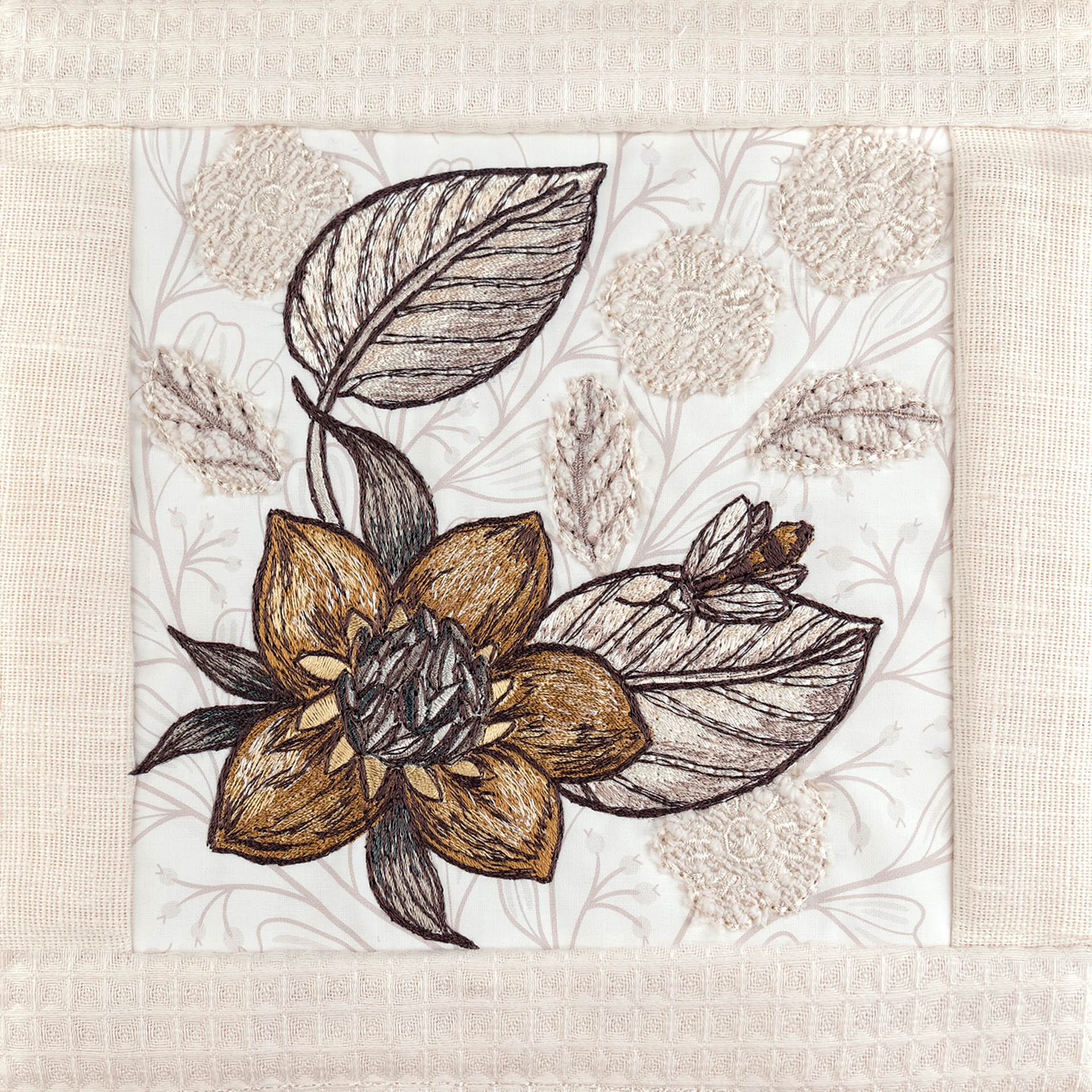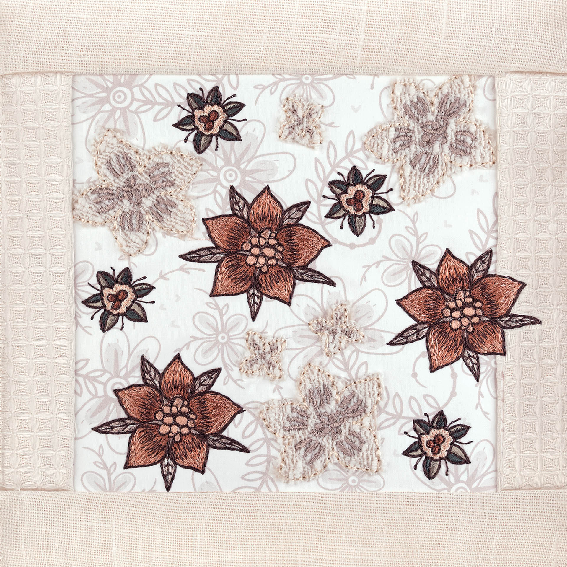 Follow the beautiful butterflies and buzzing bees into the garden as they gather to experience our Flourishing Flowers collection! These muted, floral designs were created using a delicate printed fabric background and natural, earth tone color palette. This collection includes 15 quilt blocks that use embroidery techniques, such as appliqué and folded fabric borders; resulting in exquisite designs. There are also 10 intricate isolated designs included in Flourishing Flowers. This collection is part of the “Mix & Match” quilt line. All of the design collections that are in the “Mix & Match” line come with 5”, 6”, 7”, 8” and 9” blocks and are fully interchangeable.