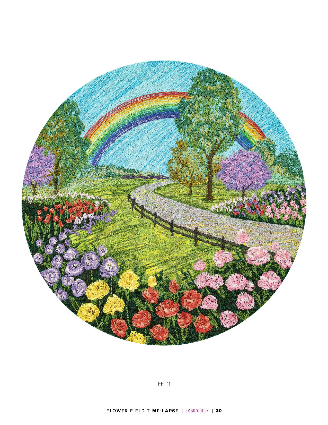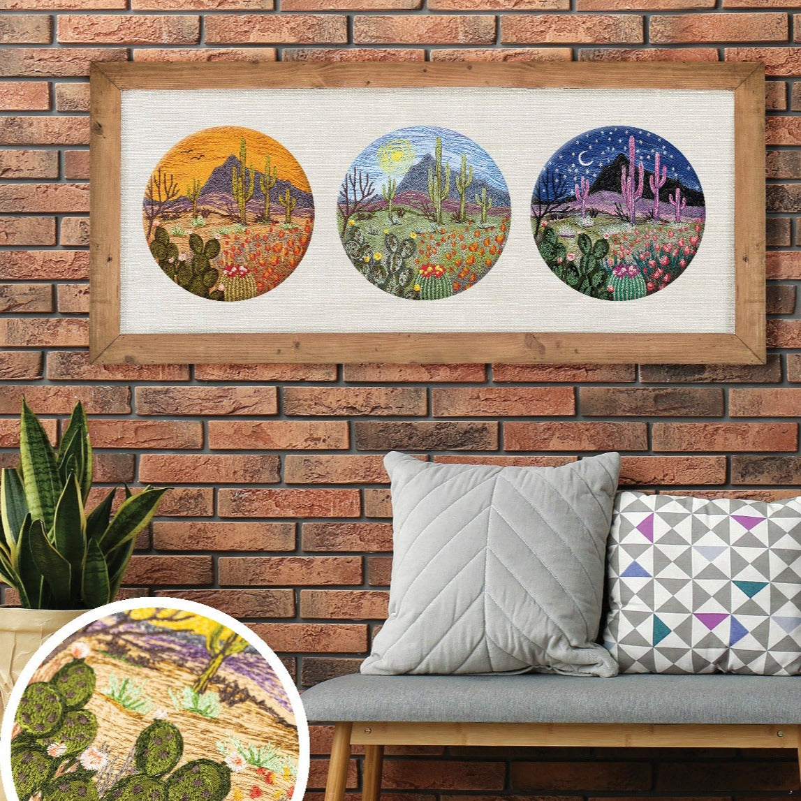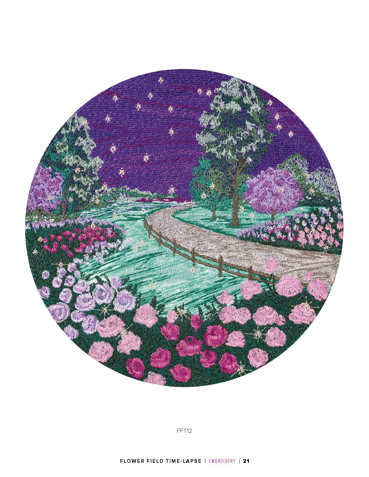 film. Create your own natural landscape with embroidery thread, hidden appliqués, and any of these designs. This collection showcases 6 landscapes with 3 different versions of each, for a total of 18 designs. The 3 versions show the same scene during dawn, midday, and dusk. Each of the landscapes will feature a variety of flora. Lavender, cacti, rose bushes and tulips are just a few of many you will see throughout this collection. Find the scene that speaks to you and stitch it out as wall decor or as the embellishment for your next embroidery project. Each design comes in multiple sizes. Check out the numbered machine steps for exact dimensions and stitch count.