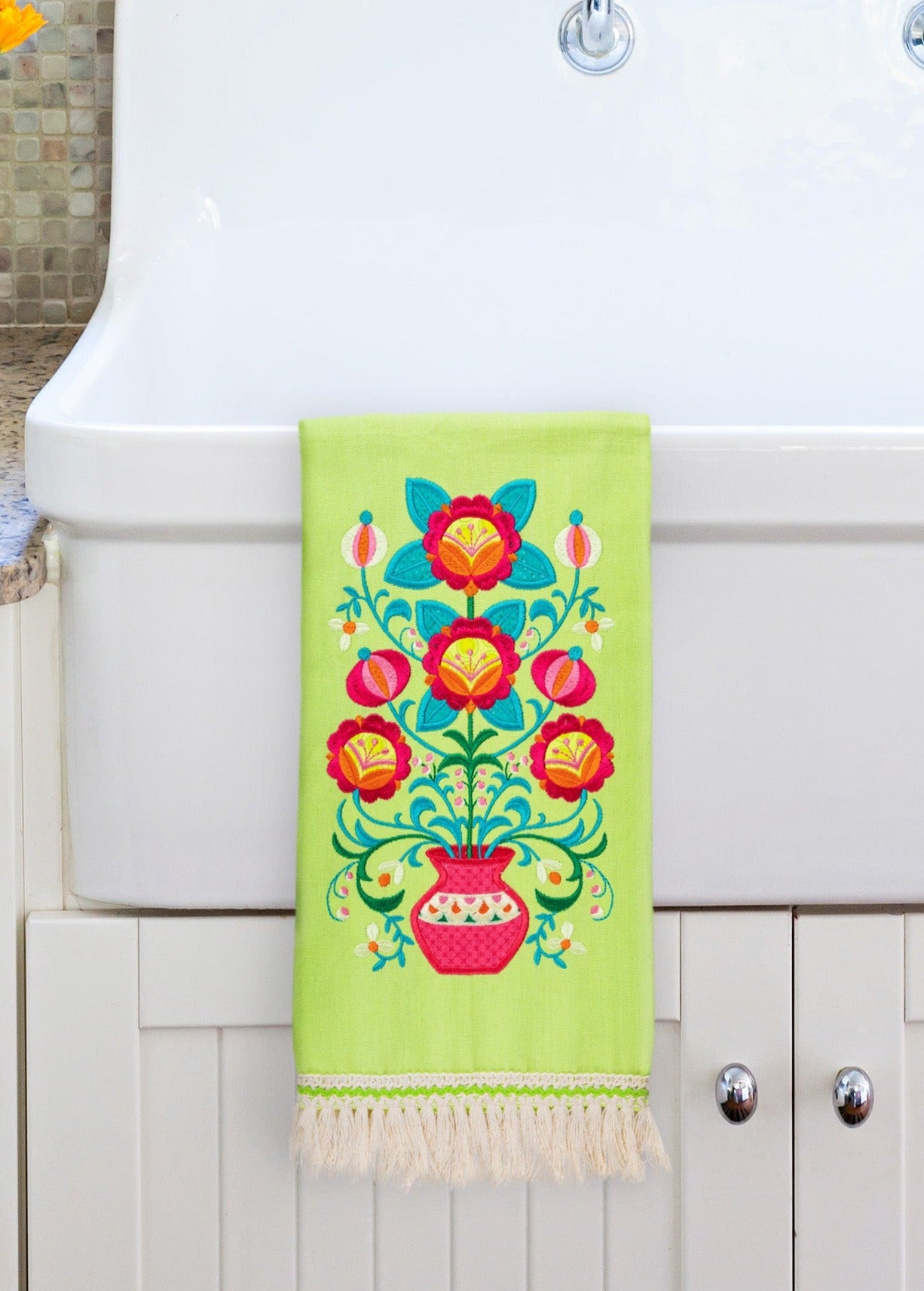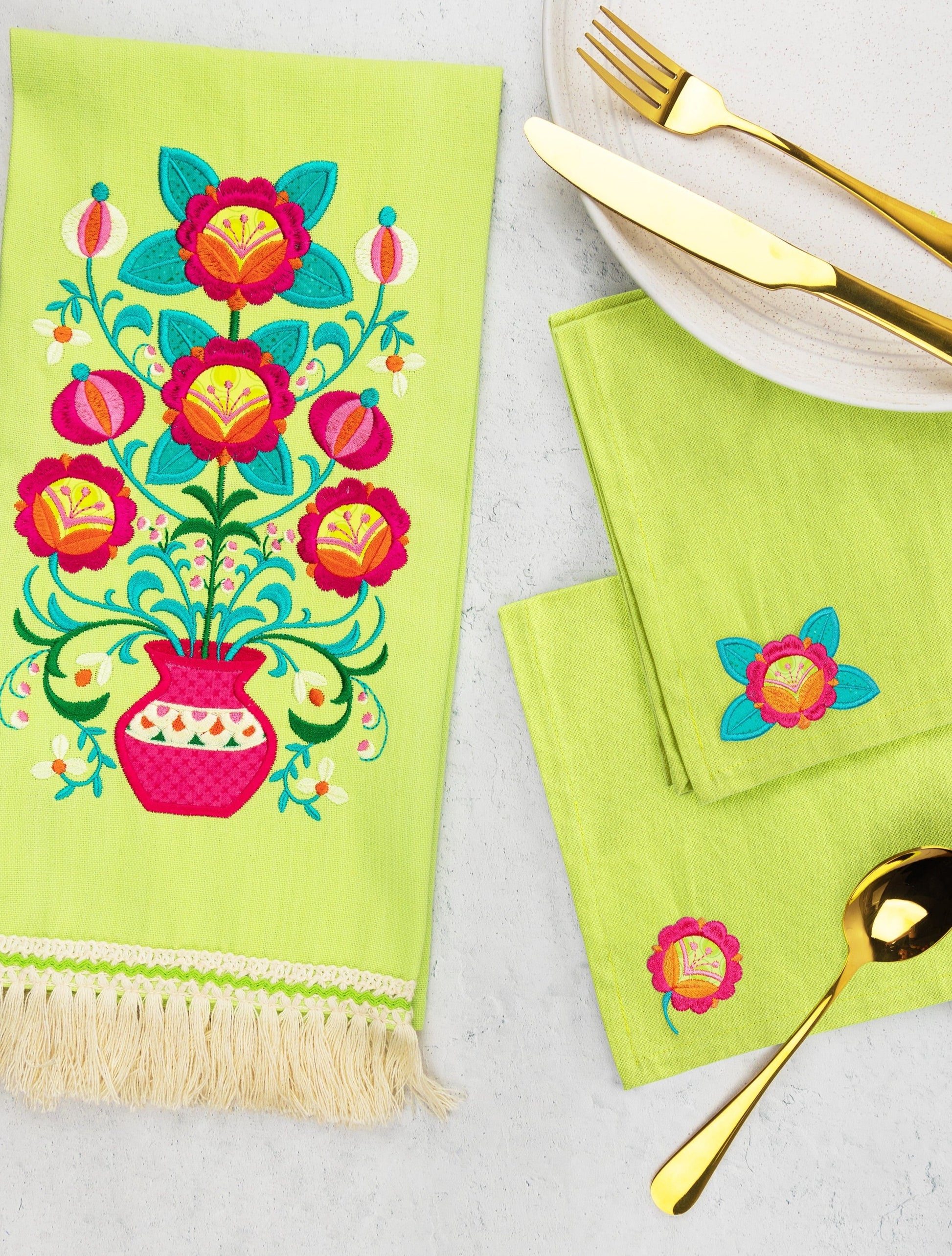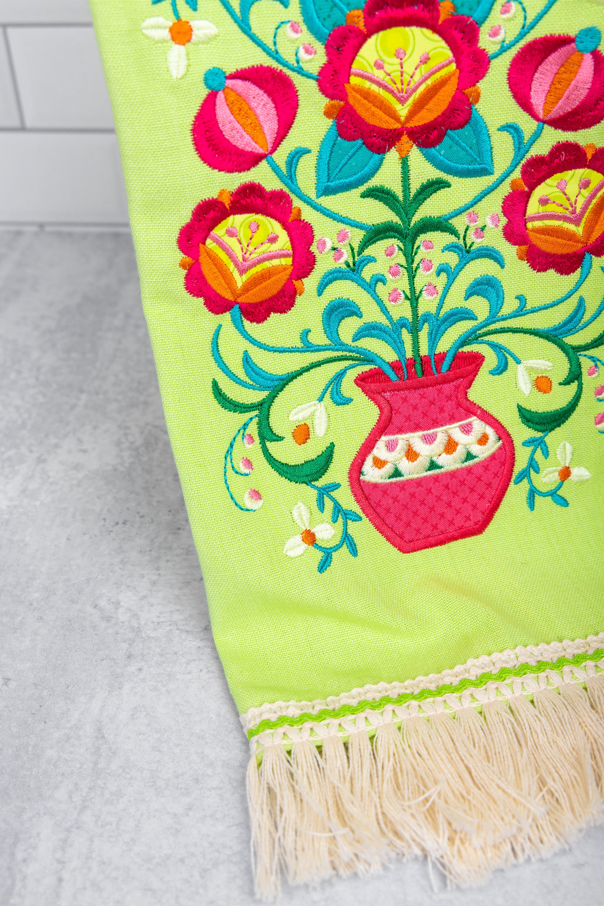 Bump up the fun with this vibrant and cheerful motif! We tried out neon-inspired hues and bold appliqué fabrics to draw the eye in, but you can embroider this folksy Flower Vase in any color palette!