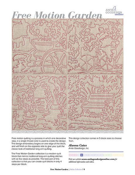 The Free Motion Garden collection offers a variety of block sizes to suit your quilting needs. Choose from five different block sizes, allowing you to create quilts of various scales and dimensions. Whether you're working on a small project or tackling a large quilt, this collection provides the flexibility to bring your vision to life.
