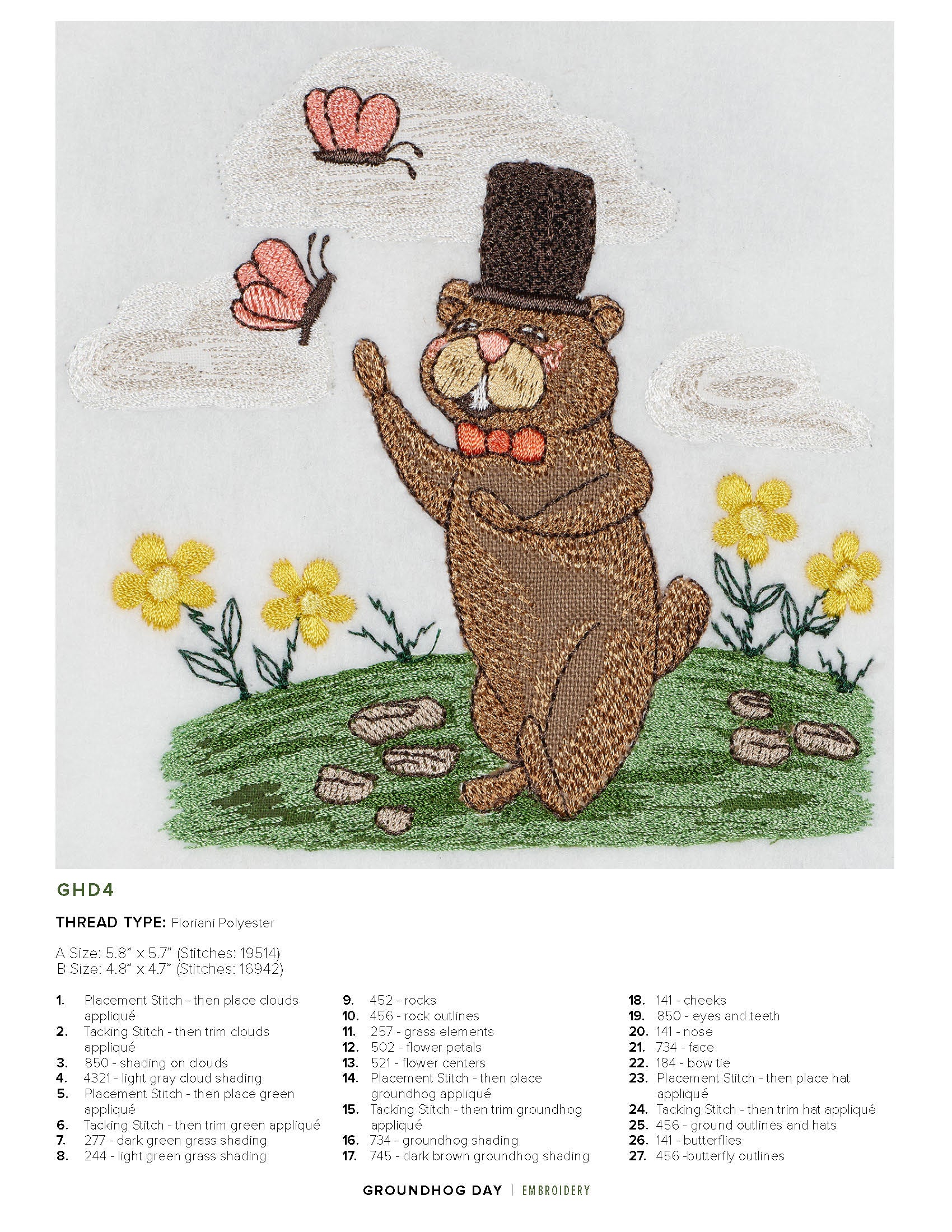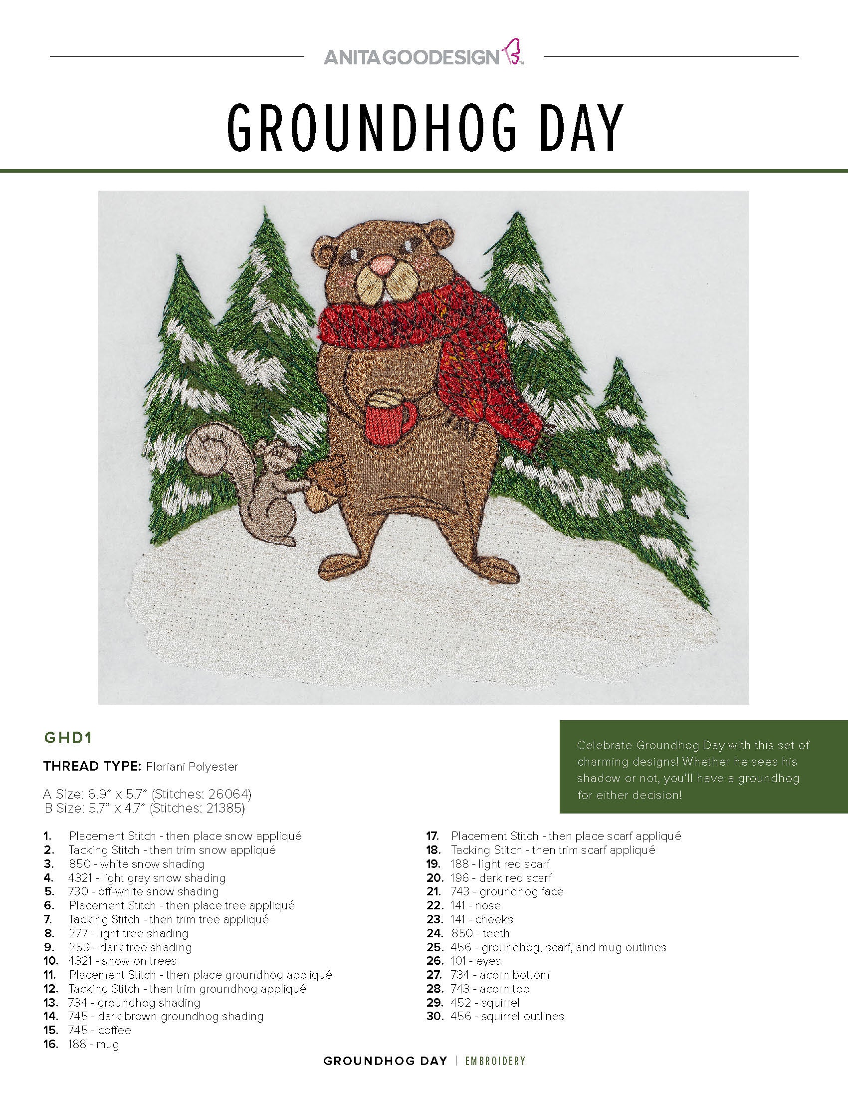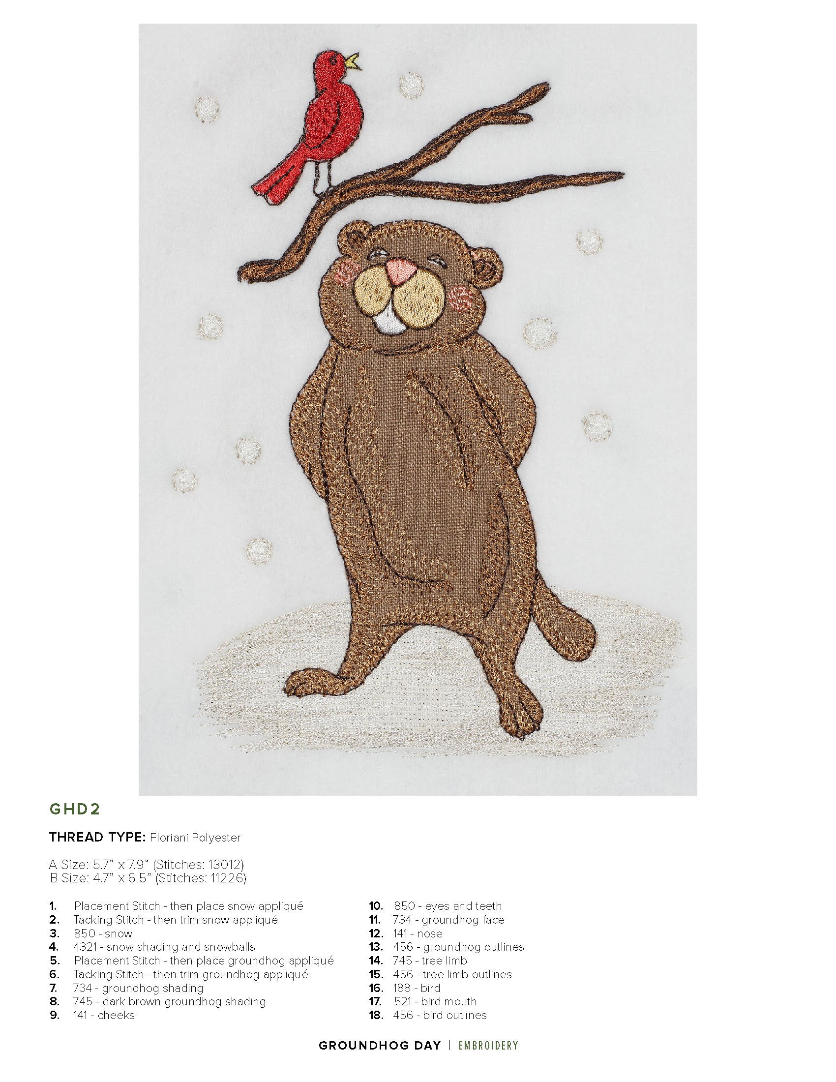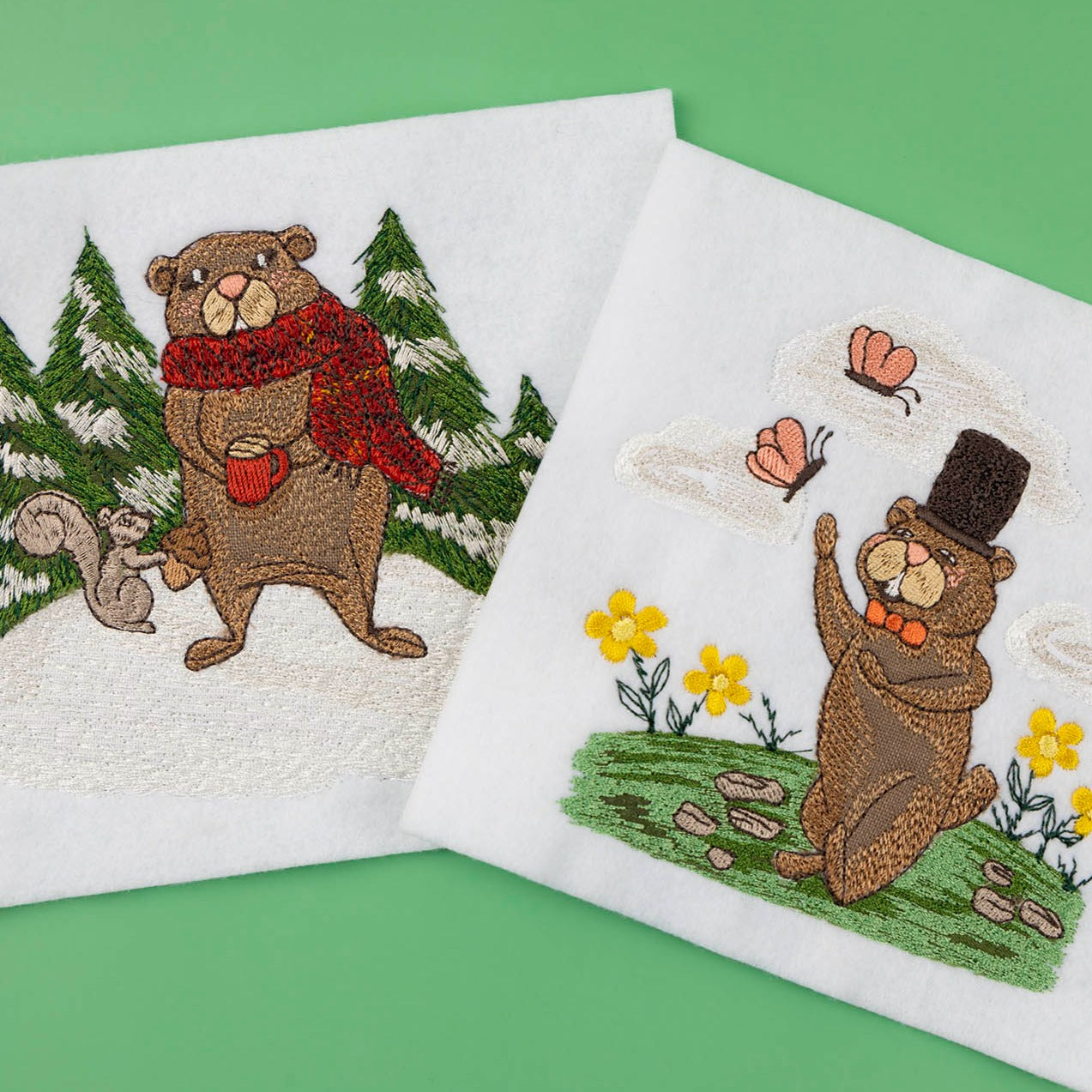 Celebrate Groundhog Day with this set of charming designs! Whether he sees his shadow or not, you'll have a groundhog for either decision!