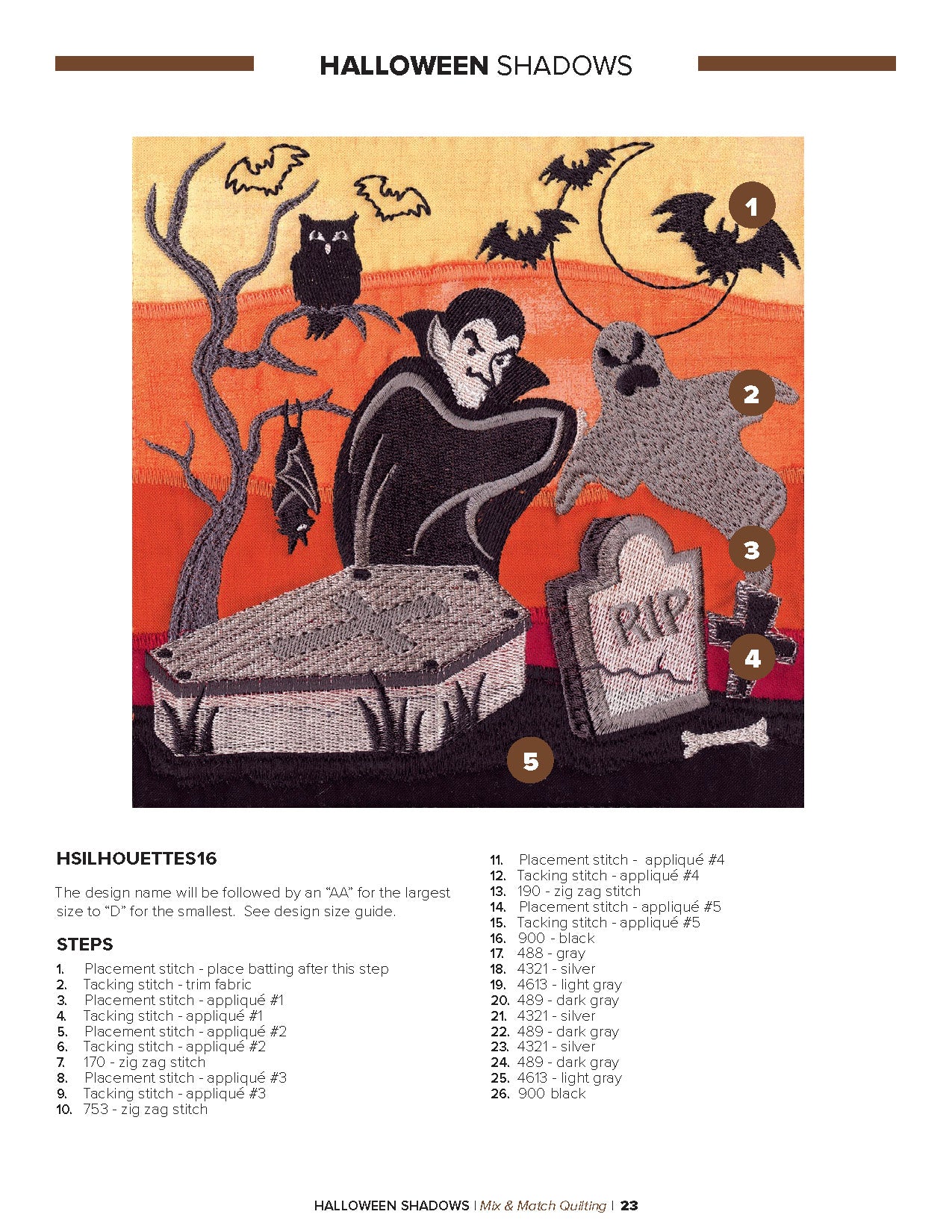 Whether you're a seasoned quilter or just starting out, this collection offers endless creativity and endless fun. Let your imagination run wild as you combine the Halloween Shadows blocks with other designs from our extensive collection. The possibilities are limitless, allowing you to create quilts, wall hangings, or any other Halloween-inspired project your heart desires.
